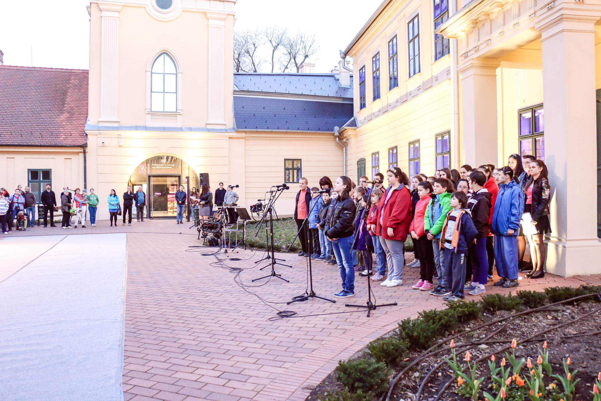 A tagintézmény nyolc éve alakult énekkara rengeteg munkával, kitartással és Gellén Gáborné szakmai irányításával jutott el arra a szintre, hogy csütörtök este egy jókorra csokorra valóval mutatkozzon be az Almásy-kastély előtt összegyűlt nagyérdeműnek. Halász Judit Mindannyian mások vagyunk című dala mellett József Attila megzenésített költeményeiből is előadtak. De repertoárjukba A dzsungel könyvéből is bekerült egy részlet, ezt egészítette ki A tavaszi szél vizet áraszt, valamint a Koncz Zsuzsa-féle Csodálatos világ, amely többször is elhangzott vonatkozó szövege miatt. Szólóénekesként Végvári Orsolya érdemelt ki tapsot. A tanuló szintén a Ki mit tud? vetélkedőn remekelt, hisz idén első helyezést ért el a megmérettetésen. A rendezvényen a Nicolae Balcescu Román Gimnázium kórusának néhány tagja is fellépett.