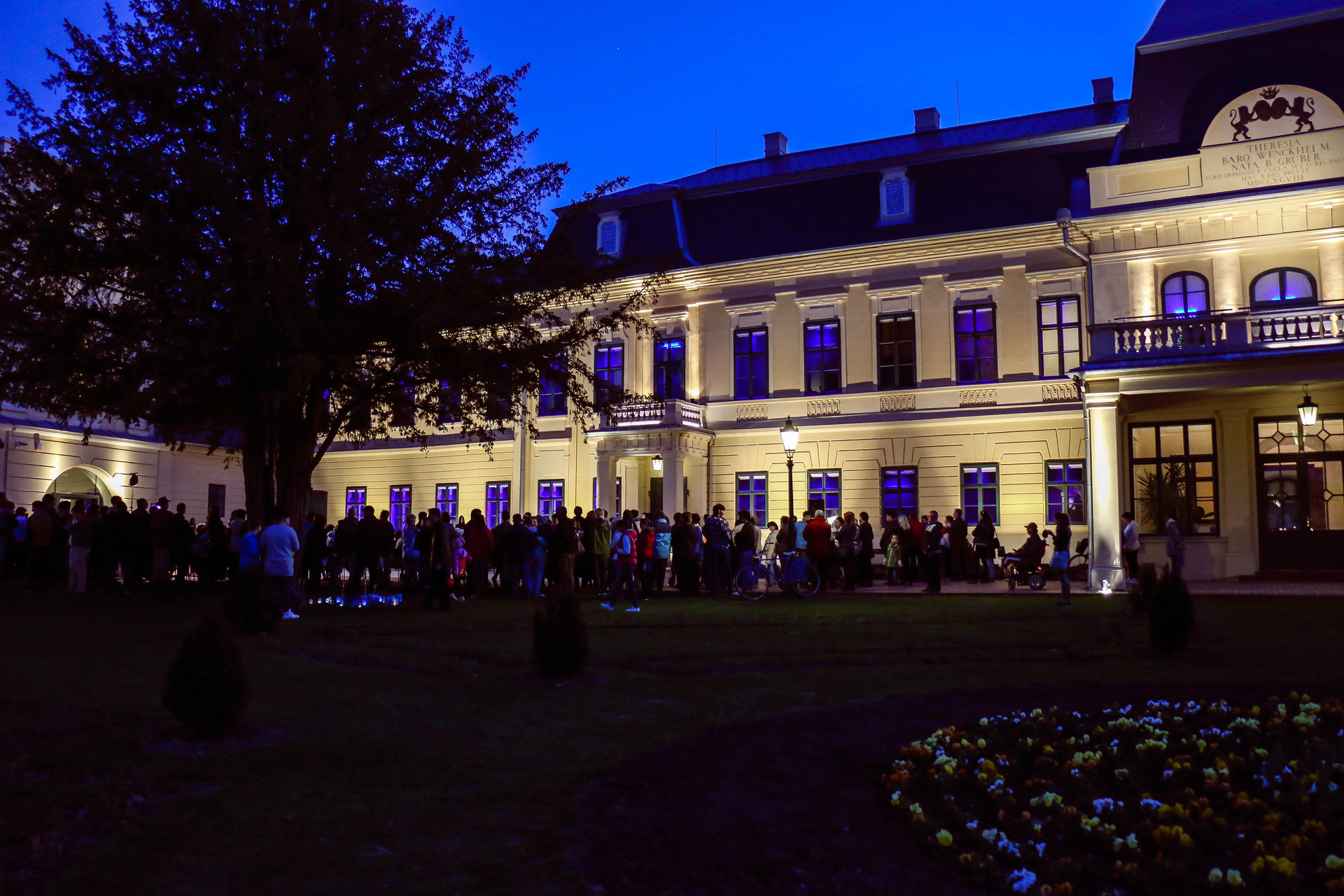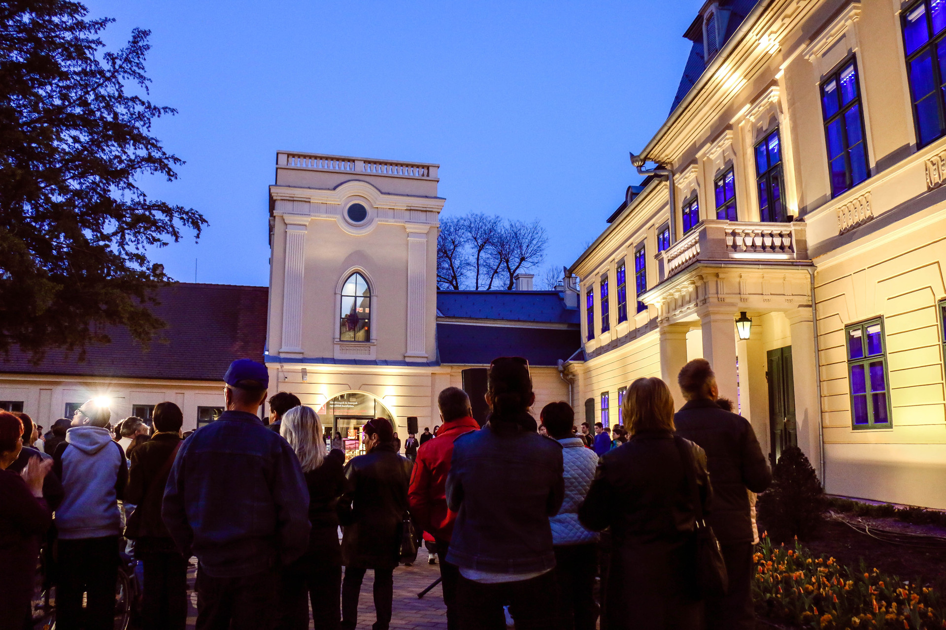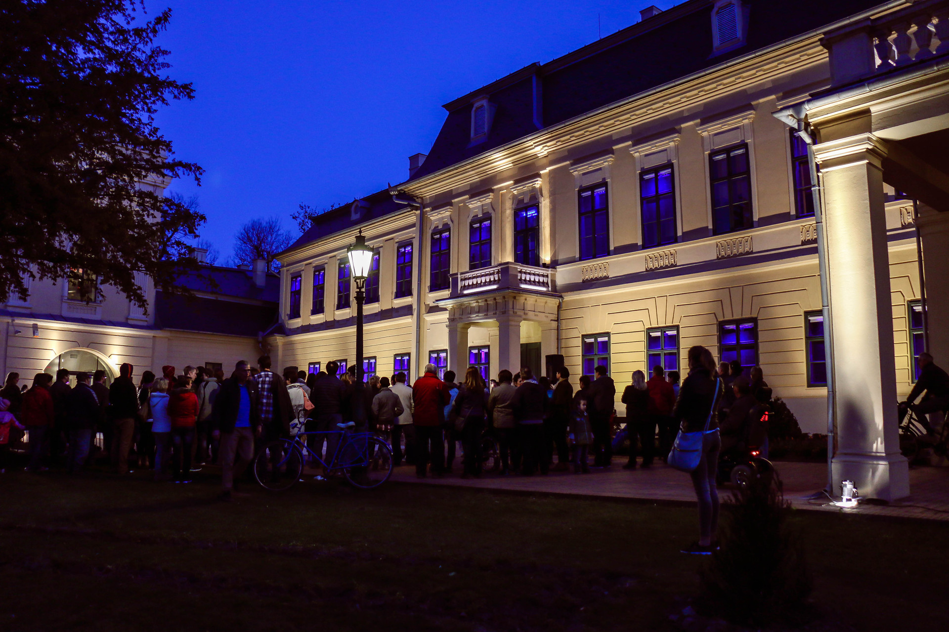 Az est végén kék fényárral tették figyelemfelkeltőbbé az Almásy-kastélyt.
