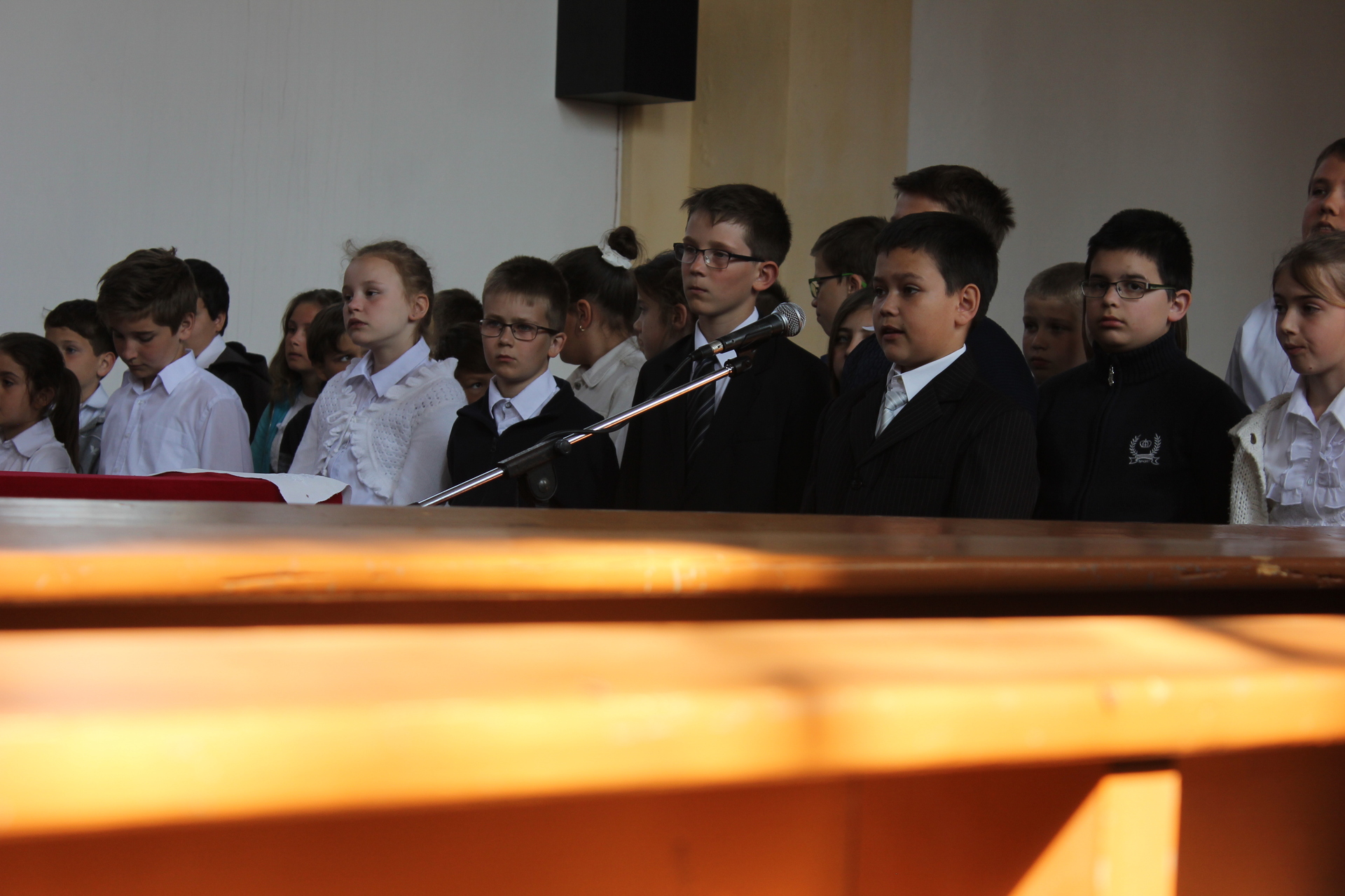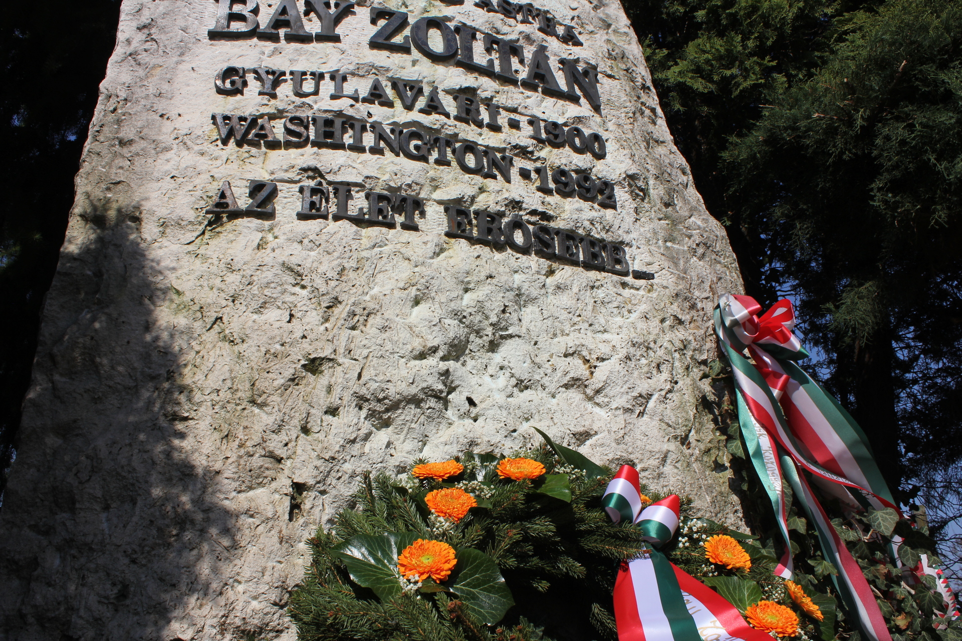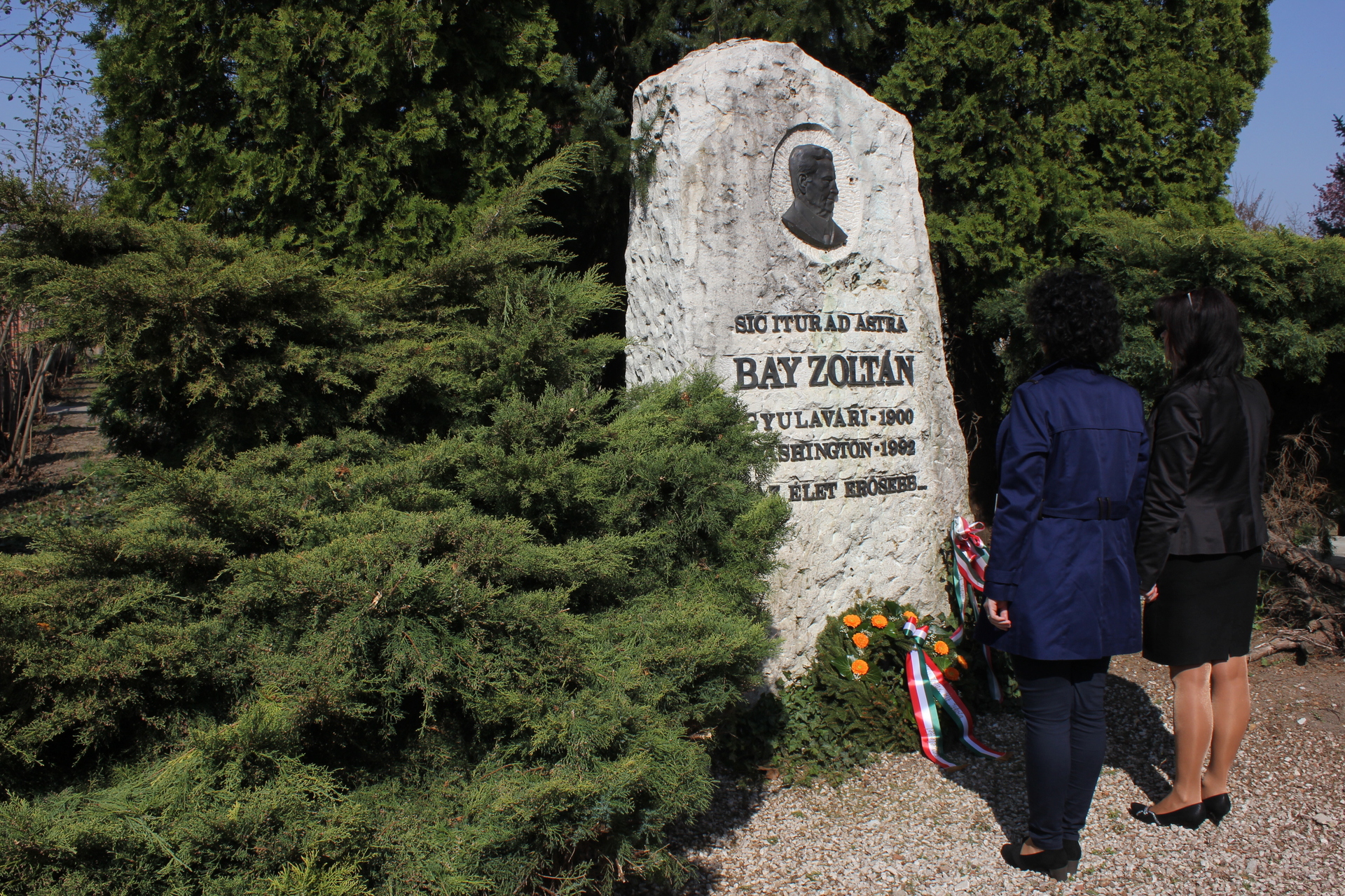 A fiatalok előadása után, az esemény végén a helyi általános iskolák jelen lévő tagintézmény-vezetői koszorút helyeztek el a templomkertben álló Bay Zoltán-emlékműnél.