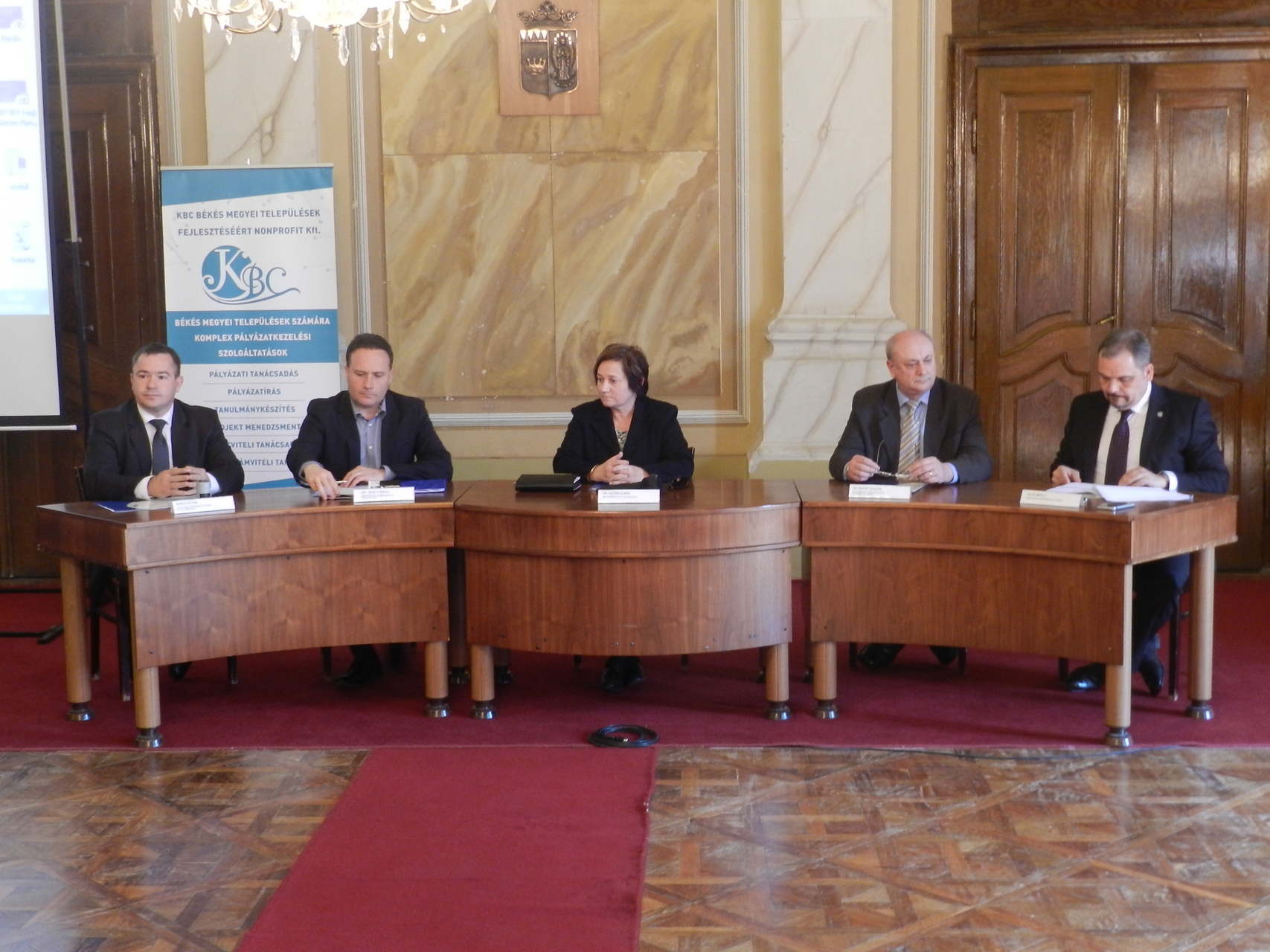 Az ismertető után a KBC Békés Megyei Települések Fejlesztéséért Nonprofit Kft. bemutatta az együttműködési szerződést, majd zárszóként ünnepélyesen aláírták a megállapodást.
