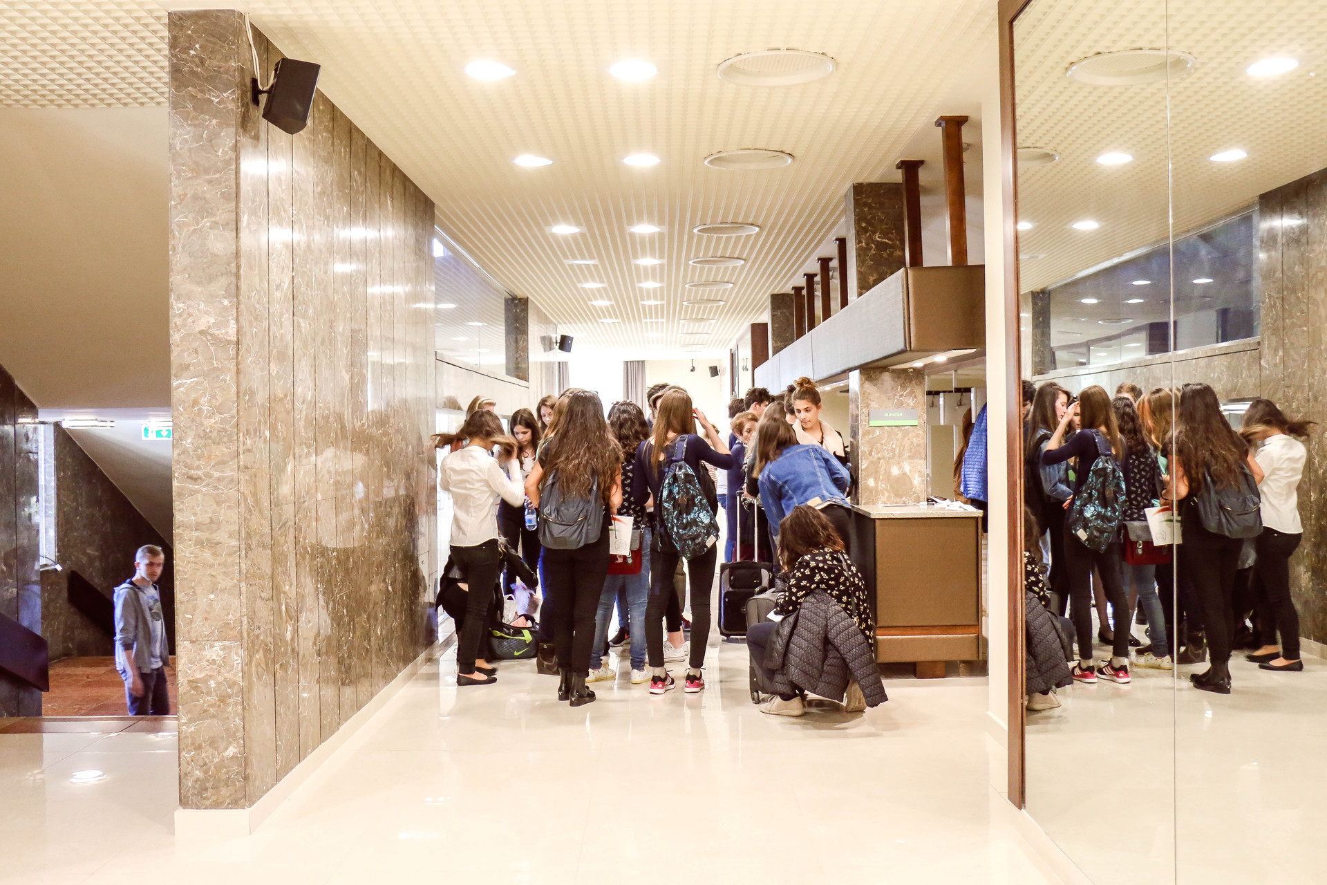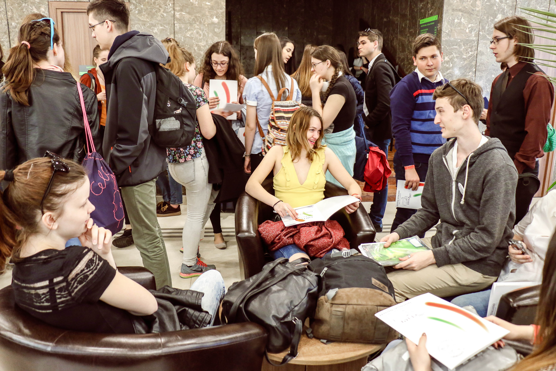 Másnap, szombaton, folytatódtak a versenyszámok, immár kizárólag az Erkel Ferenc Művelődési Központban. Tolmácsversenyen és szituációs játékban mérethették meg magukat a kitartóbb tanulók, továbbá zárásként a BME próbanyelvvizsgának B2 írásbelijén tesztelhették felkészültségüket a gimnáziumban.