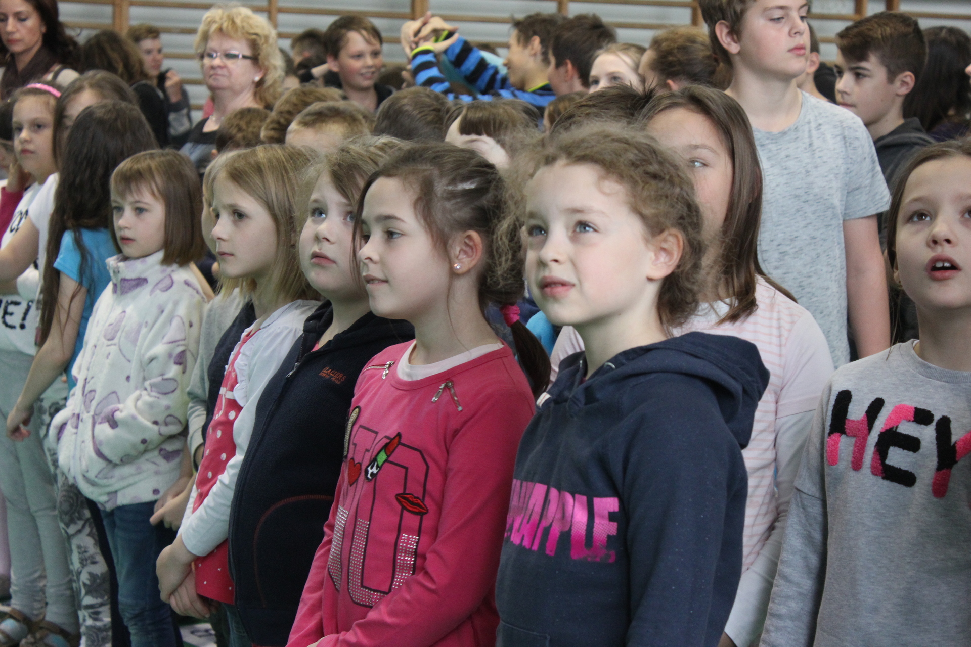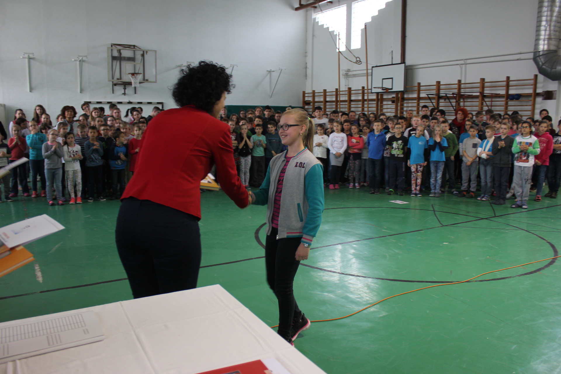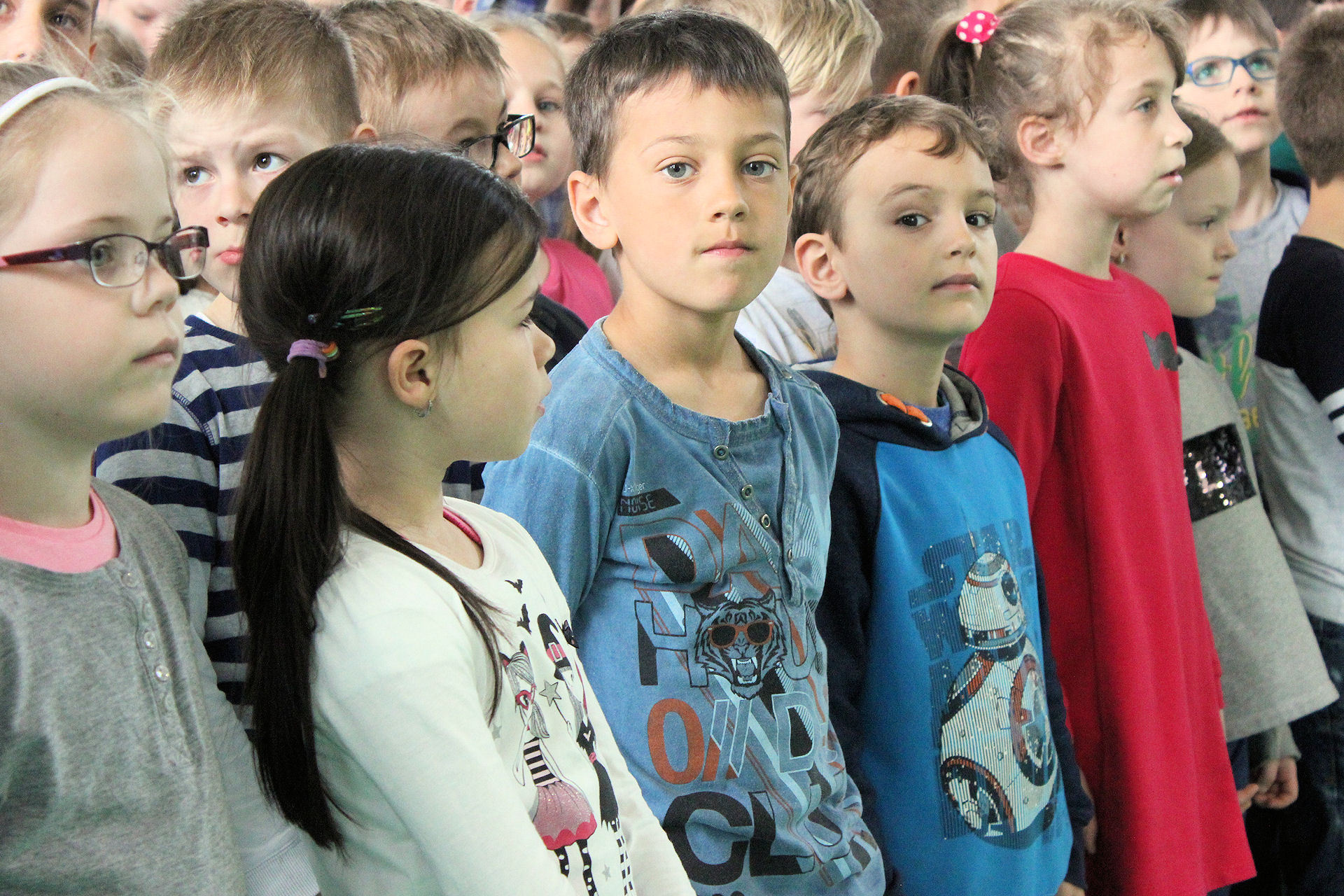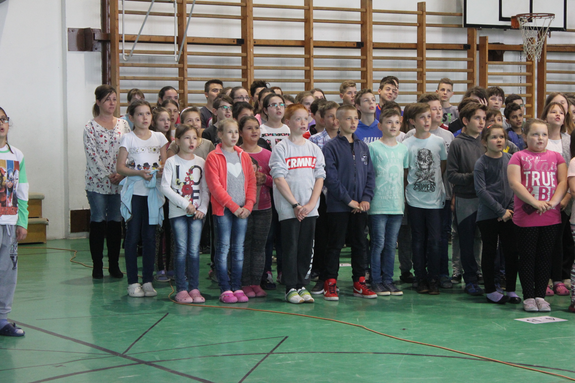 Miután az összes tanuló összegyűlt a tornacsarnokban, a program Vágó Nóra szavalatával indult. A hetedikes előadó lapunknak elárulta, nem izgul, mert az iskolatárai előtt szívesen mond verset. Hozzátette: több versmondó versenyen is indult már, ahol sokkal több nézője akad, így olyankor már gyakran lámpalázas.