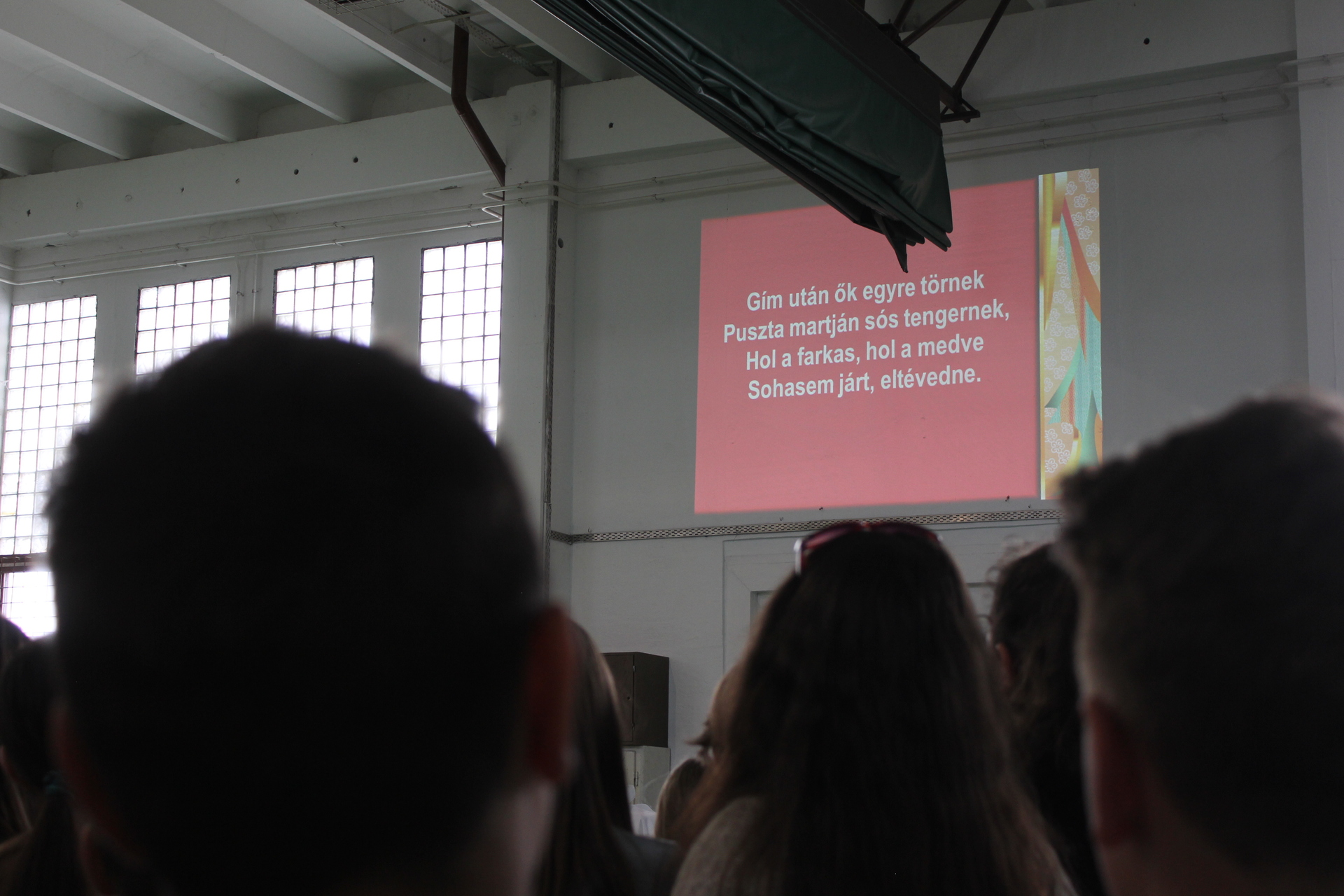 A diavetítéses bemutató után közös szavalás következett, amelyen a diákok és a pedagógusok a Rege a csodaszarvasról című költeményből olvastak fel egy rövid részletet.