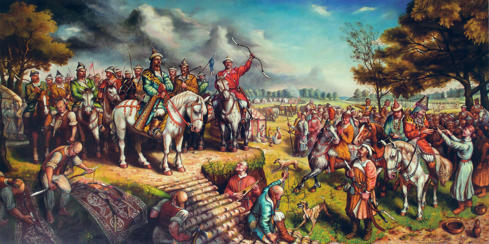 A magyar és a világtörténelem meghatározó pillanatait megjelenítő olajfestmény-sorozatból az első 9x4,5 méteres pannó a honfoglalás 1100. évfordulóján, 1996-ban készült el lenvászonra. A műalkotások technikája és méretaránya azóta sem változott, csupán tematikailag lett egyre kitekintőbb a kezdeményezés. Afelől, hogy miként és mikor történt meg mindez, az írásunkhoz mellékelt fotógalériából és képszövegekből tájékozódhatnak olvasóink.