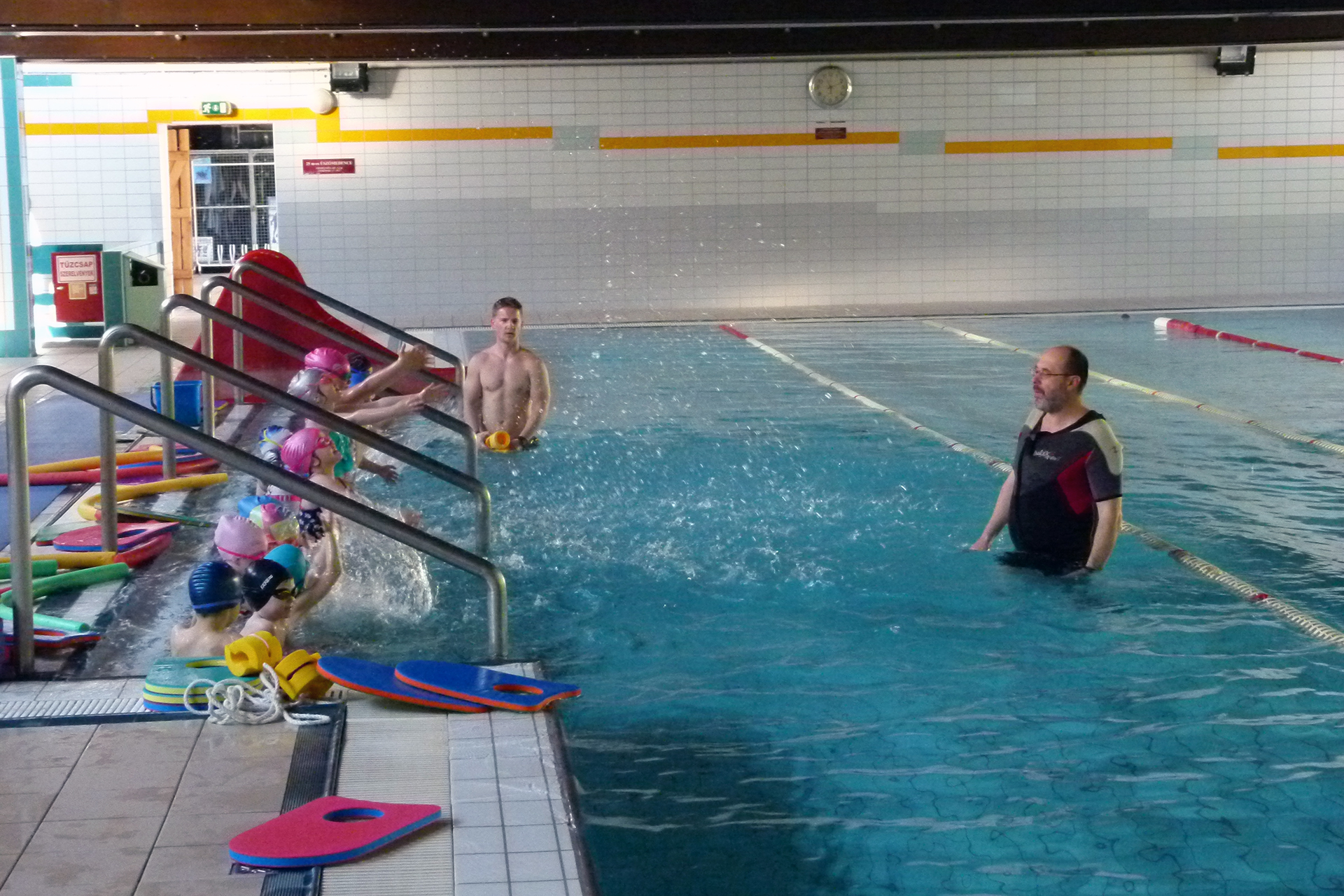 Az óvodások vígan lubickoltak a tanmedencében, melyben oktatóik segítségével sajátították el az úszás alapjait. A medence szélén a szülők fotózták és videózták csemetéiket, hogy megörökítsék, hogyan szelik a habokat a németvárosi kicsik.