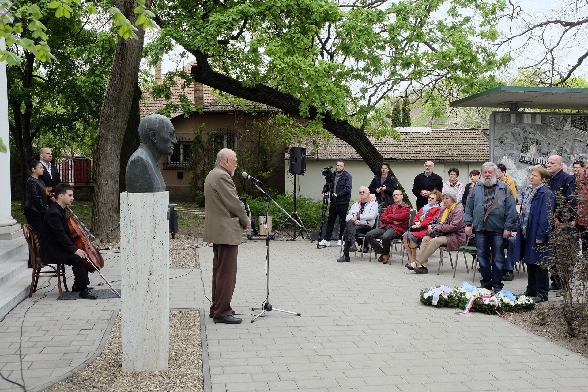 – Jelet állítani jöttünk ide ma délután, egyben jelképet is – kezdte beszédét Krasznahorkai Géza. – Jelképét annak, hogy innen, a határmenti kisvárosból is eljuthat a legmagasabb szintekre az, akiben van kellő tehetség. Ez önmagában nem elegendő, hiszen kell hozzá szorgalom, kitartás és alázat. Utóbbit Gyurka különösen sokszor hangsúlyozta. Alázat a munkával, az emberekkel és az élettel szemben. Nem indult könnyen a sorsa, ugyanis elsőre nem vették fel a képzőművészeti főiskolára. Átment az első két szűrőn, a harmadikon viszont nem, tudta is, hogy miért: aktot kellett rajzolnia, amelyre Gyulán nem volt lehetősége.