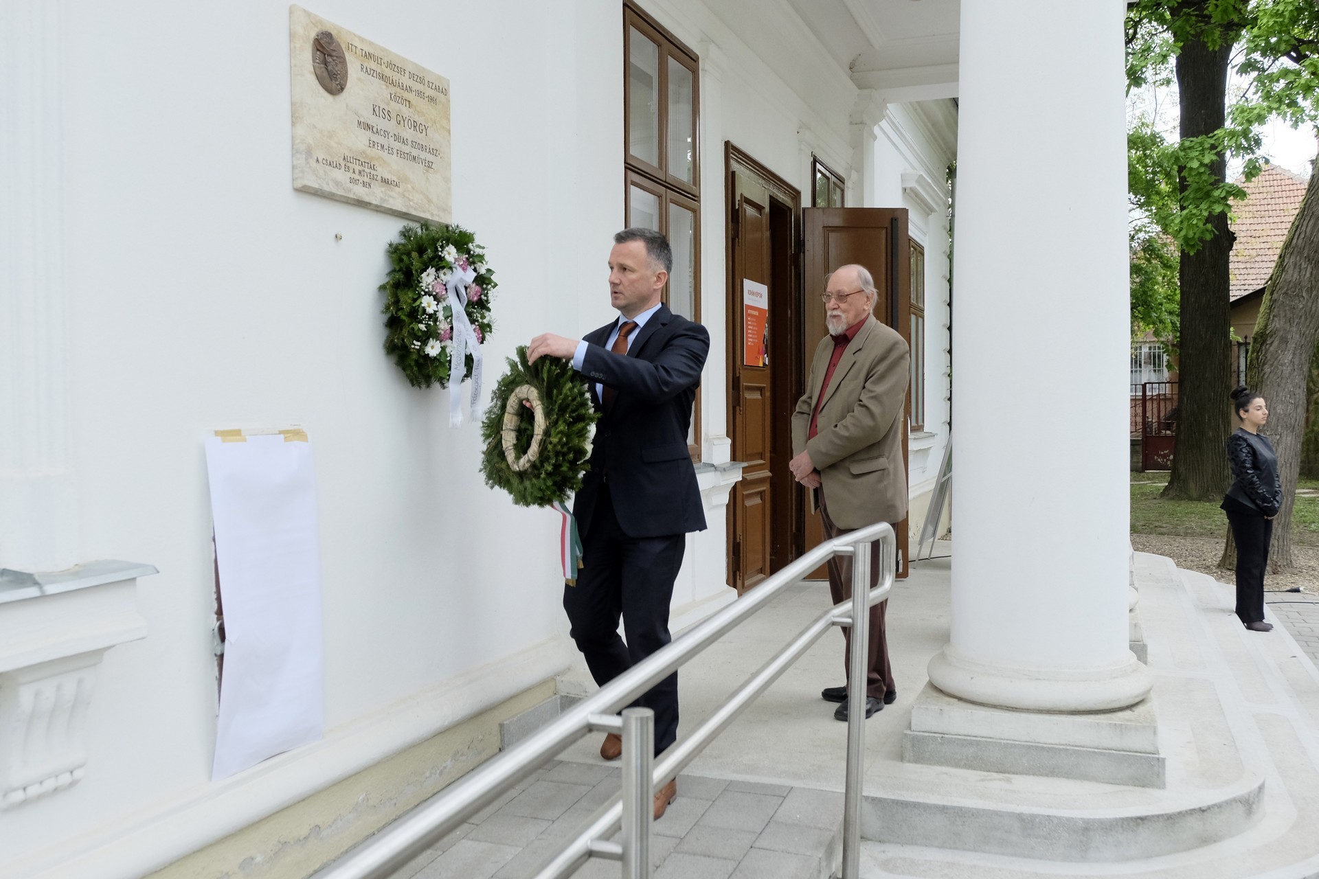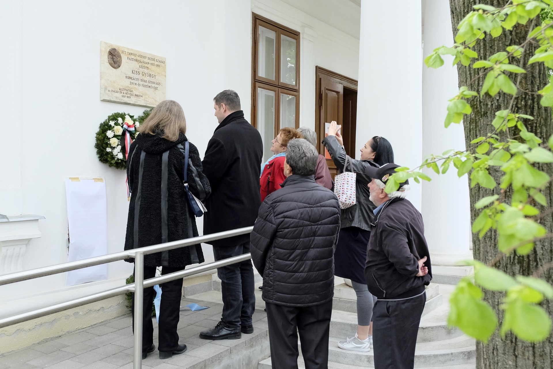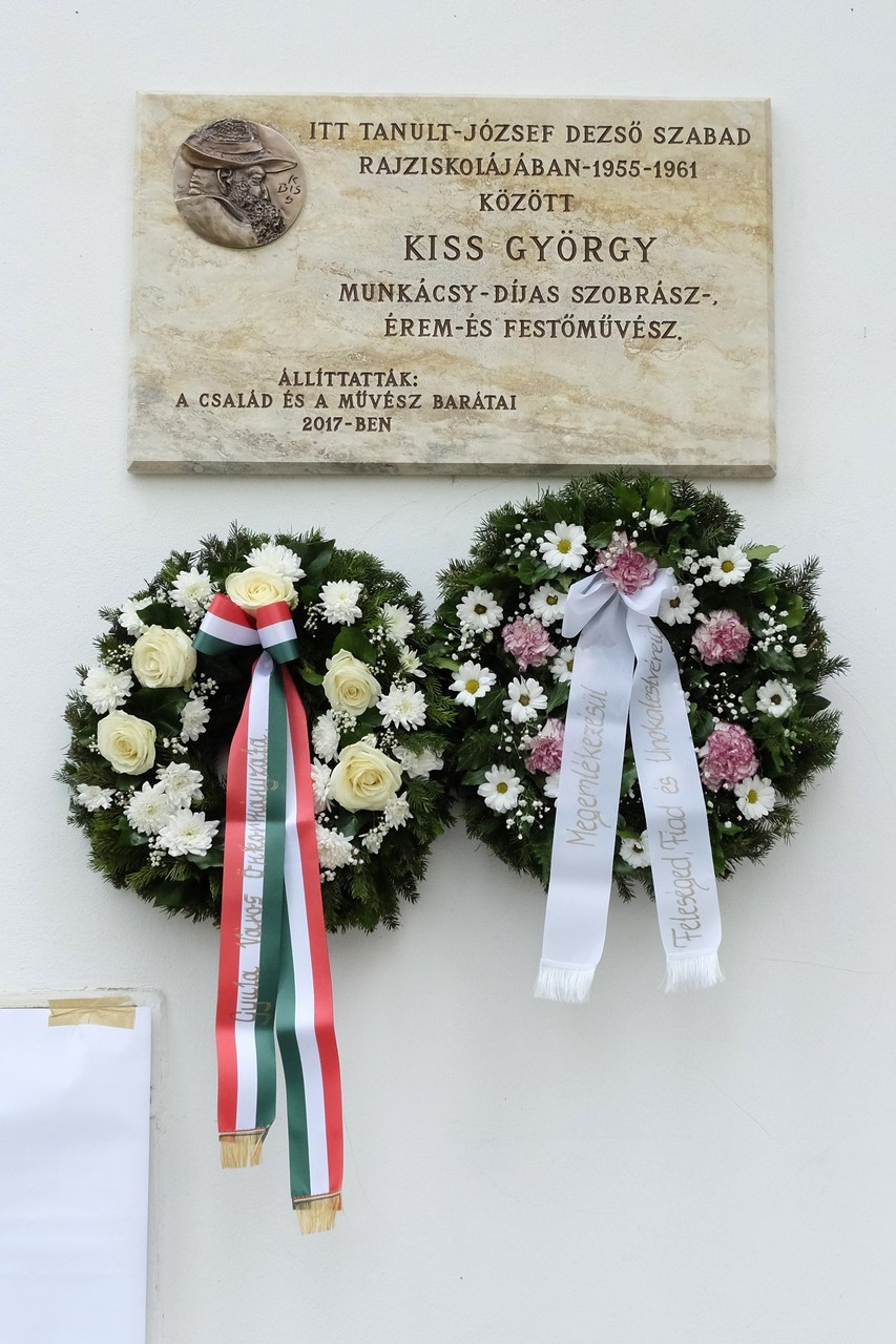 A beszédet egy Kiss György-idézettel zárta a nyugalmazott igazgató, majd következett a Csőke Péter kőfaragó mester által készített tábla ünnepélyes leleplezése. Az avatás a család, a barátok és az emlékezők koszorúinak elhelyezésével zárult.