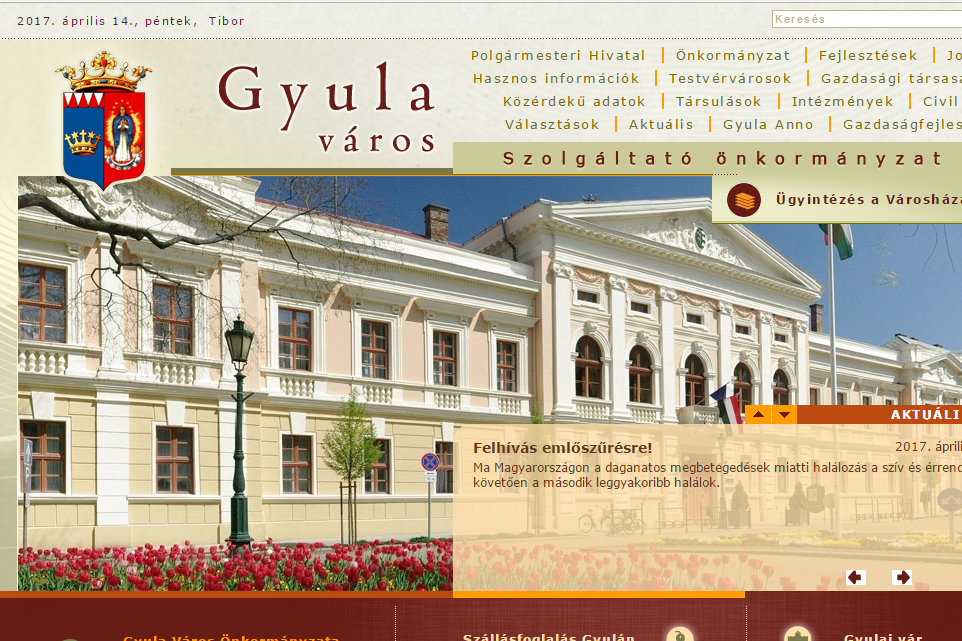 17 évvel ezelőtt, 2000. április 3-án jelent meg városunk hivatalos honlapja a világhálón www.gyula.hu címen. A honlapot a Prakticomp Webdesign Stúdiója készítette.