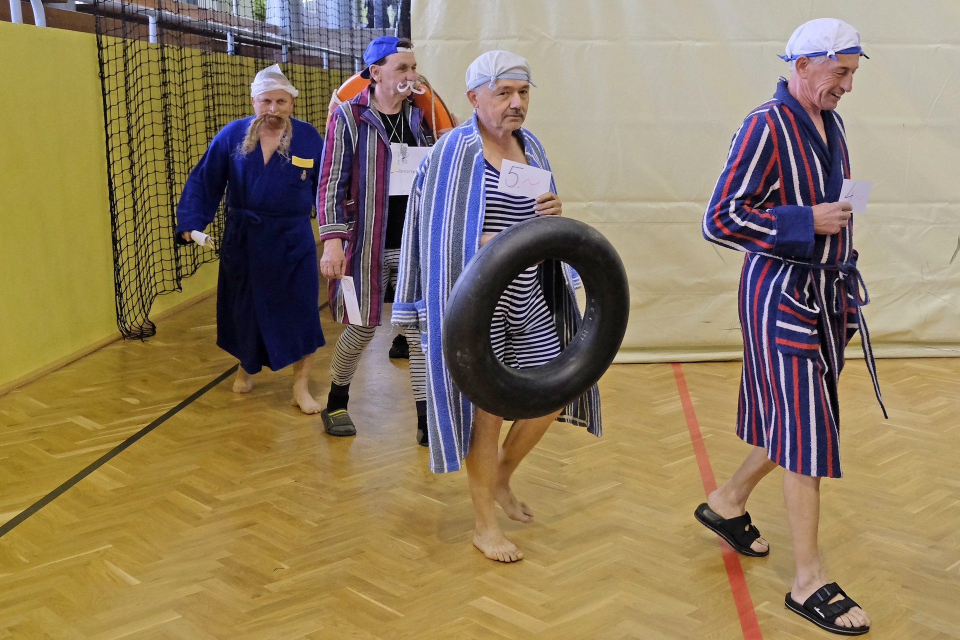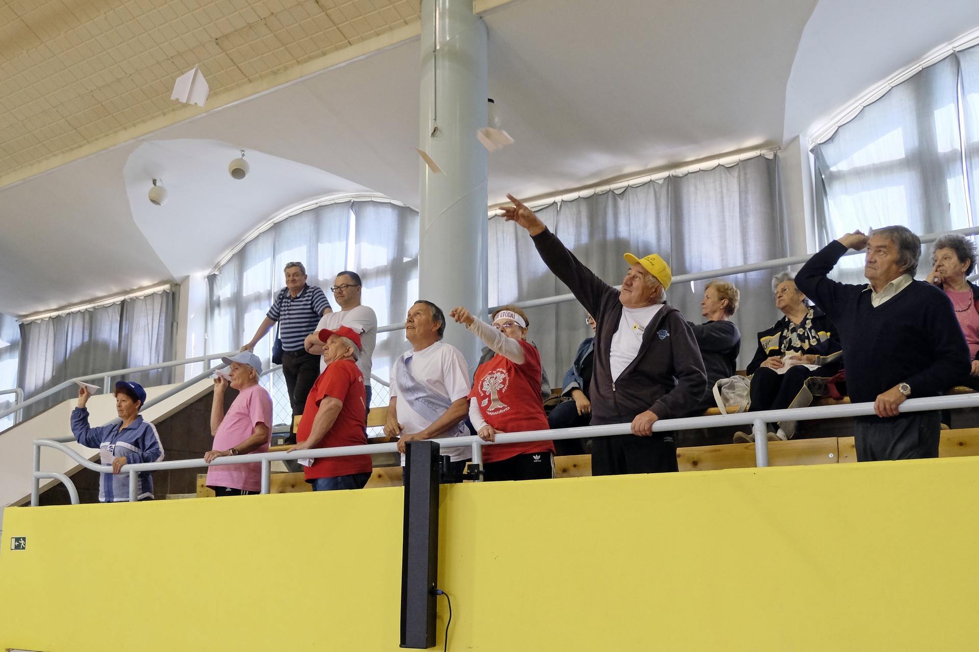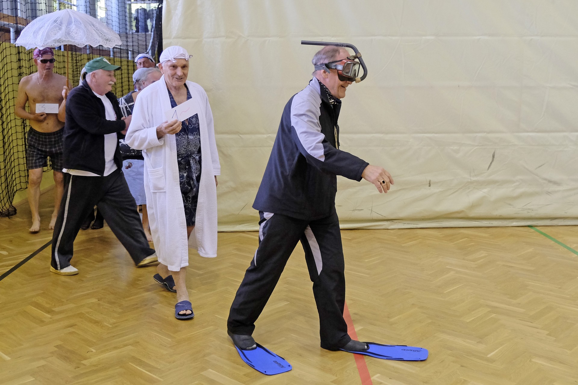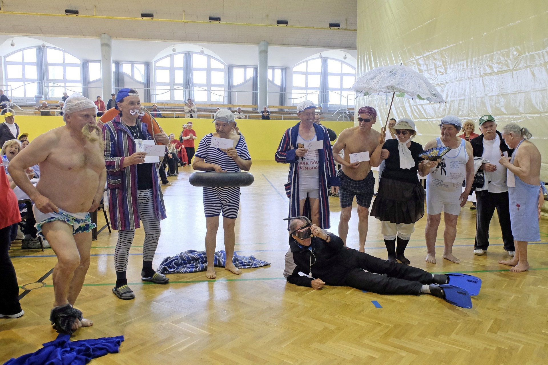 A valódi vetélkedő ezután kezdődött. Volt papírrepülő-hajtogatás és -dobás, medicinlabda-staféta és szalagos táncverseny. Akadtak olyan versenyszámok is, mint például a férfifürdőruha-bemutató, amelyek nem kis derültséget okoztak. Az agytorna is próbára tette a jelenlévőket: a feladatlapok kitöltése mellett egy helyszínfelismerő játékon is bizonyítaniuk kellett.