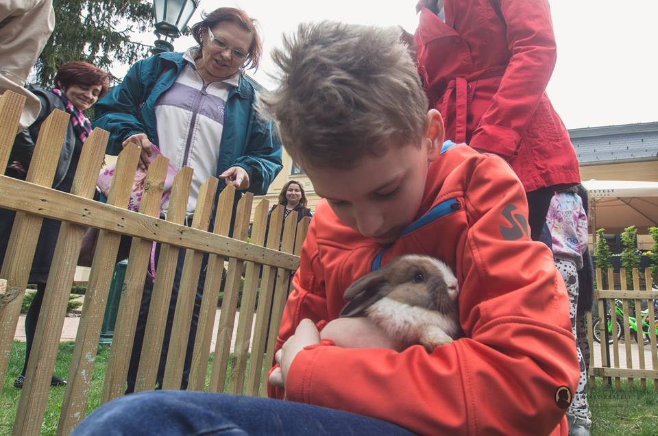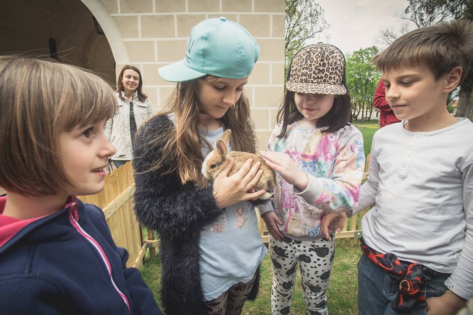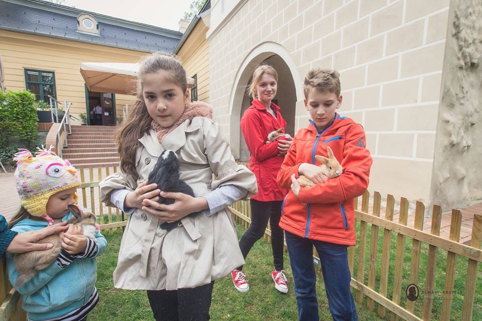 A kastély Török-tornyánál nyuszikat lehet simogatni