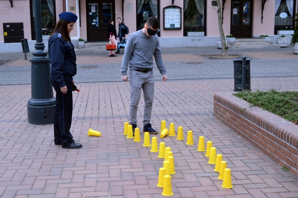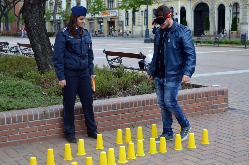 A „részeg szemüveg” néven ismert eszközt próbálhatták ki az érdeklődők április 13-án Békéscsabán, a Szent István téren. A Békéscsabai Rendőrkapitányság a rendezvénnyel az ittas járművezetés veszélyeire igyekezett felhívni a figyelmet. Az eszköz segítségével a gyalogosok és a kerékpárosok megtapasztalhatták, ittas állapotban hogyan látnák a forgalmat, hogyan tudnának reagálni egy balesetveszélyes helyzetre.