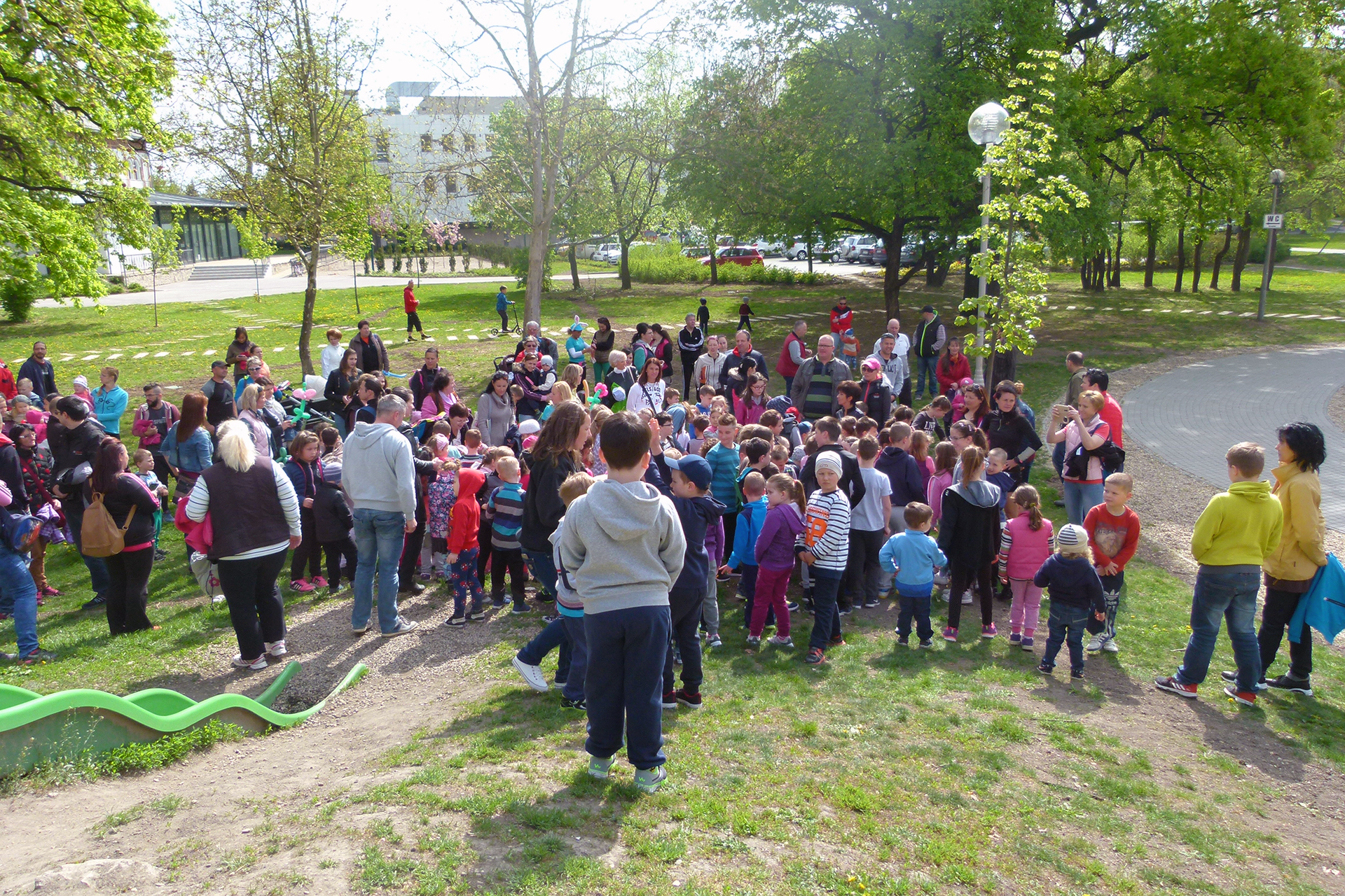 A felhőtlen szórakozást ígérő programra szép számmal látogattak ki a családok. A helyszínen az ovisok versenyt futhattak a nyuszival, és megkereshették az elrejtett „húsvéti tojásokat”. A nyuszis kihívást Alt Norbertnek, Gyula város alpolgármesterének a köszöntője nyitotta meg.