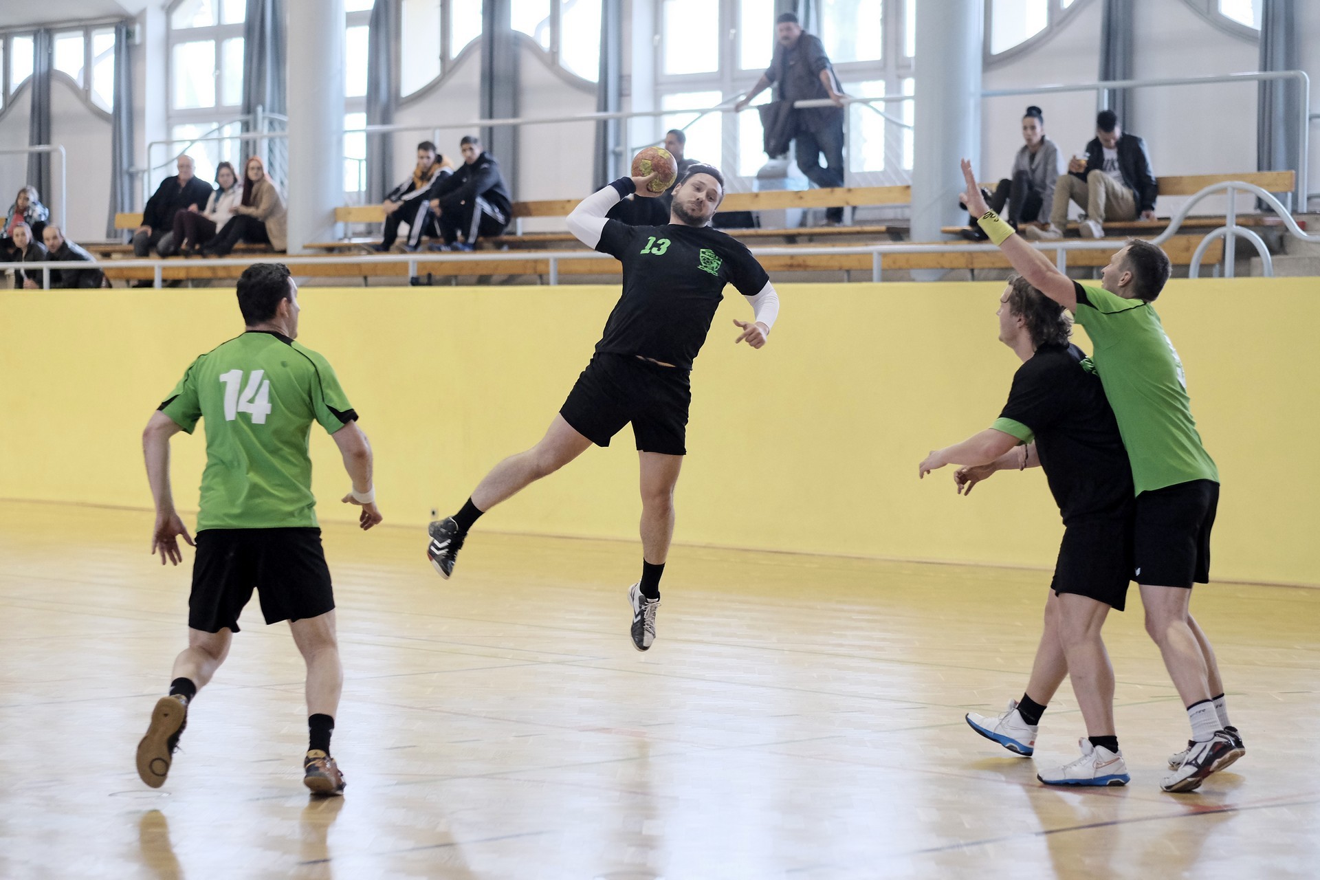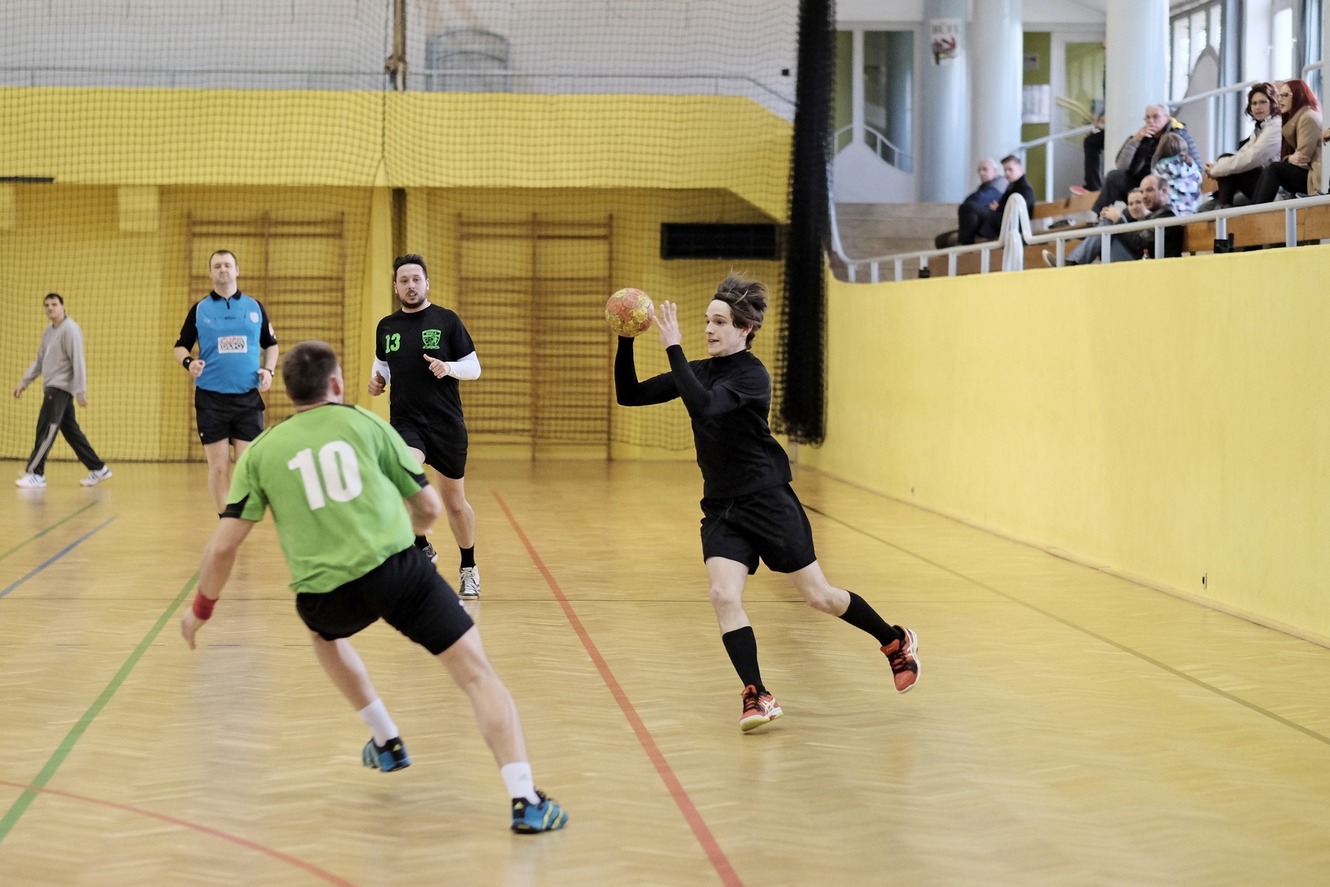 Az első félidő az eredmény utáni futással telt el, viszont a hazaiak becsületére válik, hogy a néha 5-6 gólos hátrányt, a félidőt jelző sípszóig, sikerült kétgólosra lefaragni, így 19–21-gyel vonulhattak pihenni a csapatok.