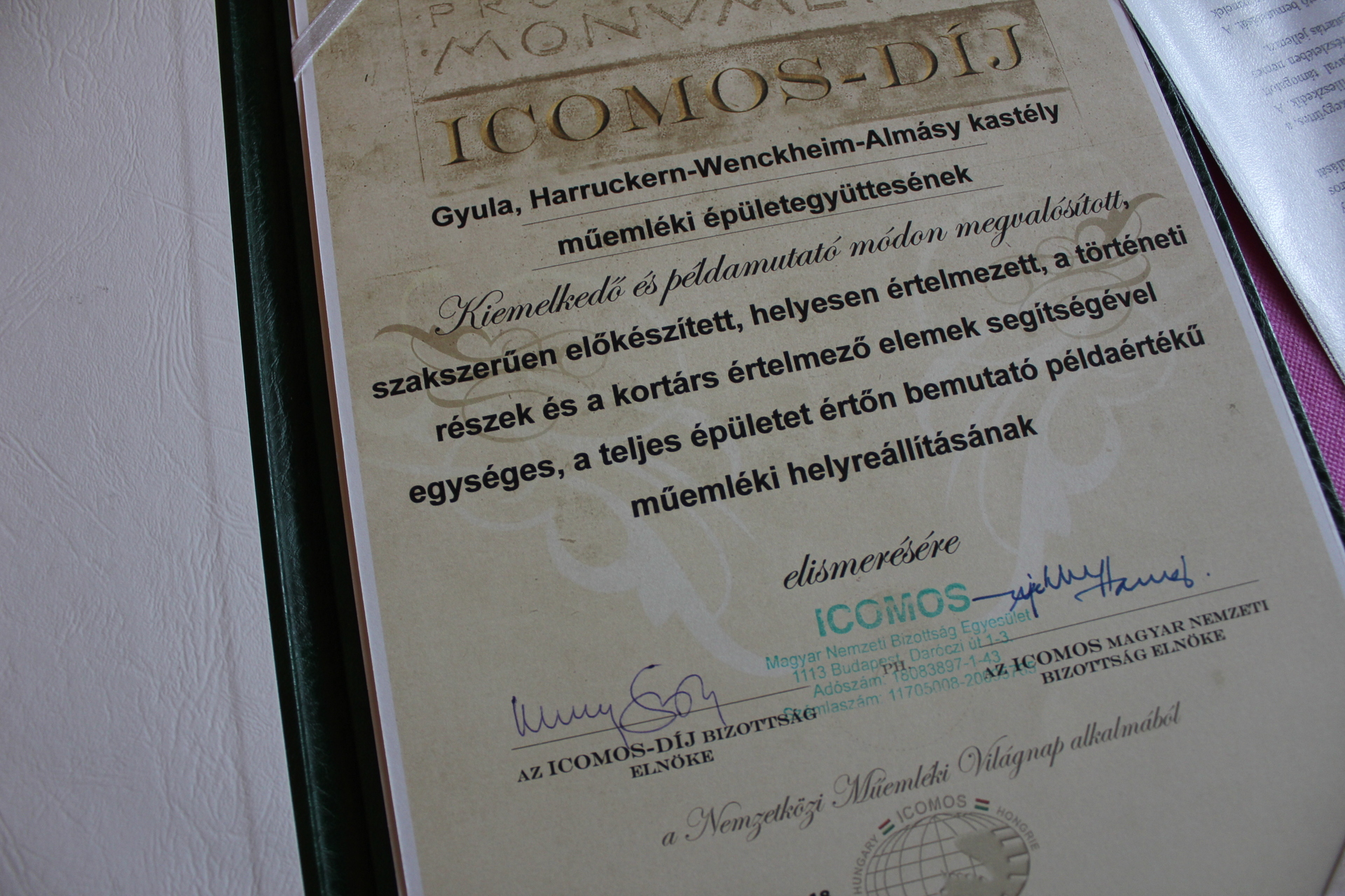 – Az ICOMOS-díj egy olyan rangos elismerés, amelyet országosan mindössze 53 alkalommal ítéltek oda. Békés megyében csak Gyulán található ICOMOS-díjas épület. Az ICOMOS az UNESCO műemlékvédelmi világszervezete, egy műemlékvédelmi szakértő intézmény, amely a világ műemlékvédelmében meghatározó szerepet tölt be. Az elismerést 2006-ban ítélték oda első alkalommal Magyarországon, és az első díjazottak között volt a gyulai vár – ismertette Görgényi Ernő, Gyula város polgármestere.
