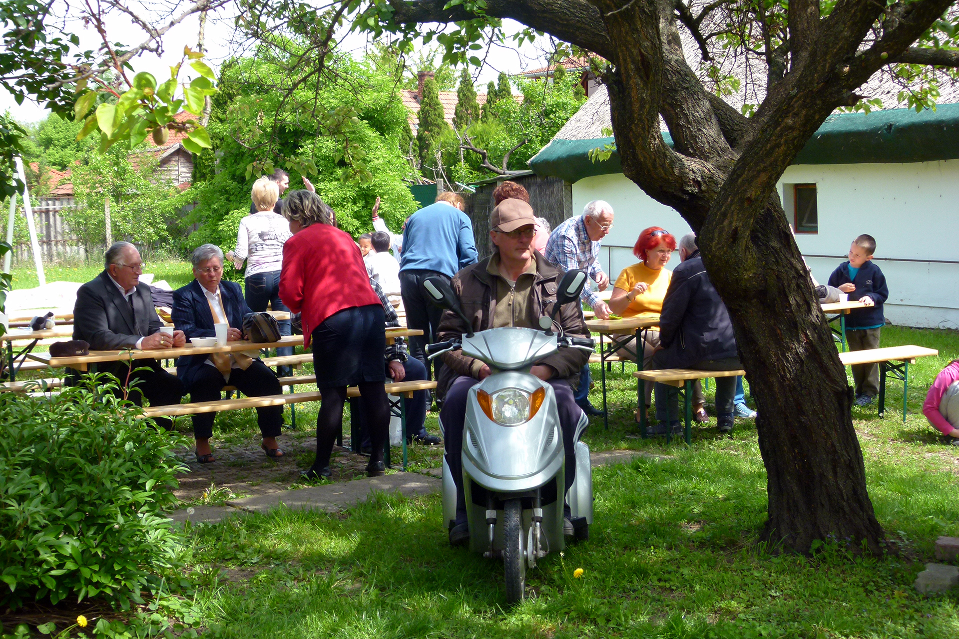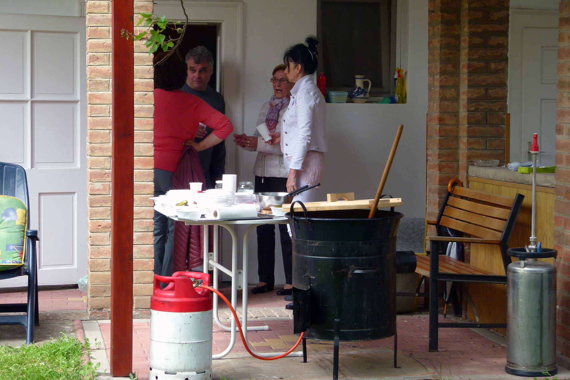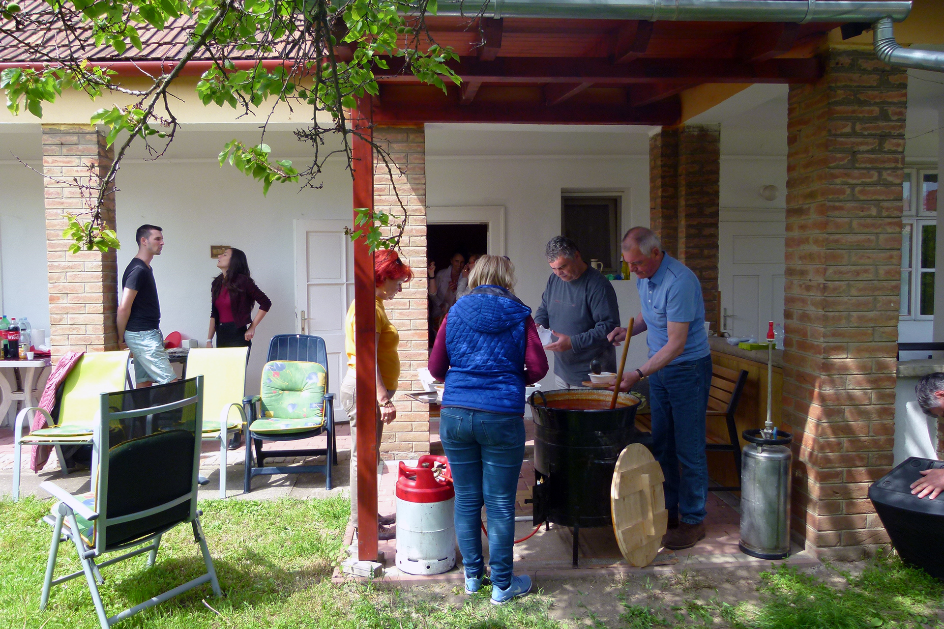 A kondérban kolbászos paprikás krumpli rotyogott, amivel minden betérőt megkínáltak a házigazdák. Az udvaron szépszámú vendégsereg gyűlt össze.