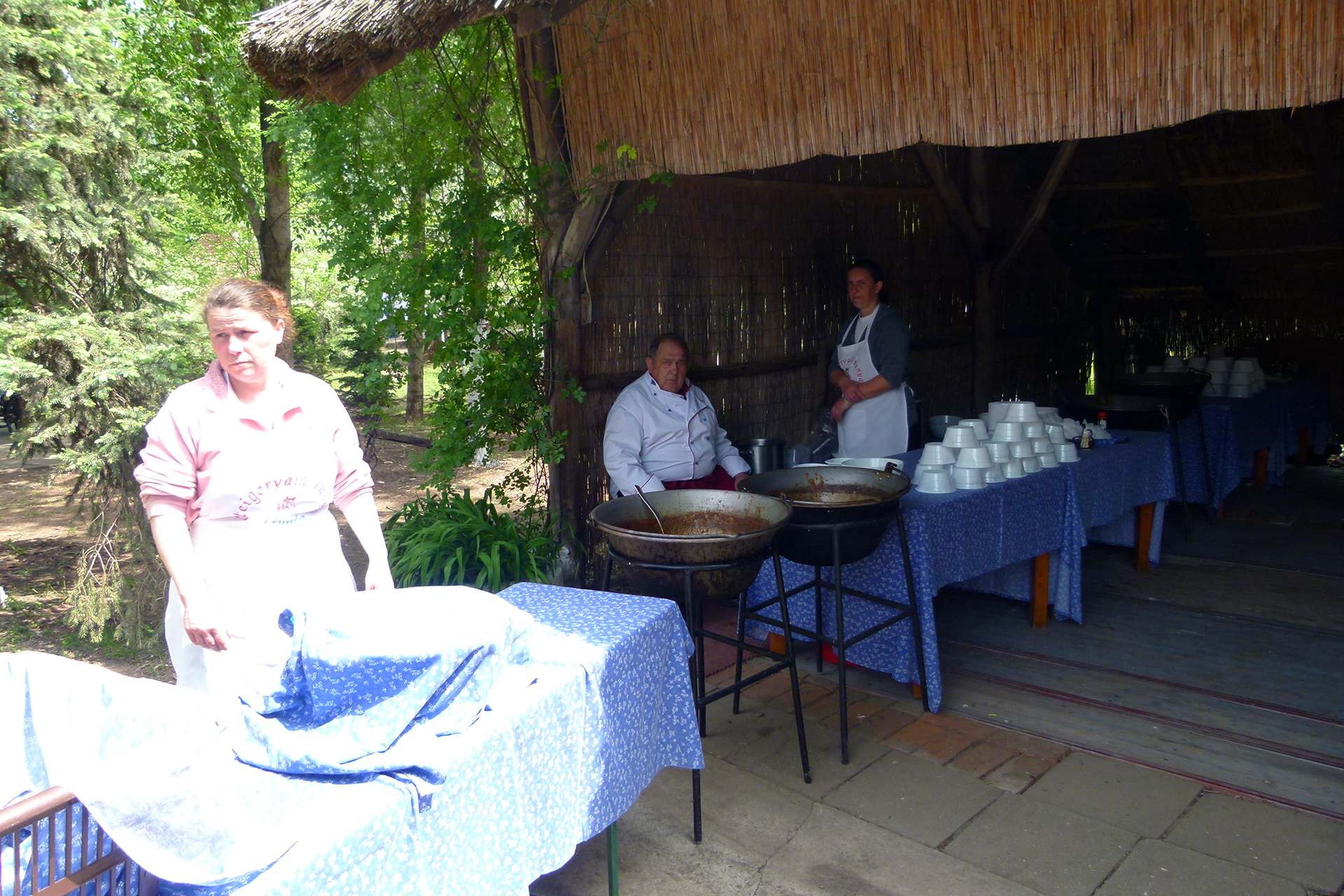 Az ebédhez nótaszó dukált, a háromféle hagyományos ételt pedig házi készítésű lekváros fánk egészítette ki. A legkiemelkedőbb gasztronómiai „alkotás”, a pörkölt, helyileg tenyésztett szürkemarhából készült.