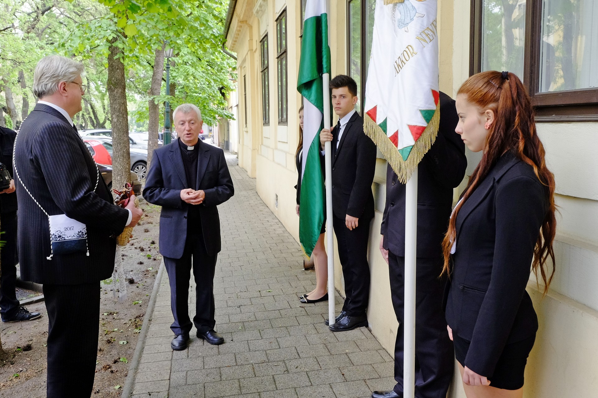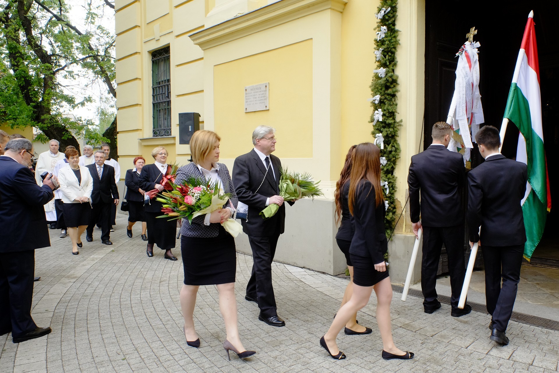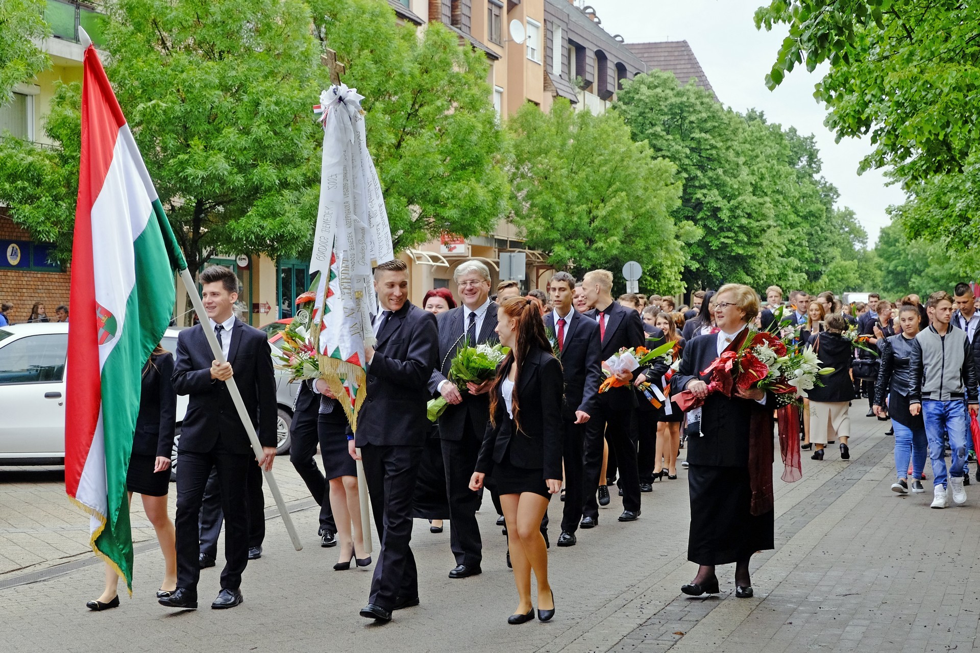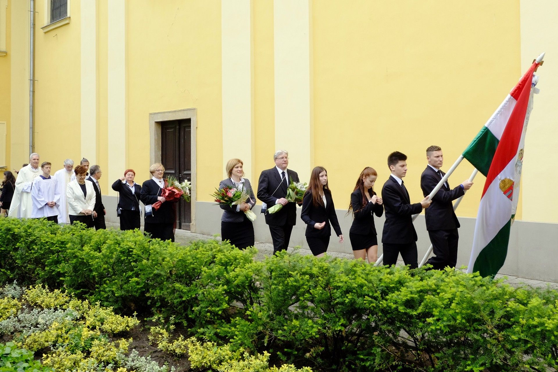 A szentmise után kezdetét vette a ballagás, amelyen elsőként Szabó Imre búcsúzott el a végzősöktől az iskola nevében. A ballagókat ő arra bíztatta, gondoljanak vissza arra, mit adtak neki ezek az évek, és milyen emberekké váltak az iskolában töltött évek alatt.