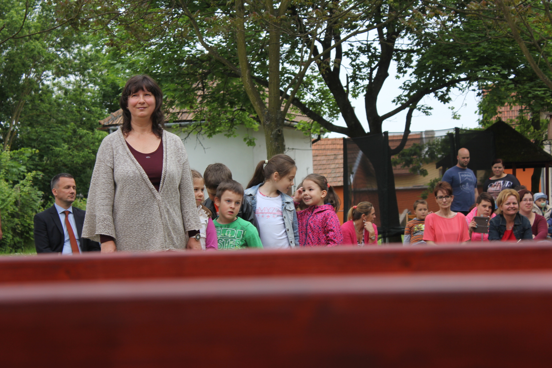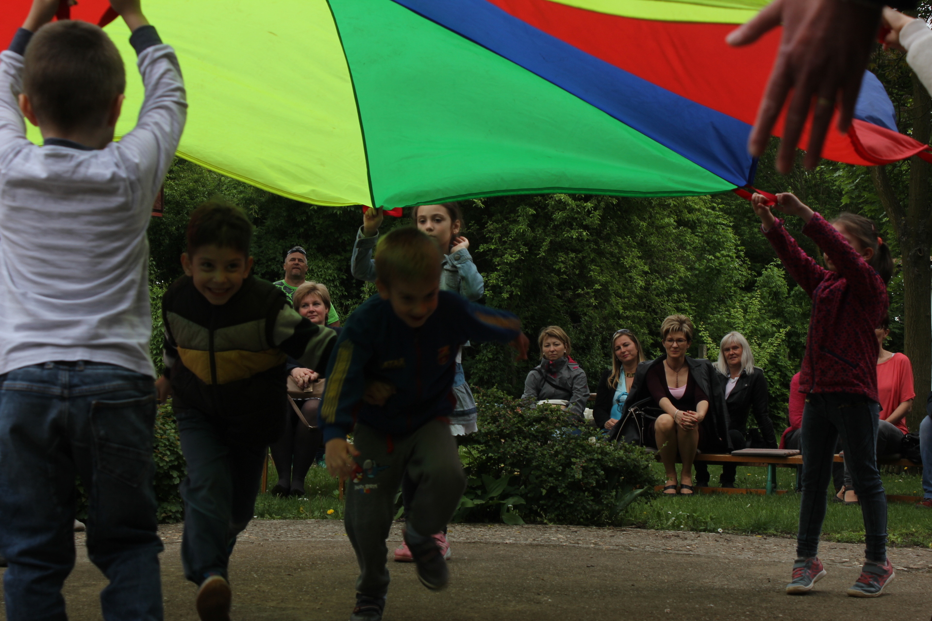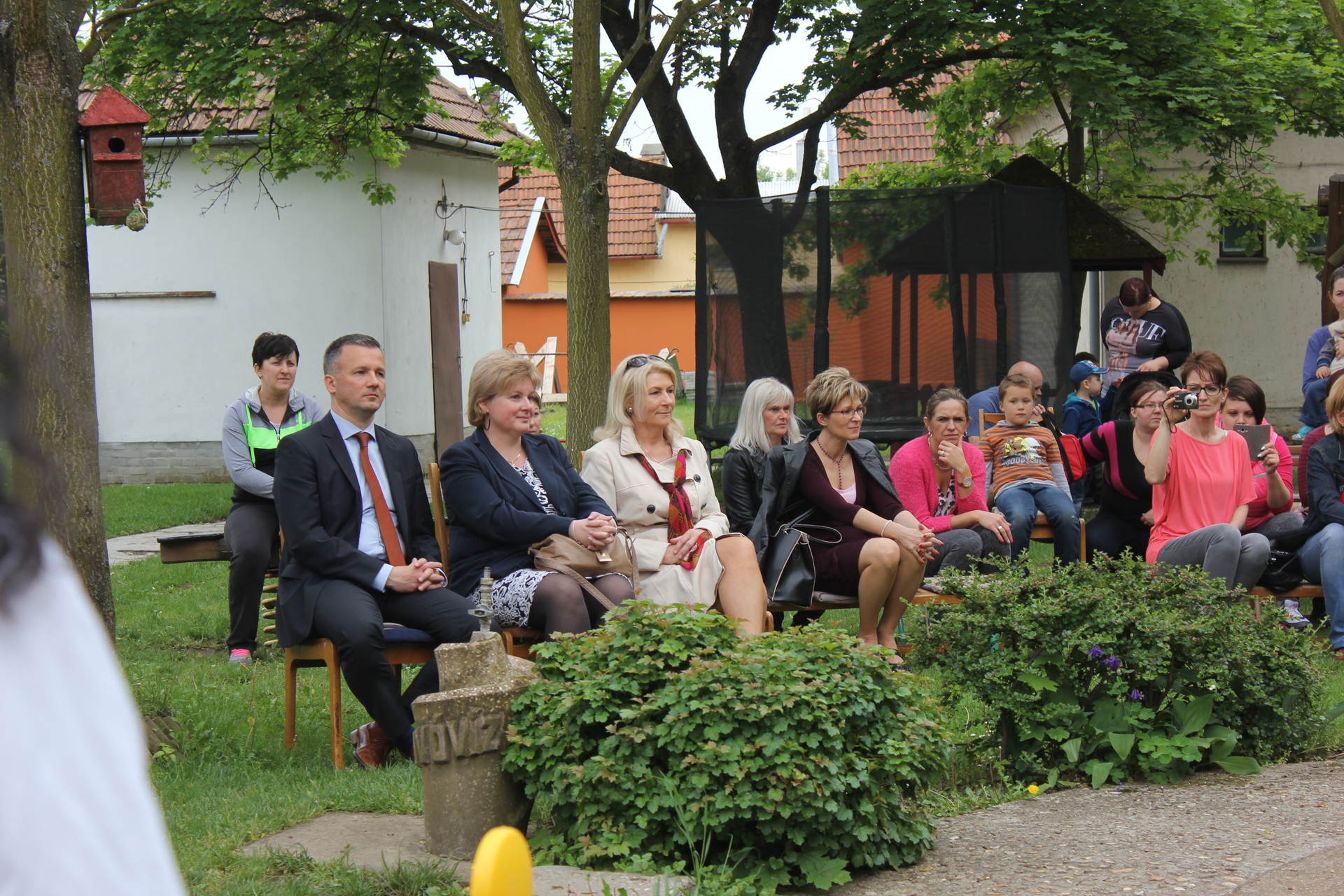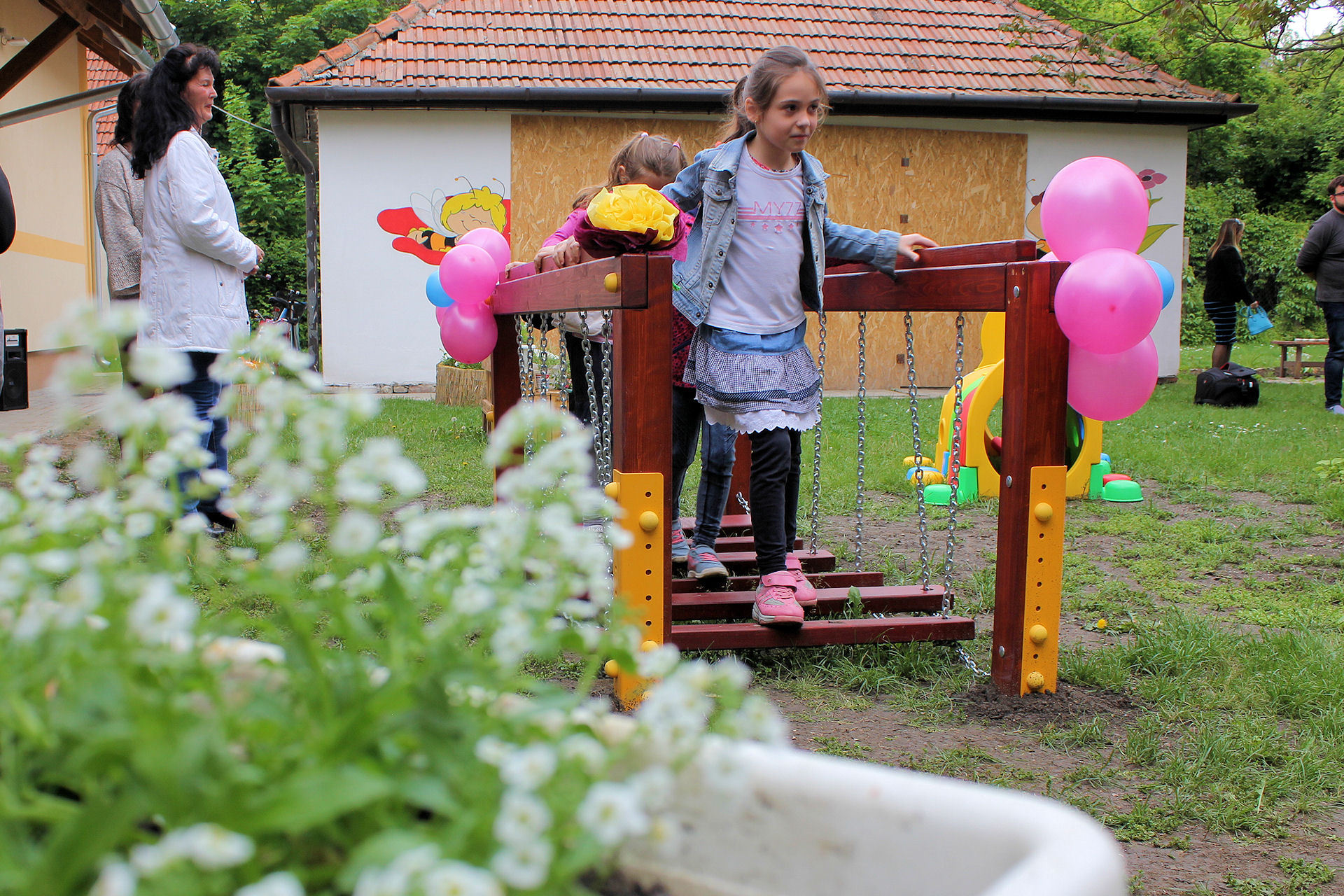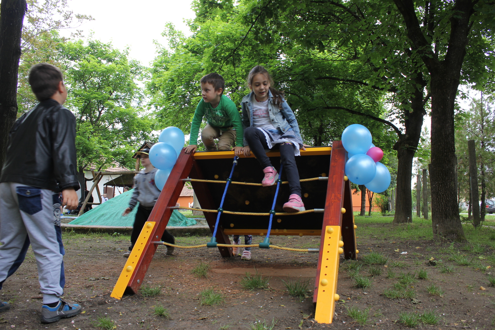 Az esemény az óvodások zenés műsorával indult, melyen a kicsik tavaszidéző, szivárványos játékot mutattak be, majd Kiss Tamásné köszöntötte a jelenlévőket. A választókerület képviselője üdvözlő gondolataiban azt hangsúlyozta, hogy a képviselői feladatokat elvállalni épp azt jelenti, hogy a hasonló helyzetekben segítséget nyújt az ember, és örömmel látja, hogy „új tulajdonosai” nagyon élvezik a játszóeszközöket.