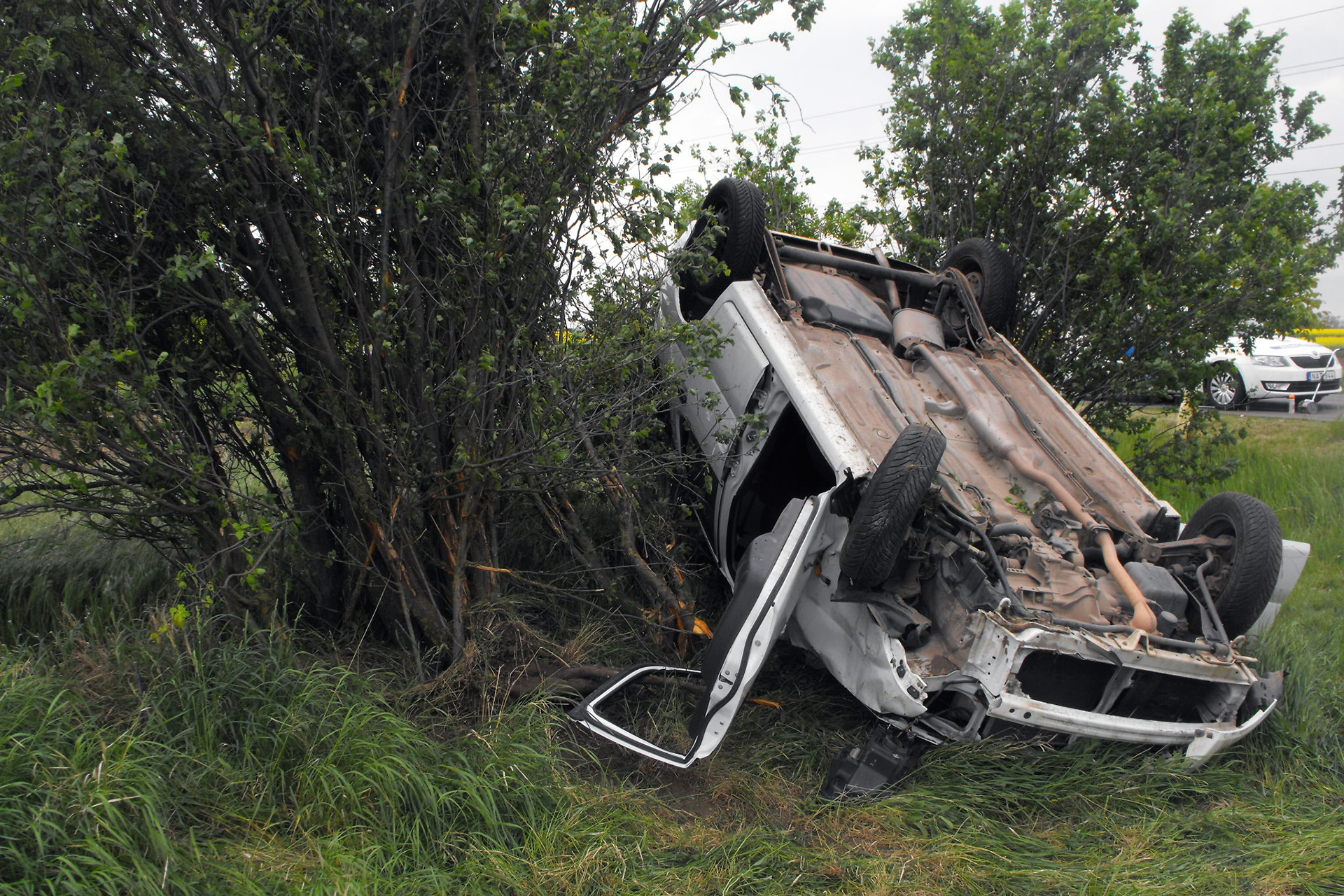 Nagyszénás külterületén 10 óra körül egy személyautó letért az útról, fának ütközött, majd egy vízelvezető árokban a tetejére borulva állt meg. Az autó vezetőjét súlyos sérüléssel vitték kórházba a mentők.