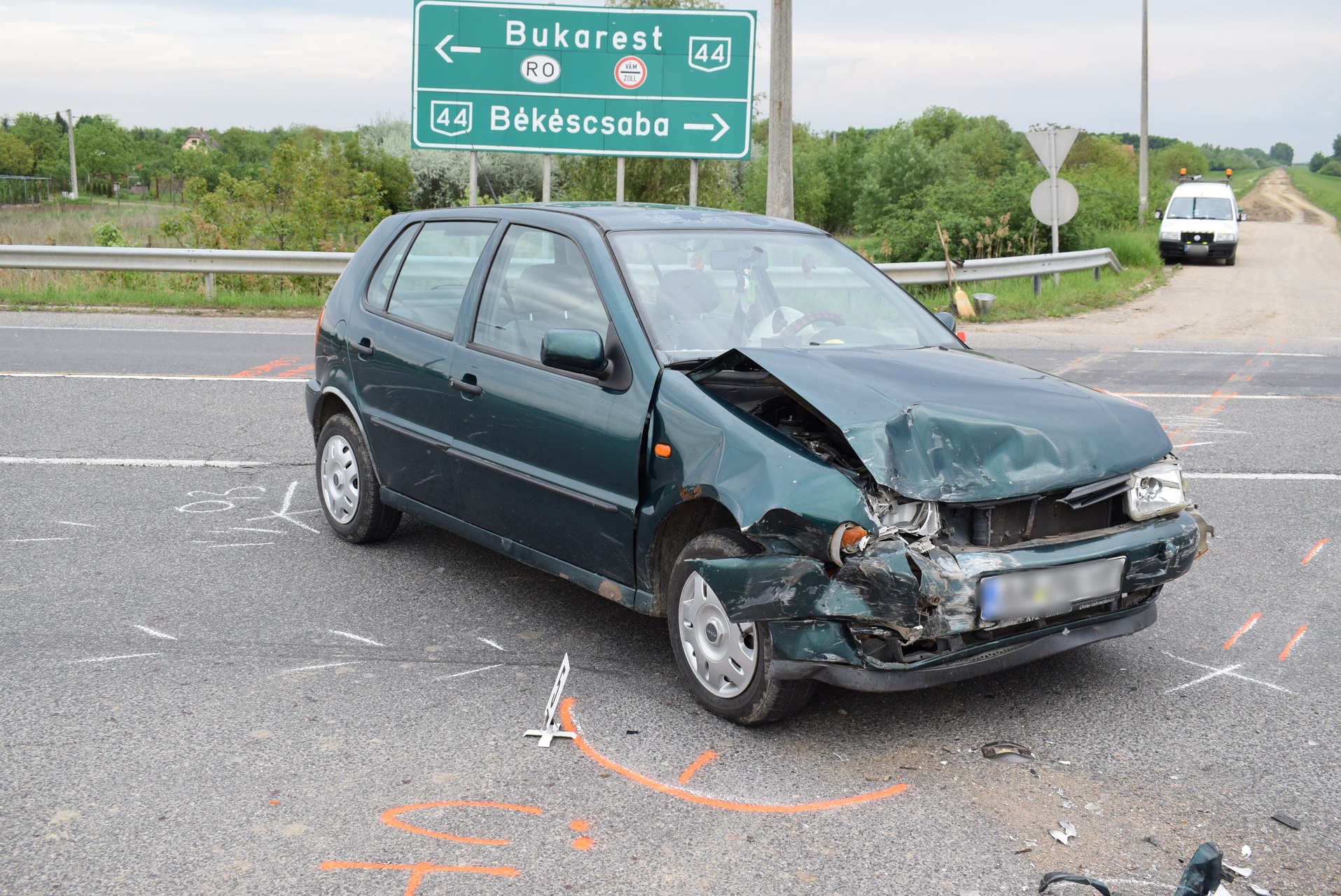 Gyula külterületén, a 44-es számú főút és a Temesvári út kereszteződésében 14 óra 20 perckor összeütközött két személygépkocsi. A balesetben az egyik autó vezetője, még a másik járműben az utas sérült meg könnyebben.