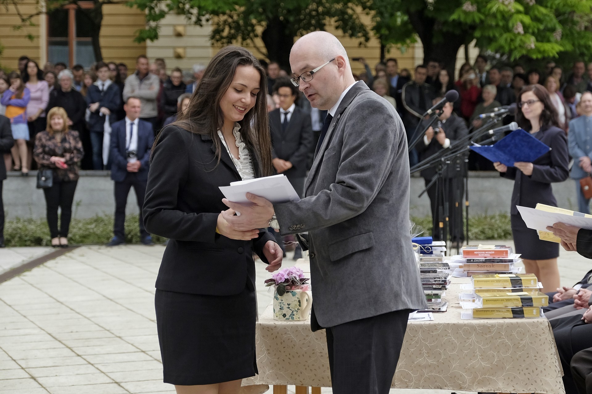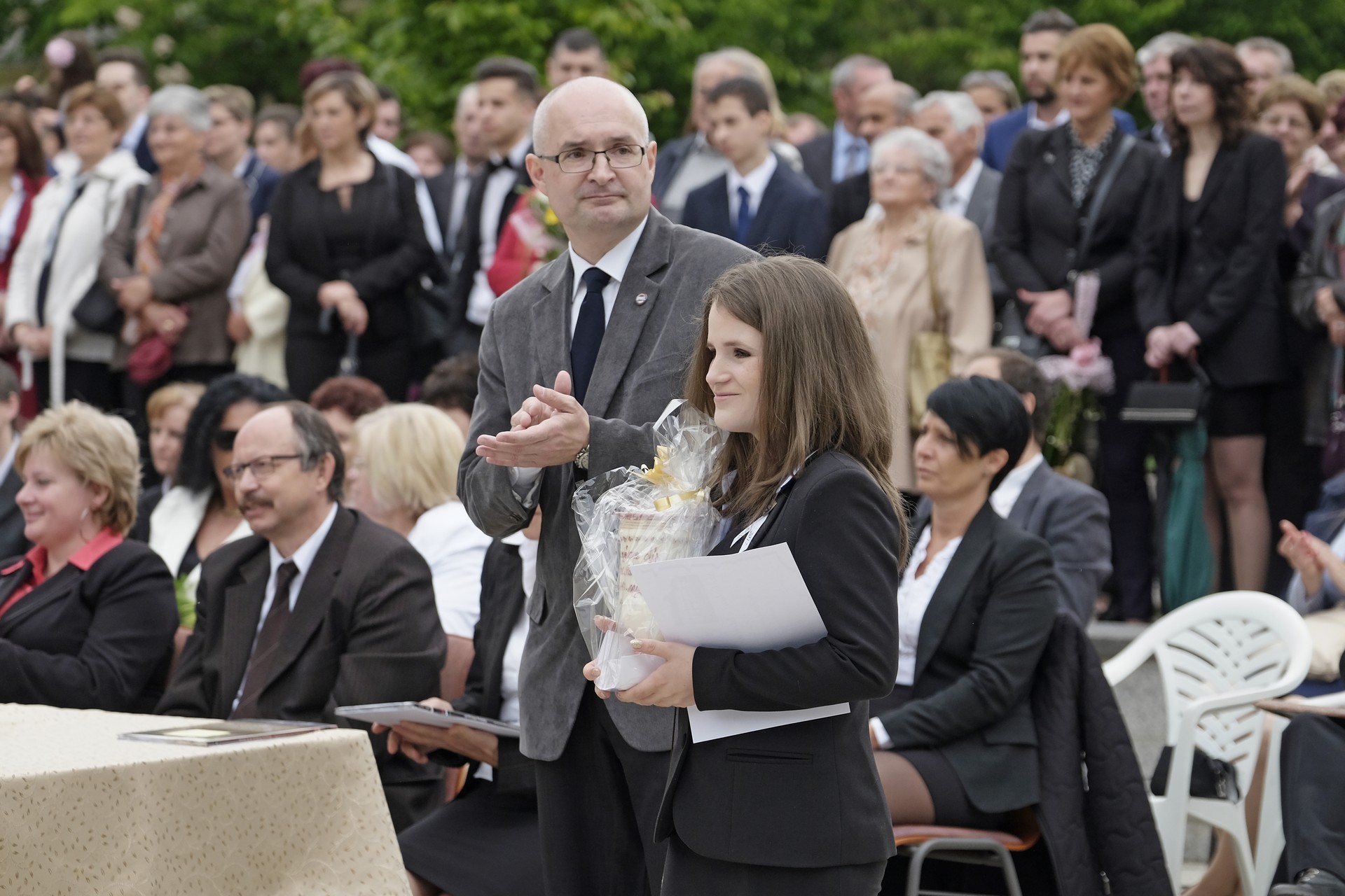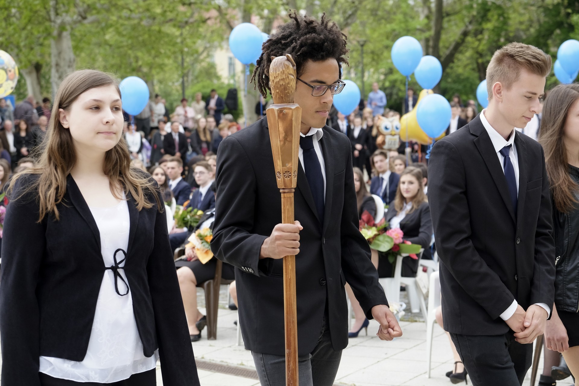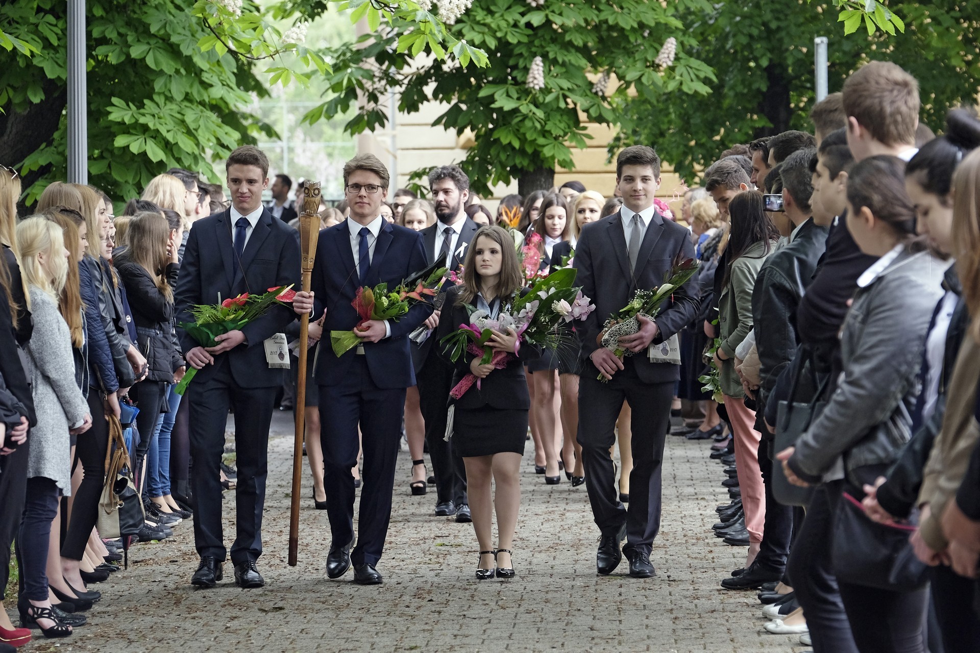 – Saját elmondásotok szerint a beiratkozáskor még csetlő-botló módon, félénk kisdiákként kerestétek a helyeteket – mondta Szűcs Levente. – Azóta sok év eltelt, a félénk kisdiákból pedig öntudatos felnőtt lett, aki már szabadon, büszkén dönthet saját sorsáról. Nagyszerű közösségek jöttek létre, ahol bár sokszor eltért a véleményetek, de a közös cél elfogadása mindig feloldotta az ellentéteket, és előbb-utóbb sikerült megtalálnotok a közös nevezőt.