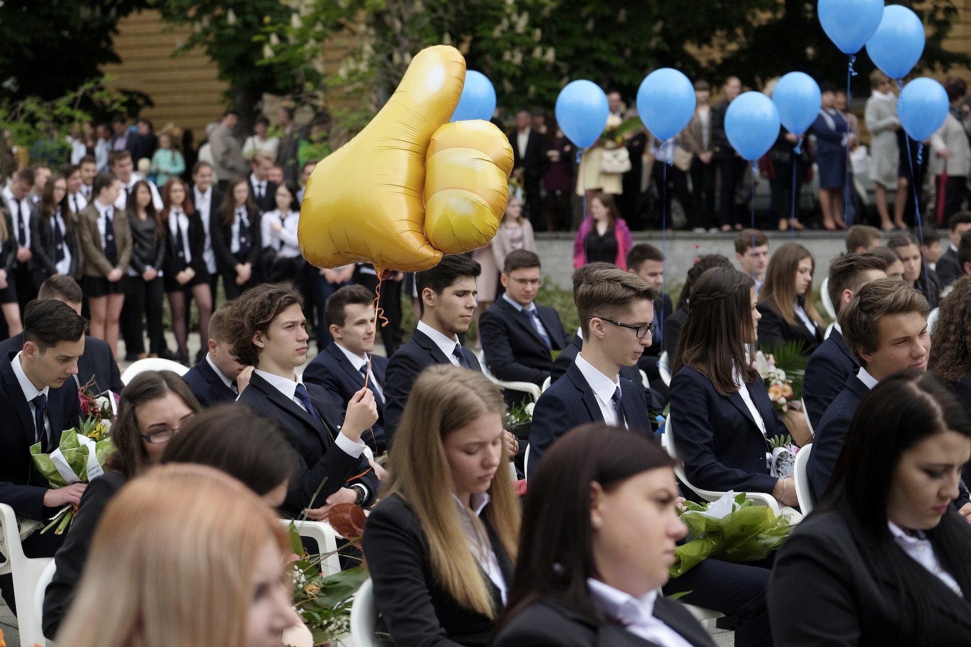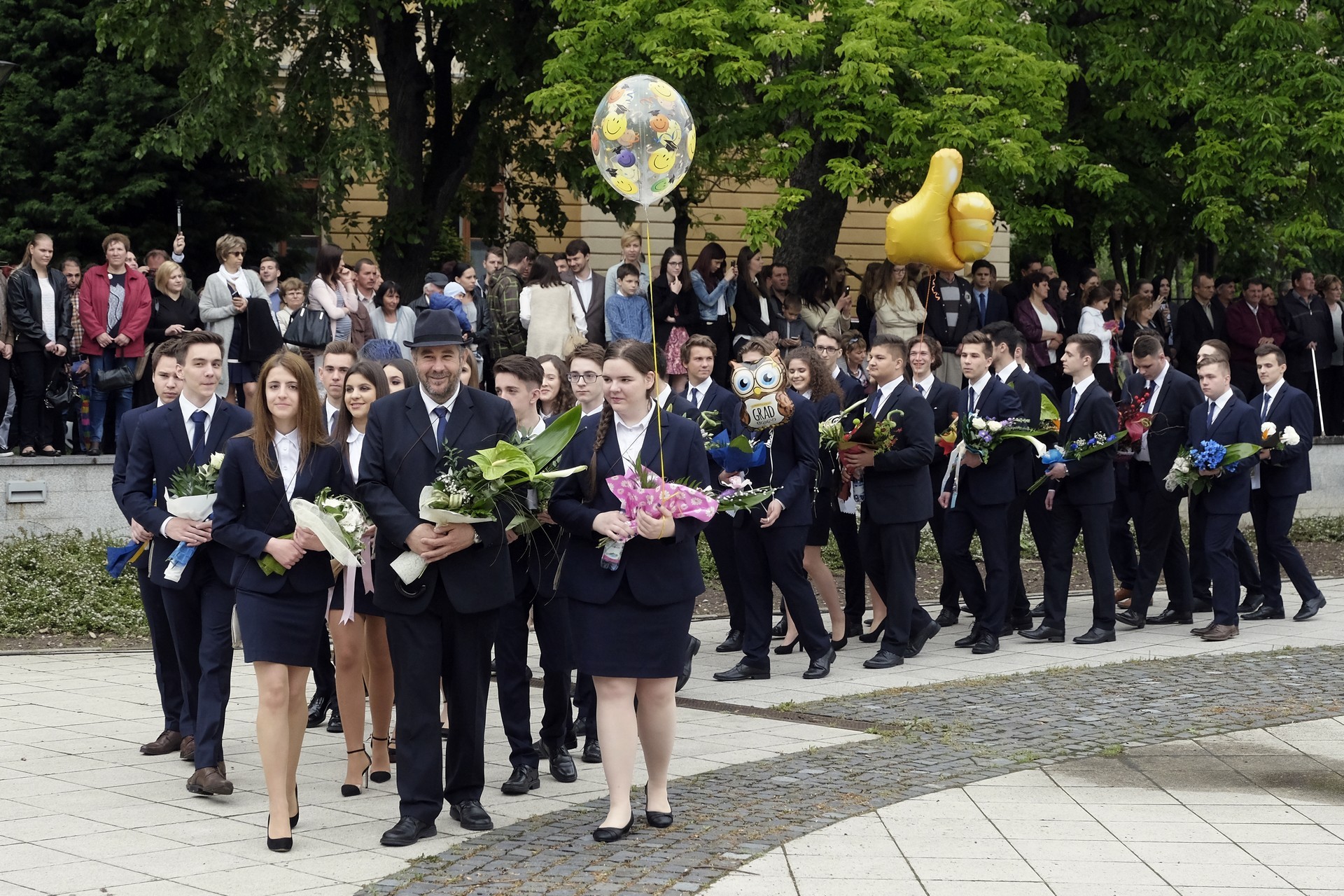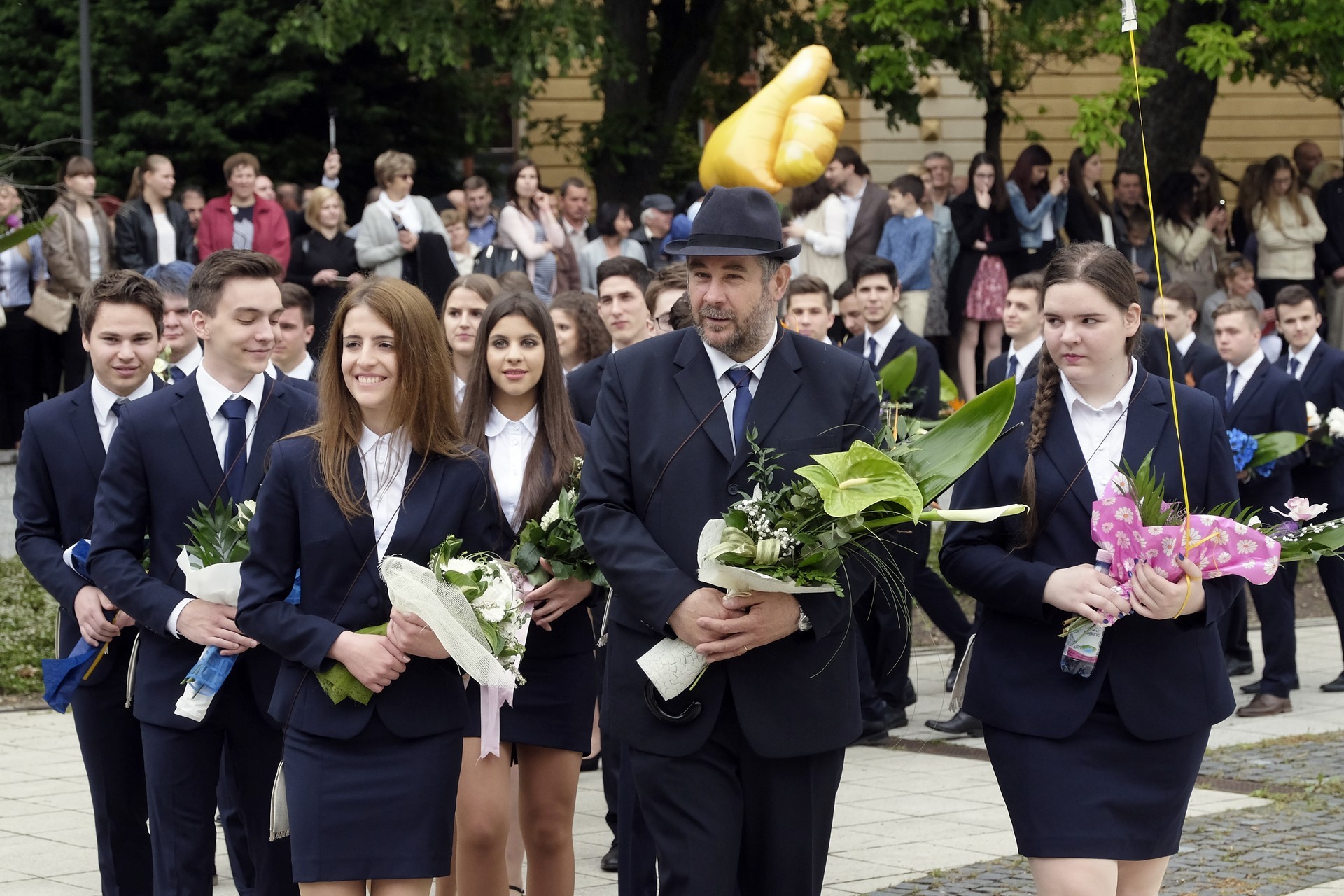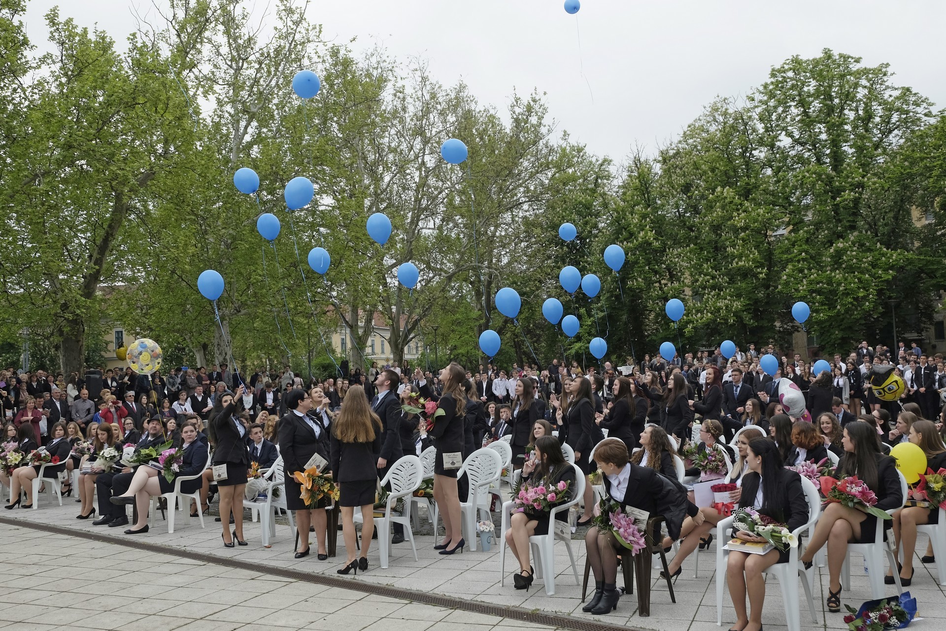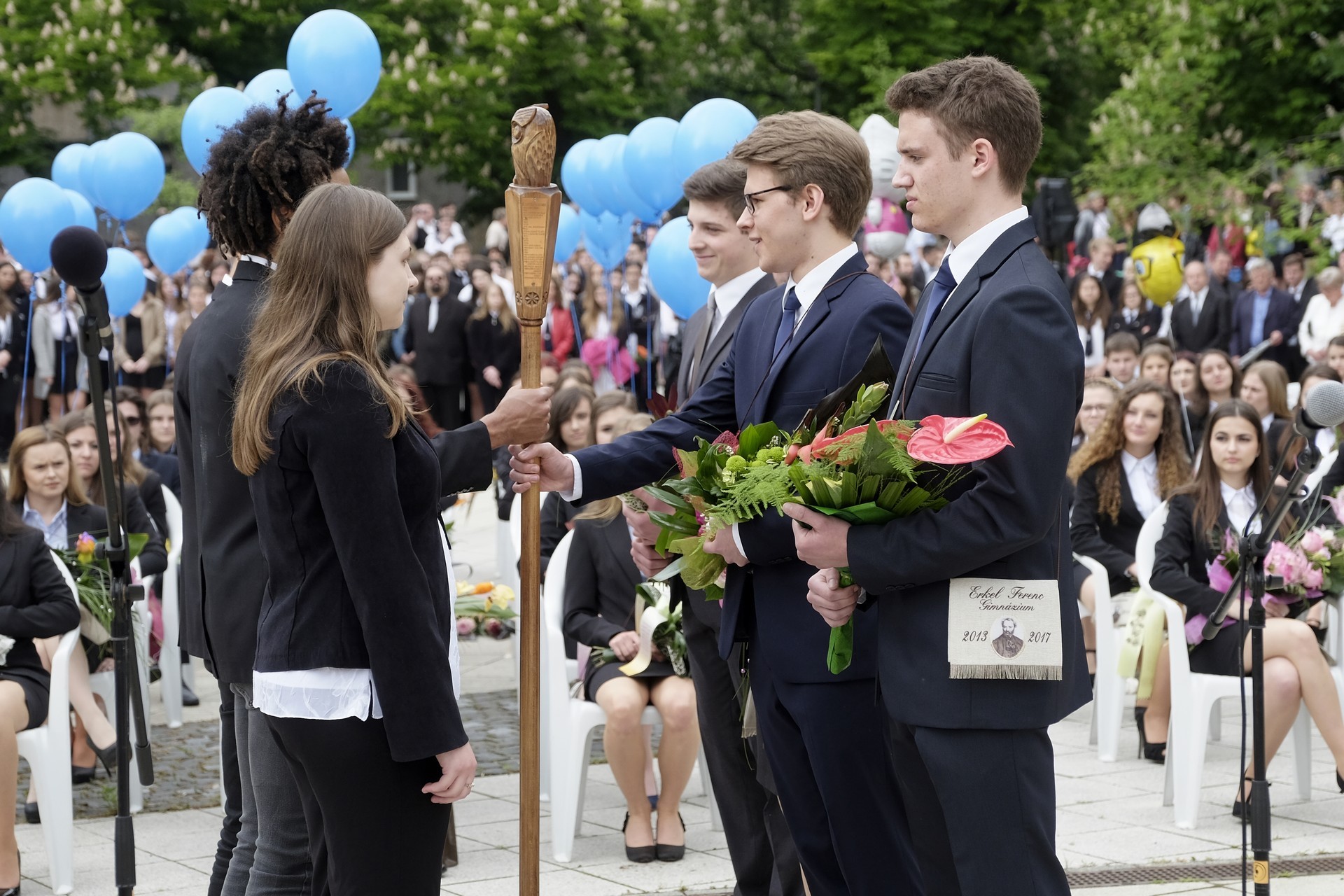 Az ünnepség végén a végzősök vallottak az elmúlt évekről, majd a 12. C osztályosok léggömböket engedtek el, amelyekkel jelképesen a középiskolás éveket is szélnek eresztették. A ballagó diákok végül elindultak, hogy záróakkordként megkoszorúzzák névadójuk szobrát az Erkel téren.