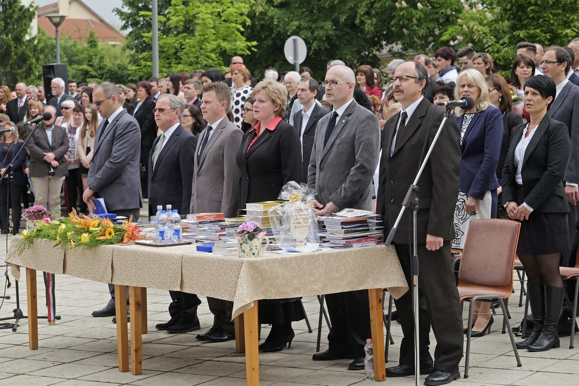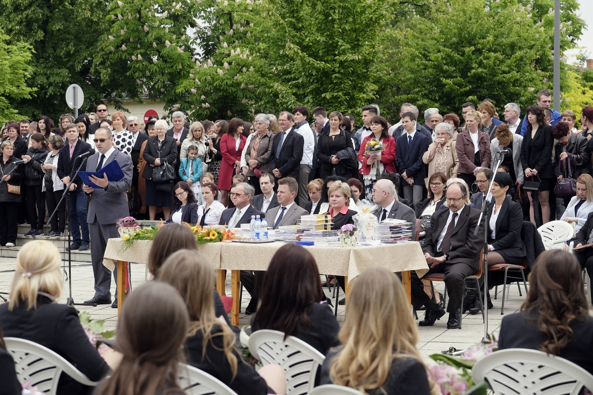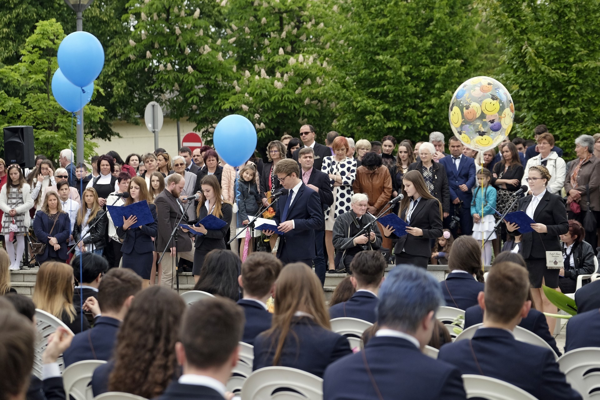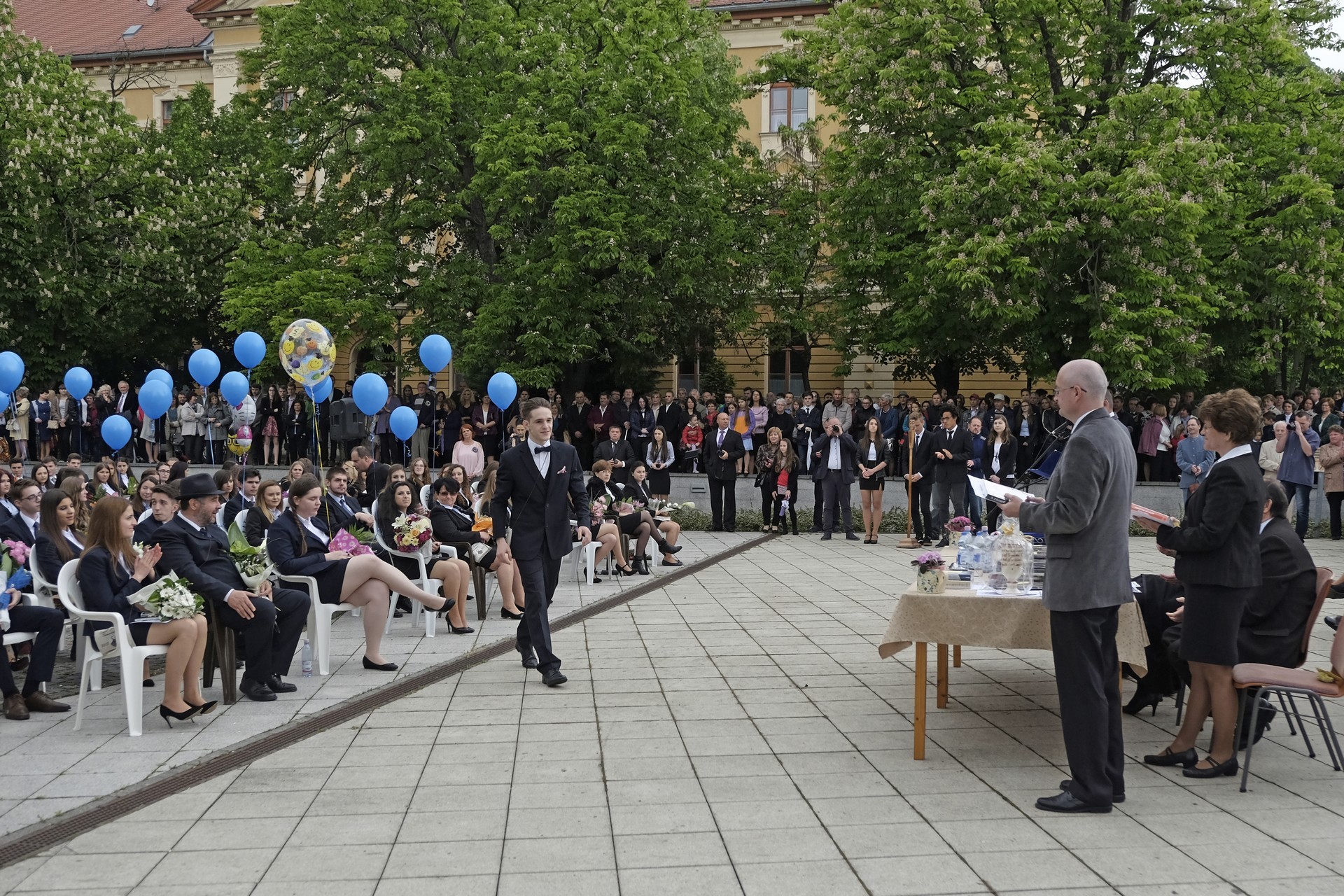 A ballagás a Himnusz közös eléneklésével kezdődött, majd Szűcs Levente, az intézmény igazgatójának beszédével folytatódott, amelyben elsőként kiemelt néhány diákot, akik meghatározók voltak az iskola elmúlt éveiben, esetleg személyes élménye is volt velük kapcsolatban.