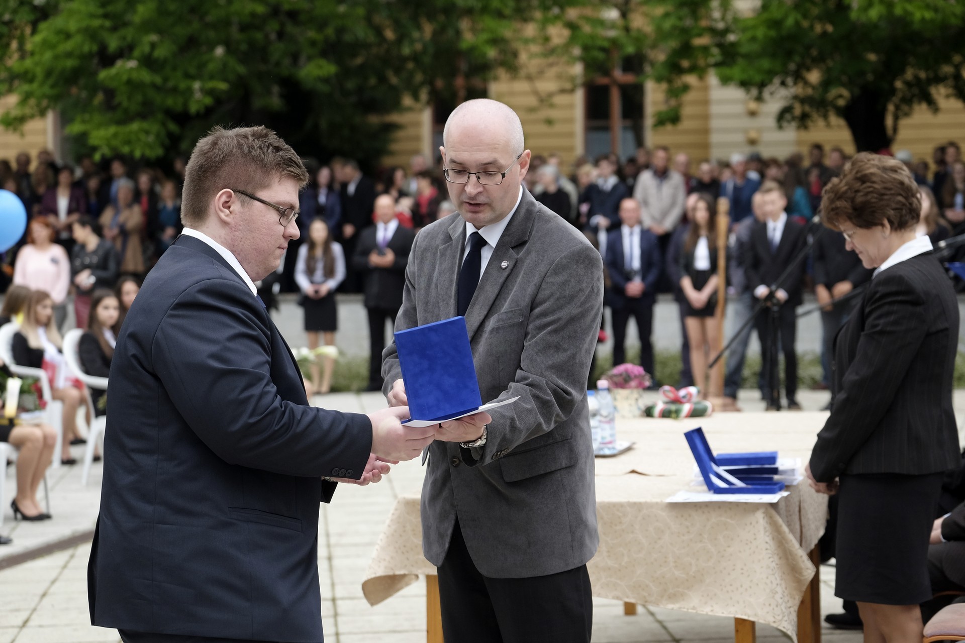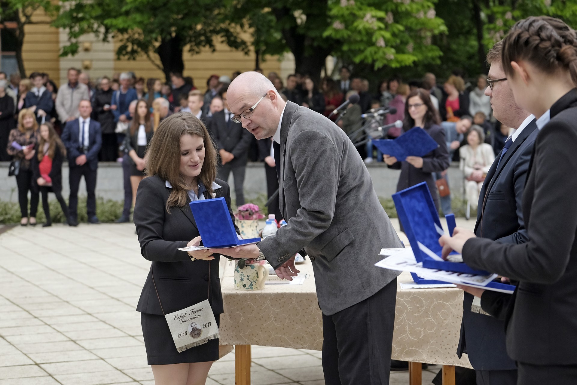 Következett a díjak és elismerések kiosztása, amelyeket Szűcs Levente adott át az arra érdemeseknek. Elsőként azokat a szülőket ismerték el, akik négy éven át támogatták a diákok és az iskola életét, majd az iskola közösségében, valamint kórusában tevékenykedő tanulók vehettek át oklevelet. Az intézményben számos kiváló sportoló van, díjazták a lányfutballcsapatot, a legeredményesebb atlétákat, mezei futókat és úszókat, valamint a strandröplabdásokat és az egyéni versenyzőket.