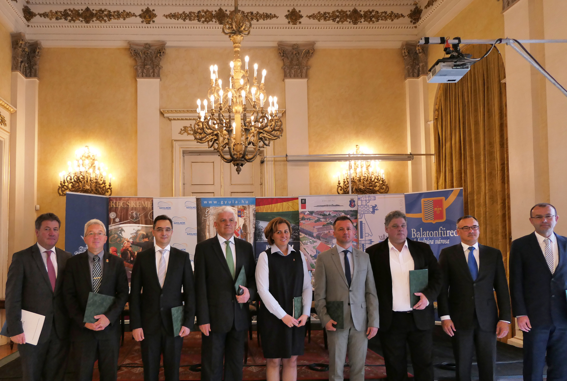 A megállapodást a városok vezetői – dr. Bóka István, Balatonfüred polgármestere, dr. Papp László, Debrecen polgármestere, Borkai Zsolt, Győr polgármestere, Szemeryné Pataki Klaudia, Kecskemét polgármestere, dr. Molnár Attila, Komárom polgármestere, Szalay Ferenc, Szolnok polgármestere, Fördős Attila, Vác polgármester, valamint dr. Görgényi Ernő, Gyula polgármestere – írták alá