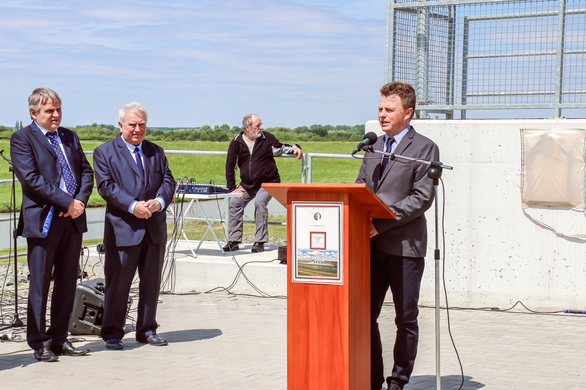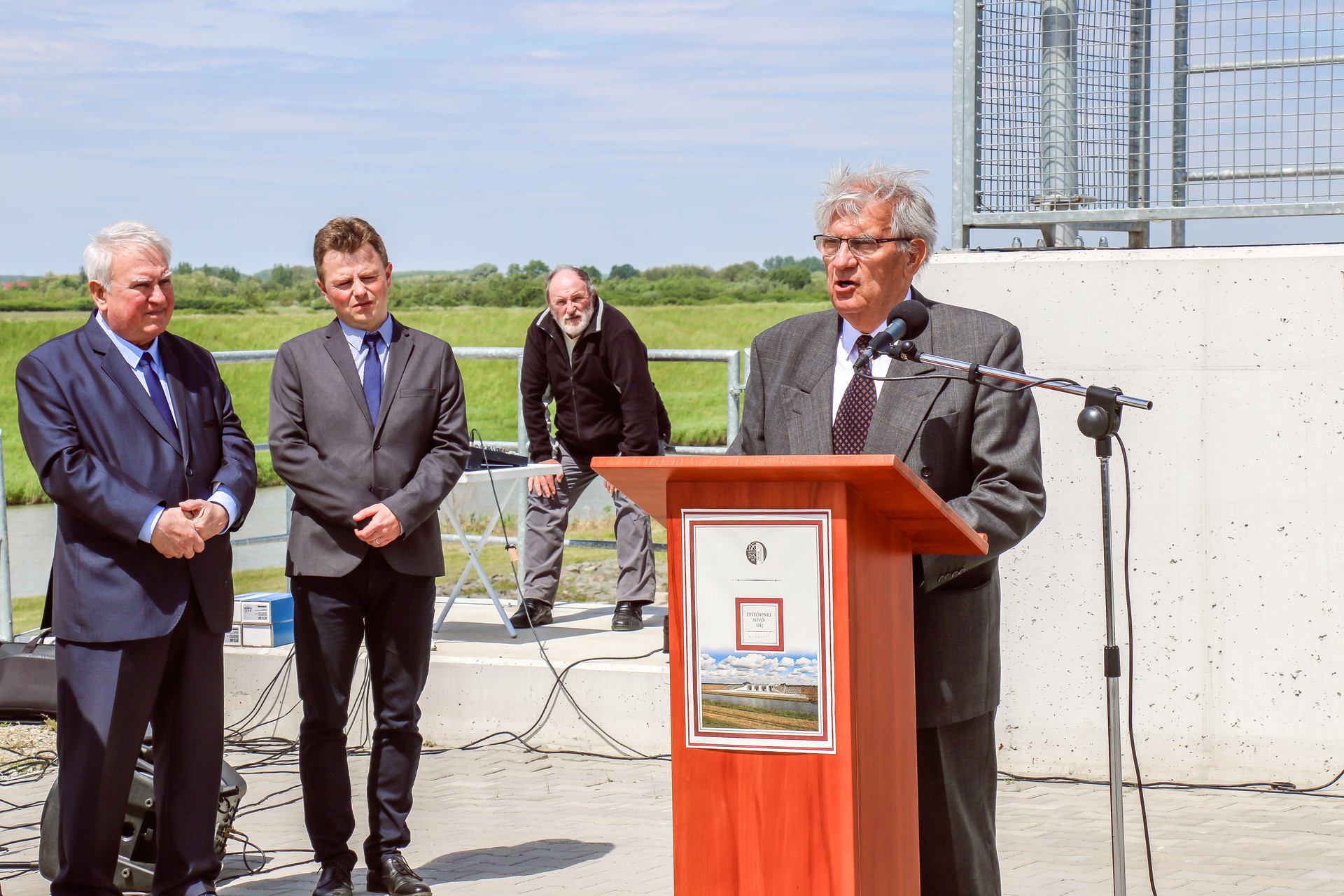 Dr. Kiss Jenő, a Magyar Mérnöki Kamara Építési Tagozatának elnöke kifejtette, kivitelező tevékenysége során több mint 15 évet dolgozott a vízügy területén, így kellemes emlékeket ébreszt benne az ünnepség. Kiemelte, a projekten dolgozók mindegyike remek munkát végzett.