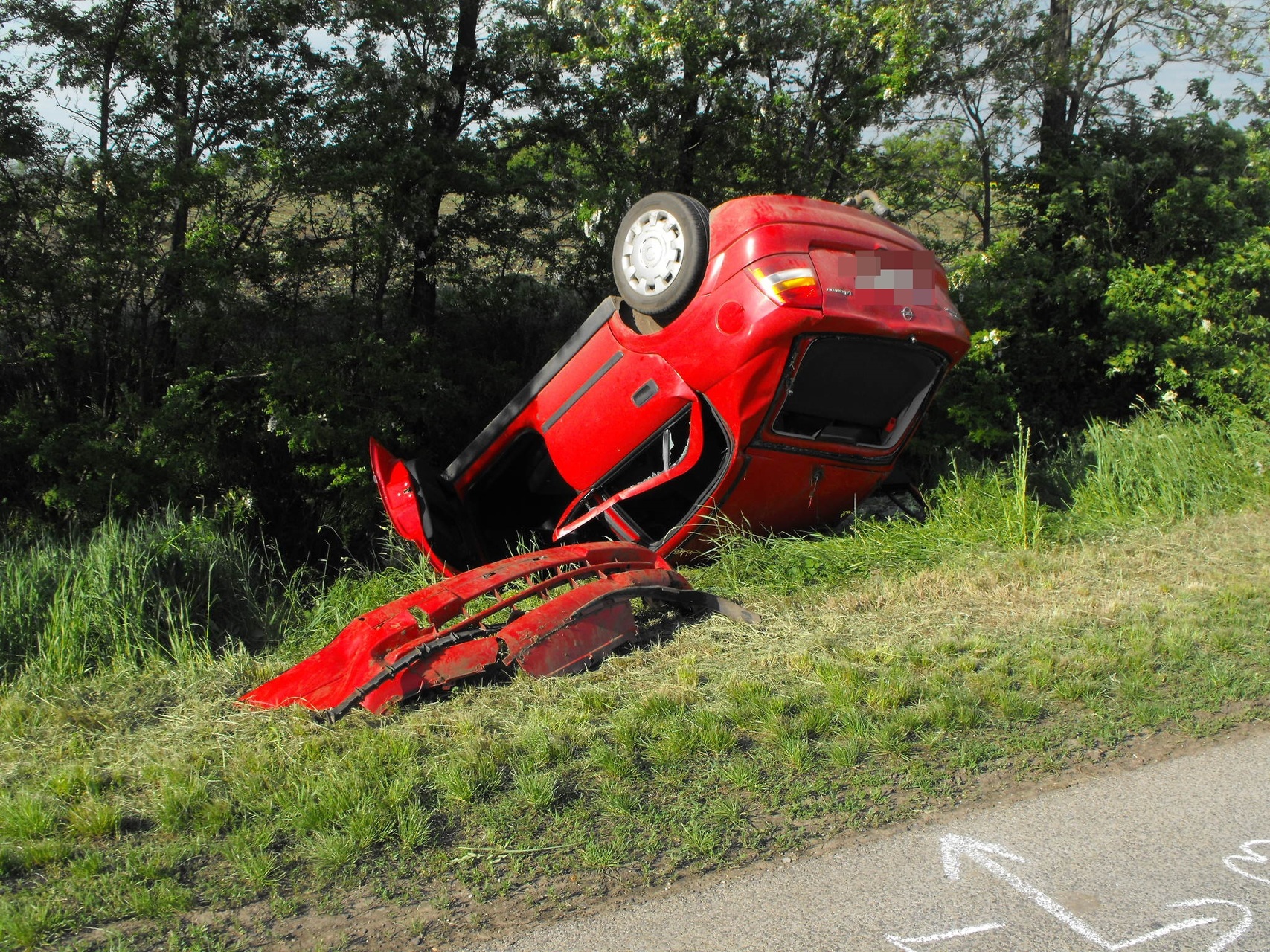 Csanádapáca külterületén 15 óra 45 perc körül egy személygépkocsi letért az útról, és árokba borult. A balesetben a kocsi vezetője megsérült, a mentők myolc napon túl gyógyuló csonttöréssel vitték kórházba.