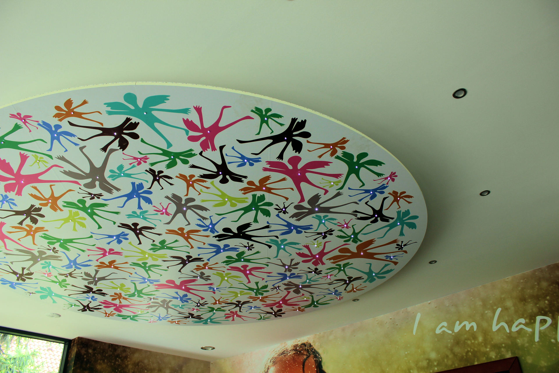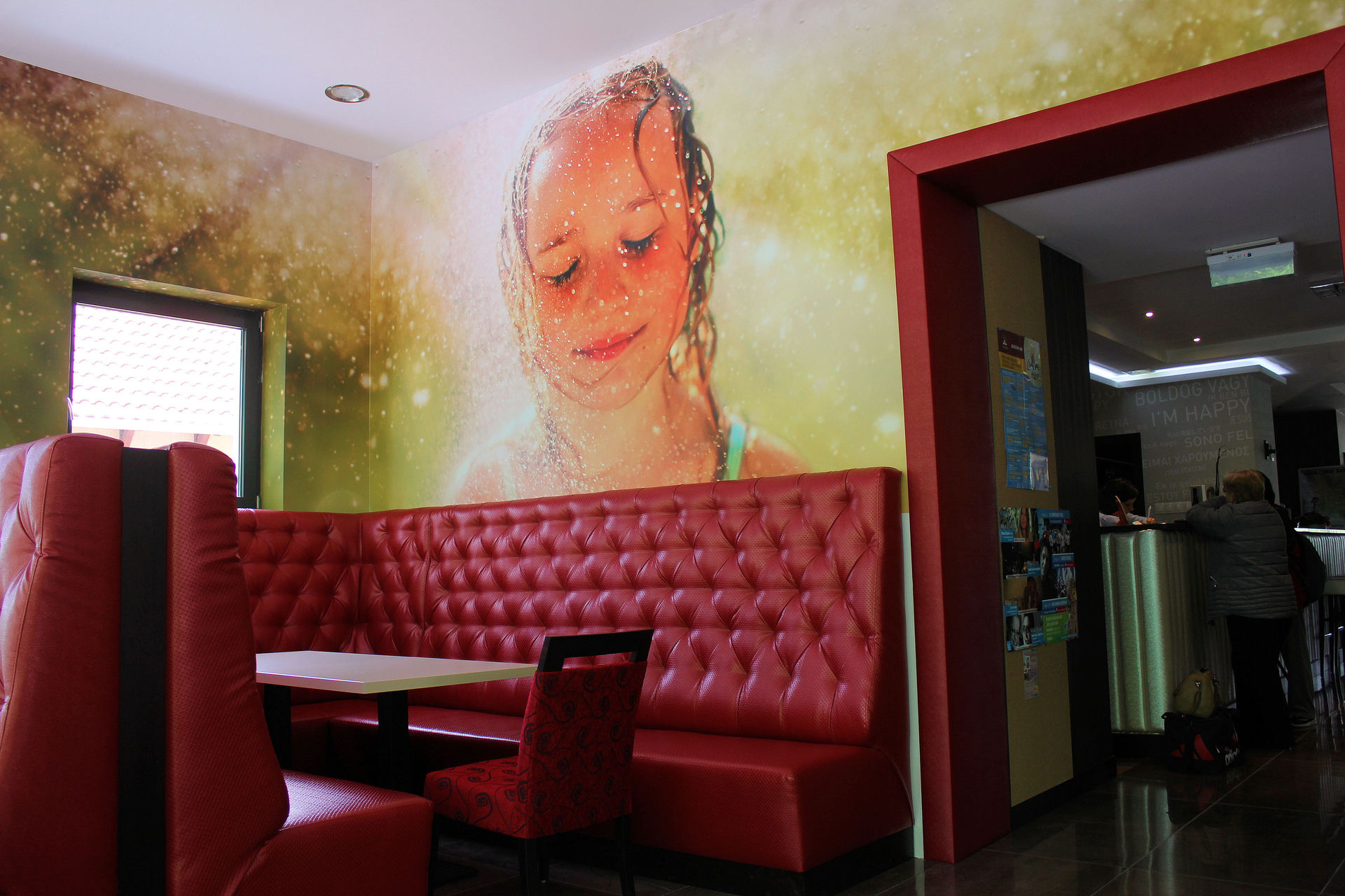 – A mennyezeti figurák mindegyike egy angyalt szimbolizál, melyeknek apró fény világít a szívük helyén. Ahogy mi, emberek, ők is különböző színűek és méretűek. A kislány az étkező fölött szintén egy angyal szimbólum, és nagyon sok hasonló, rejtett üzenet van még az enteriőrökben. Az egészet játékosan valósítottuk meg, van olyan felirat, amely a bejárattal szemben elhelyezkedő tükörben látszik igazán jól, és még a mosdók sem hétköznapiak. Férfi mosdónkból például mindenki nevetve jön ki.
