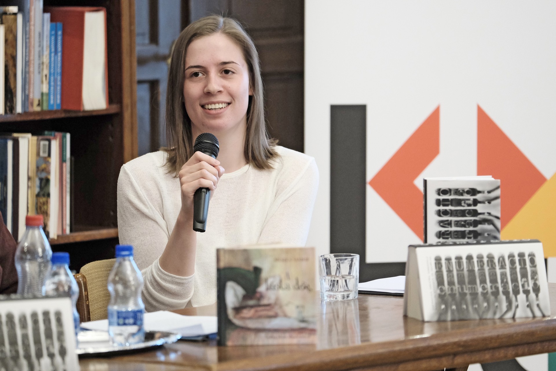 Farkas Wellmann Éva először Vöröskéry Dórát kérdezte arról, miben változott az élete és a munkája, amióta tagja a tehetséggondozónak. A fiatal író elmondta, elsősorban prózával foglalkozik, az elmúlt egy évben pedig mennyiségileg és minőségileg is sokkal jobban ír. Hozzátette, hatalmas segítség, hogy mindig van valaki, aki elolvassa és véleményezi a szövegeit, legyen ez mentor vagy pályakezdőtárs.