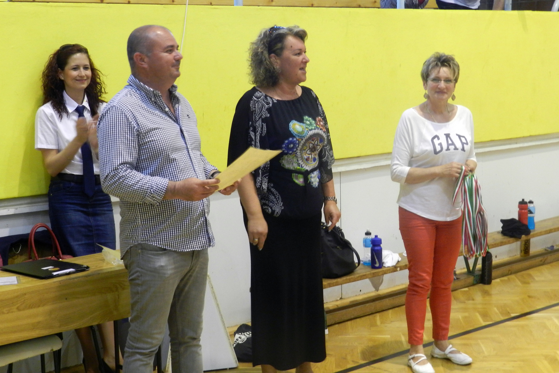 A lefújás után következett az ünneplés, majd az érmek átadása, amelyeket Fabulyáné Kovács Tímea, a Békés Megyei Kézilabda Szövetség elnöke, Kertes István, a Gyulasport NKft. ügyvezetője és Baktai Ferencné, a Gyulasport NKft. sportügyekért felelős koordinátora akasztotta a lányok és edzőjük nyakába.