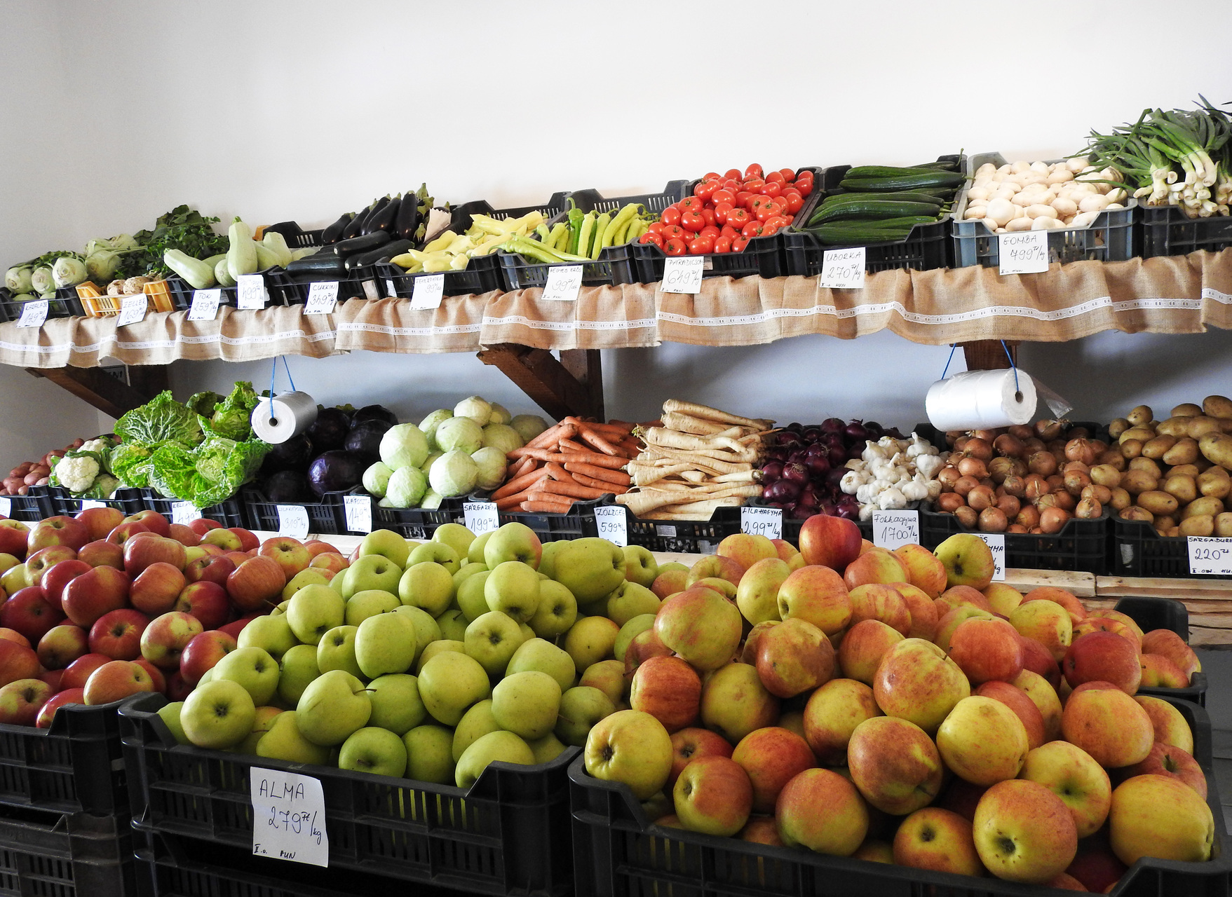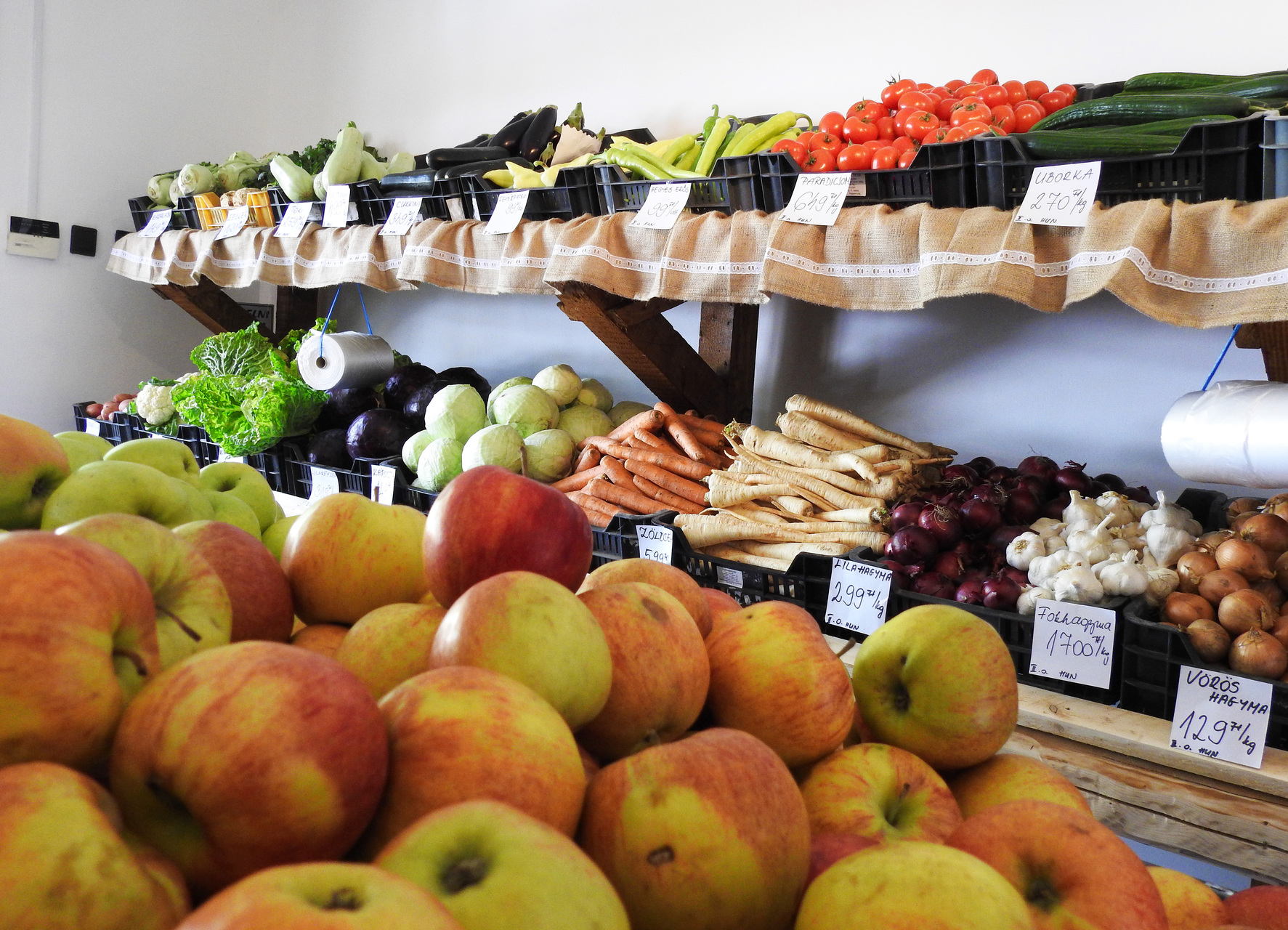 A városközpontban található boltba belépve az embernek az az érzése támad, hogy talán nincs is olyan zöldség vagy gyümölcs, amit ne lehetne megtalálni a szebbnél szebb áruktól roskadozó polcokon.