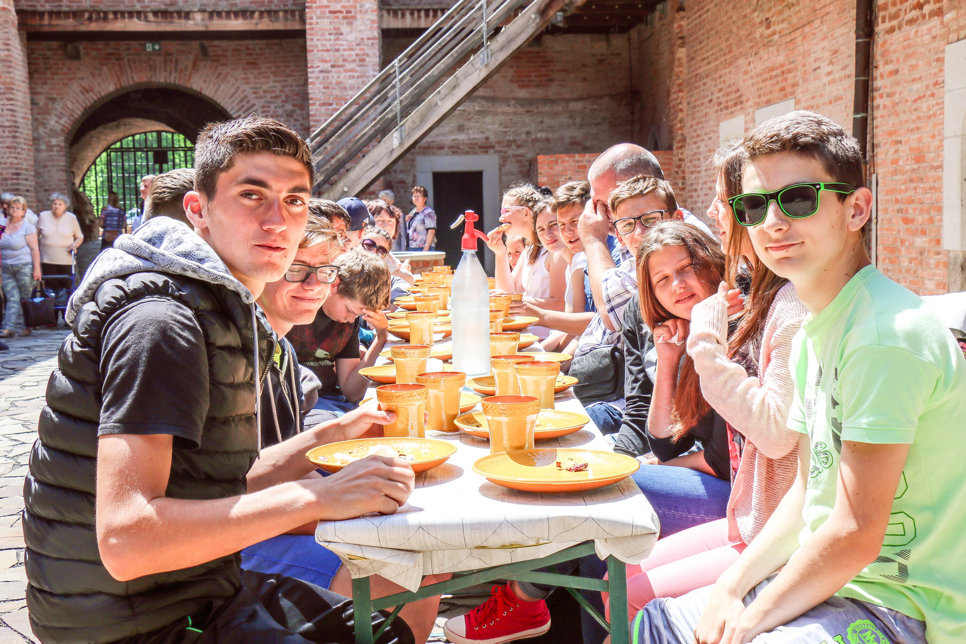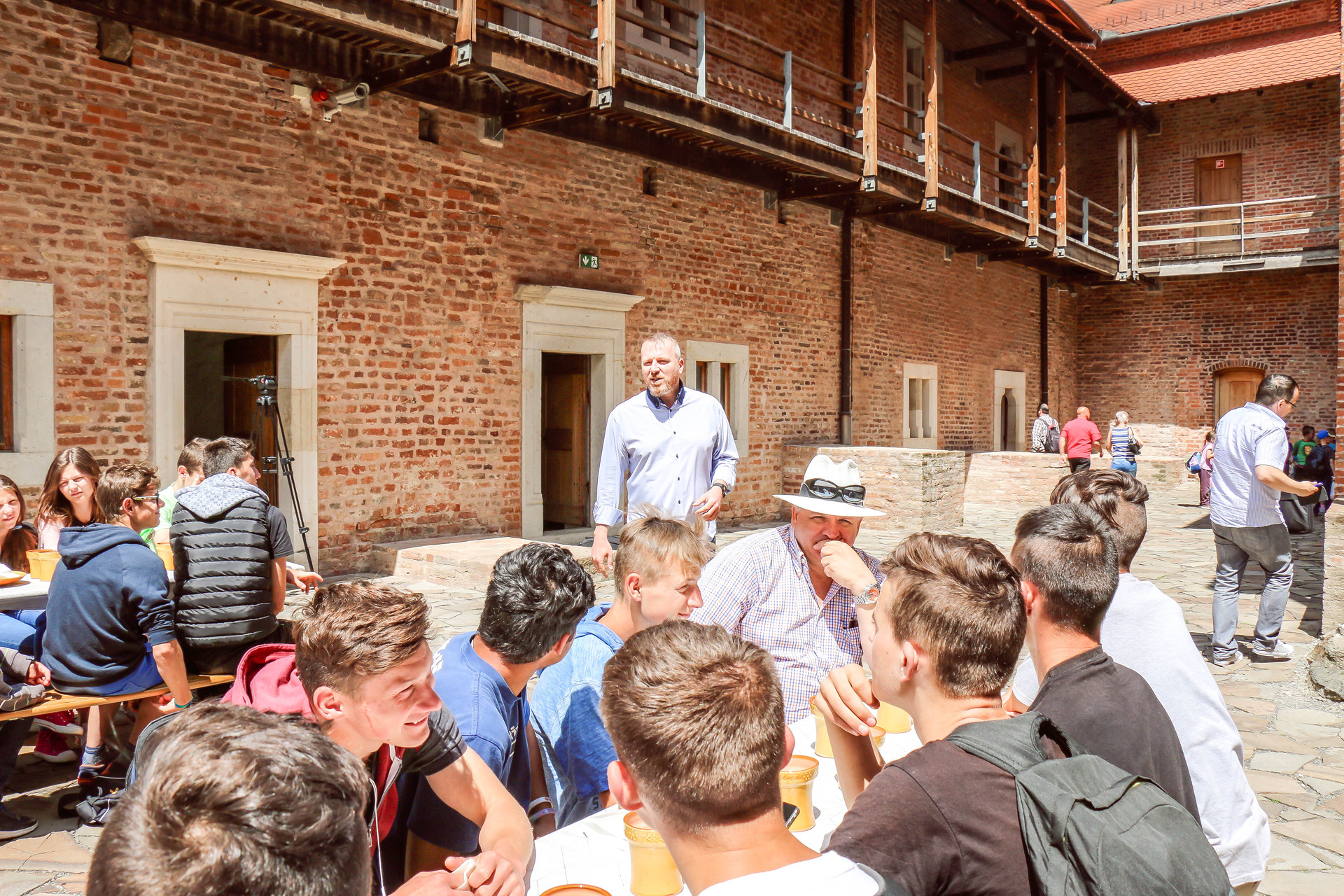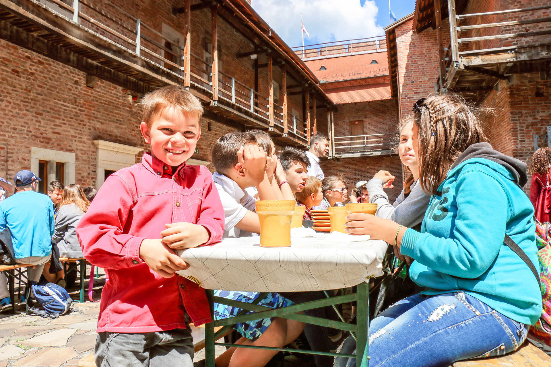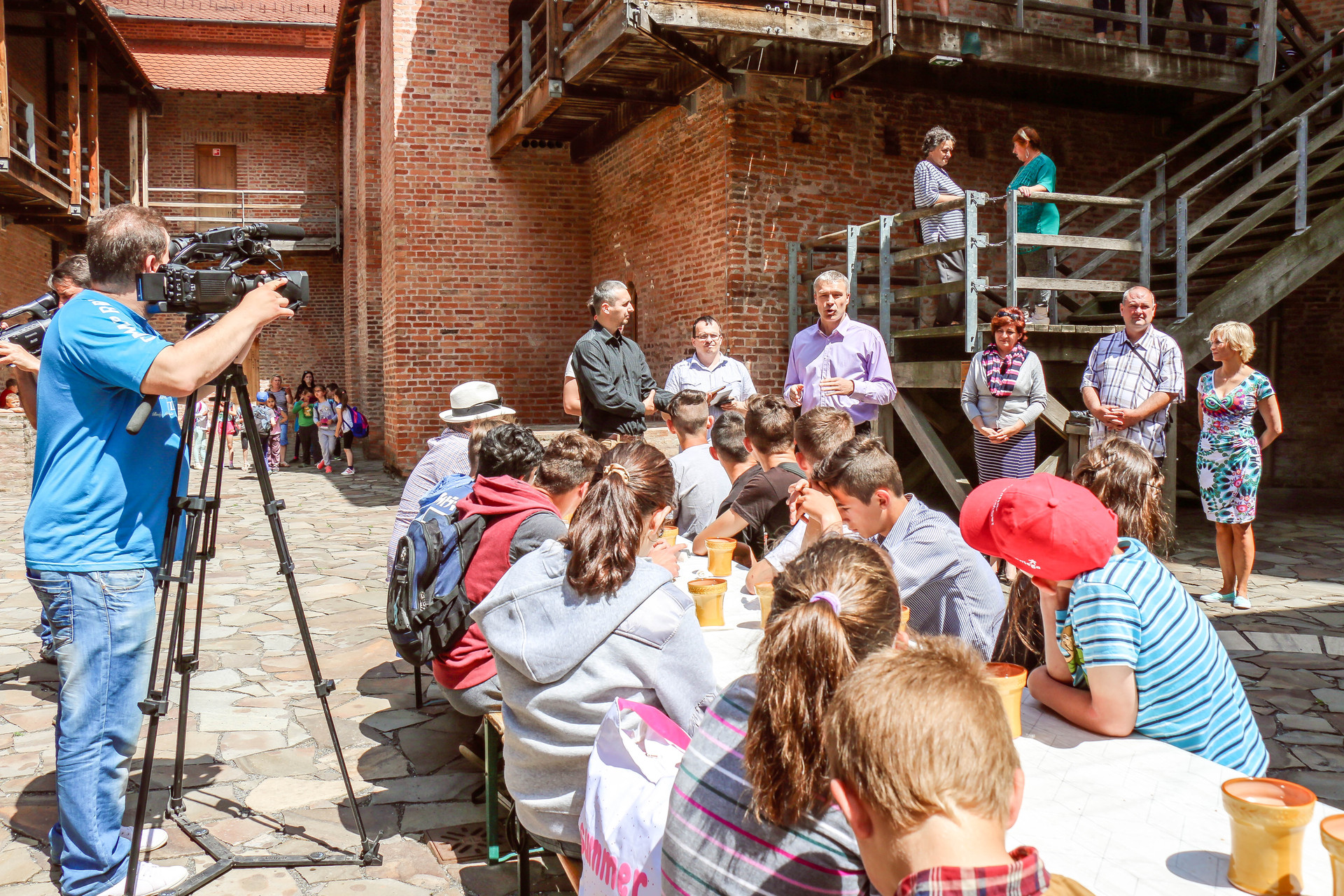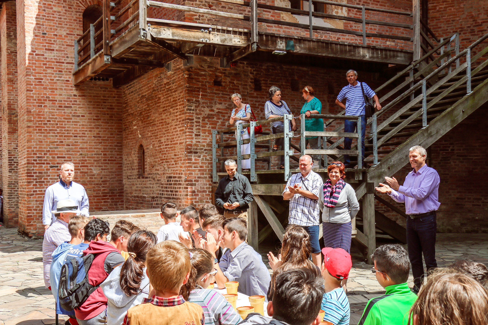 Több mint ötven gyermek érkezett május 26-án Nagyszalontáról, akik először az Almásy-kastély tárlatait járhatták végig, majd a várban nyerhettek bepillantást a középkori hangulatba. A kirándulóknak a várudvaron terítettek meg az ebédhez, amely után Dombi Ildikó, az Erkel Ferenc Nonprofit Kft. ügyvezetője, valamint Kun Miklós, a Gyulai Várfürdő ügyvezetője köszöntötte őket.