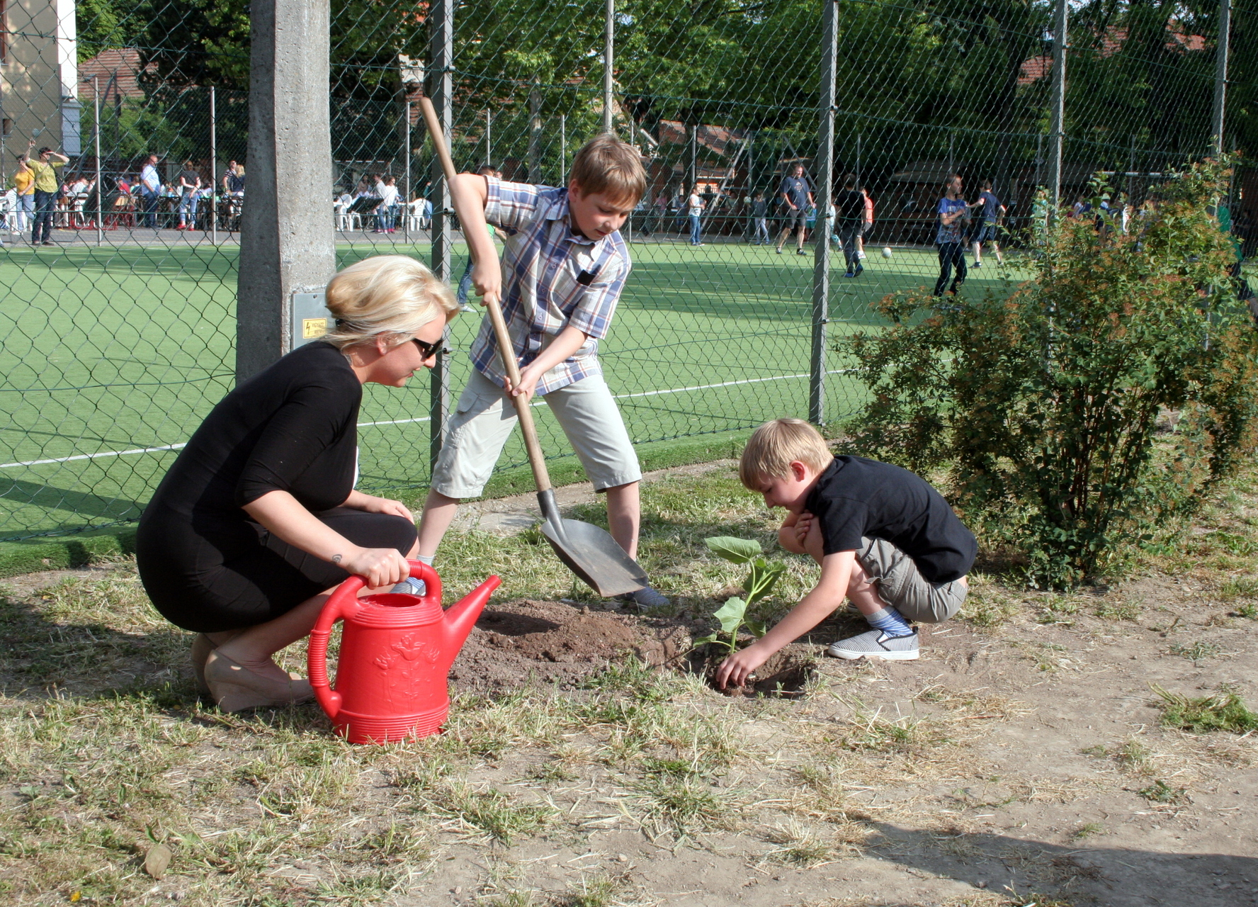 Kertes Gabriella a tanintézmény rendelkezésére álló terület parkosítását tartja elsődleges feladatának. Mind mondta, az iskolásokkal közösen kell gondoskodnia majd arról, hogy a hat facsemete úgy nőjön fel, mint egy gyermek. Kamrás Ria aláhúzta: az implomosoknak meg kell tanulniuk, hogy a liget fái rendszeres törődést igényelnek. Dombóvári Vanda arra tért ki, hogy a környezettudatosság jegyében még a mínusz 20 fokos téli hidegben is biciklivel közlekedett Budapesten, és a mostani felkérést is örömmel fogadta el.