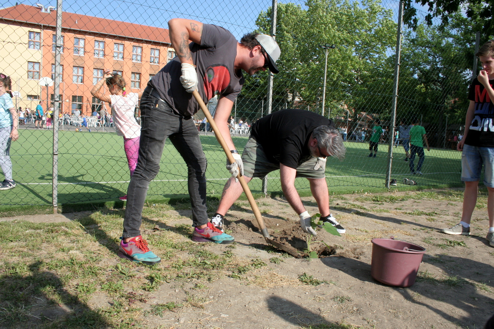 Ezt követően Szabó Eszter énekes, Kara Misa basszusgitáros (Magna Cum Laude), Szabó Tibor gitáros, zeneszerző (Magna Cum Laude), Dombóvári Vanda kommunikációs vezető, Hevesi Imre énekes, zenetanár, Kónya István alpolgármester és Hevesi Tamás zenész gyermekeik kíséretében elültették a hat oxyfát.