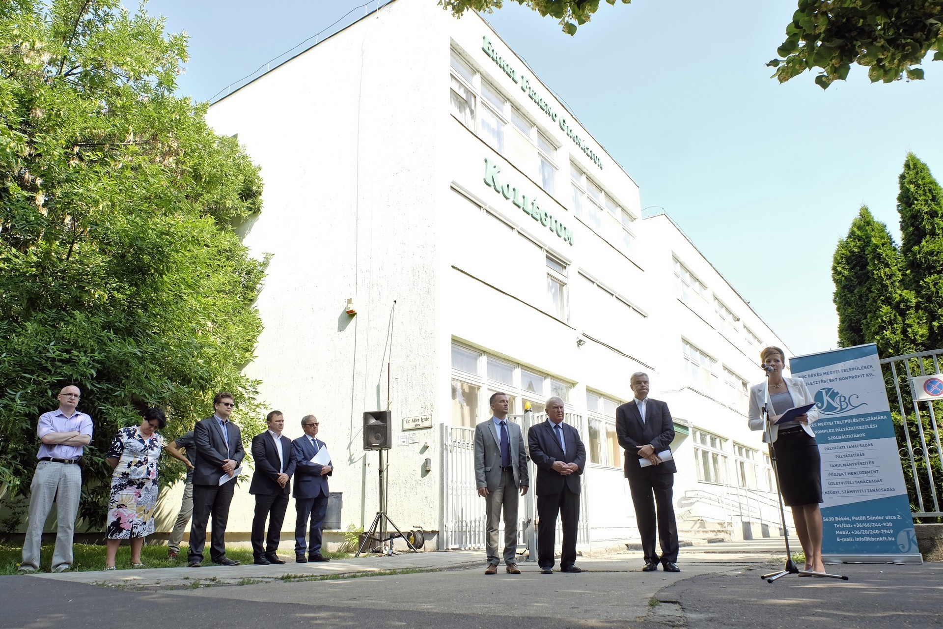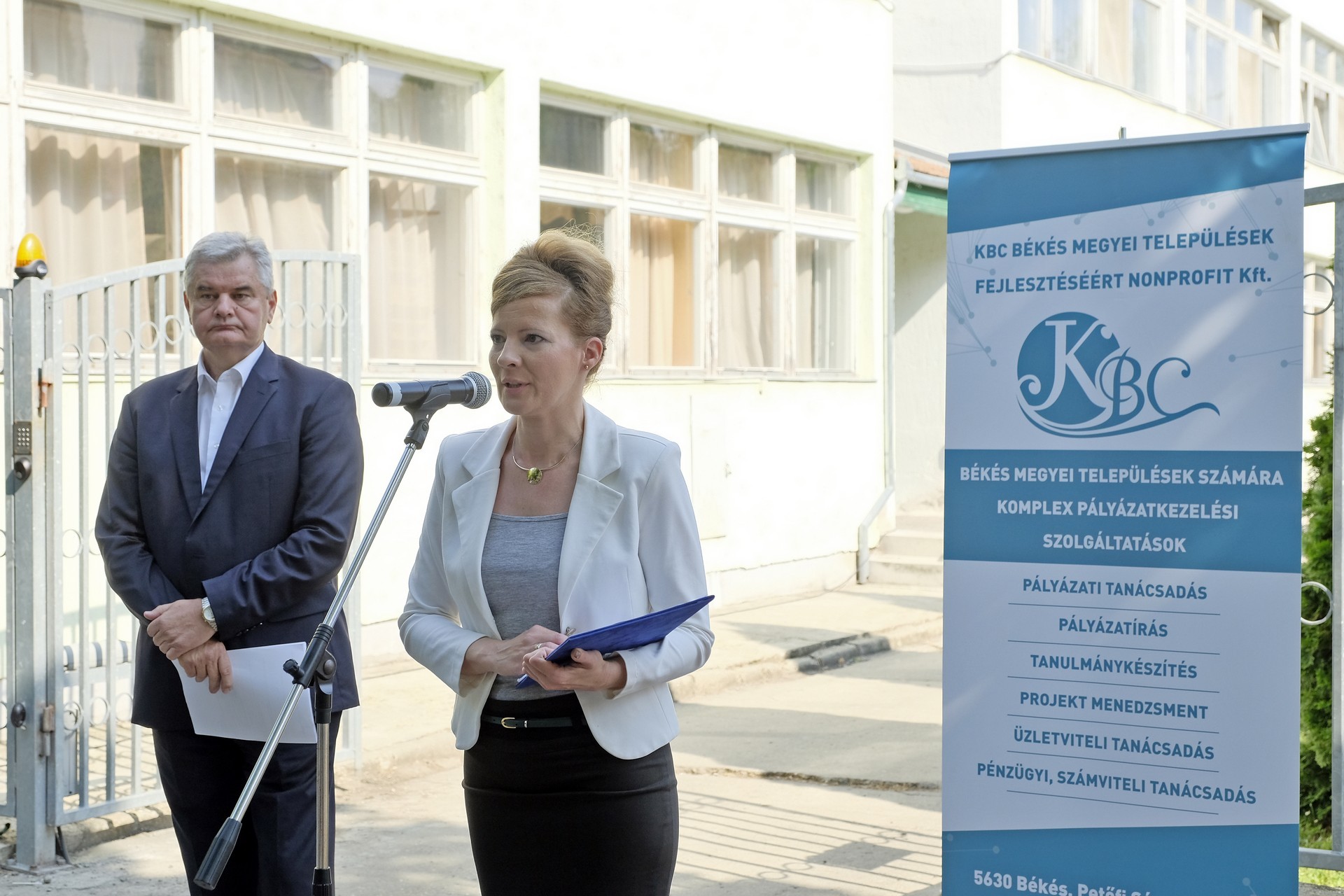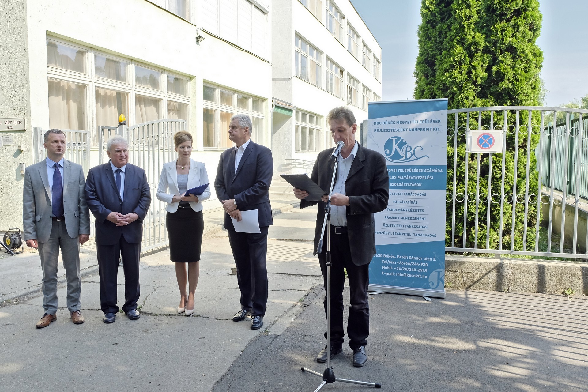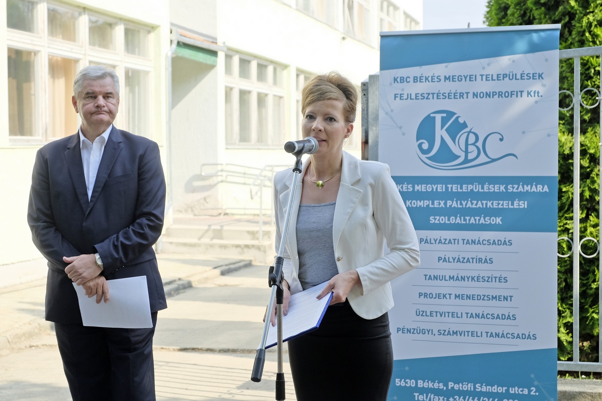 – A Gyulai Tankerületi Központ iskolafejlesztési programjának első állomásán vagyunk – kezdte köszöntőjét Teleki-Szávai Krisztina. – A pályázatot az elmúlt esztendő végén nyújtotta be a tankerület és az intézményfenntartó központ Gyula Város Önkormányzatának támogatásával, valamint a KBC Békés Megyei Települések Fejlesztéséért Nonprofit Kft. közreműködésével. Az elnyert összeg, amelyből a beruházás megvalósulhat, 135 millió forint.