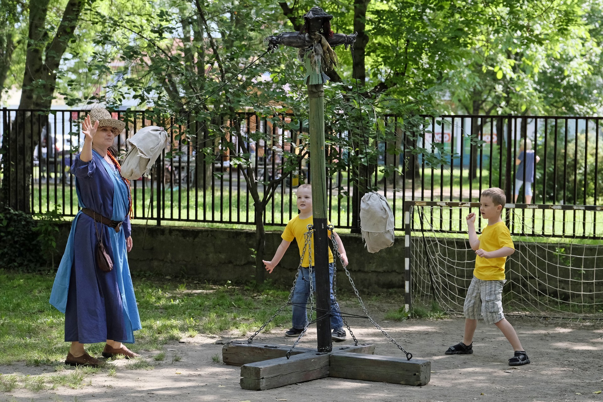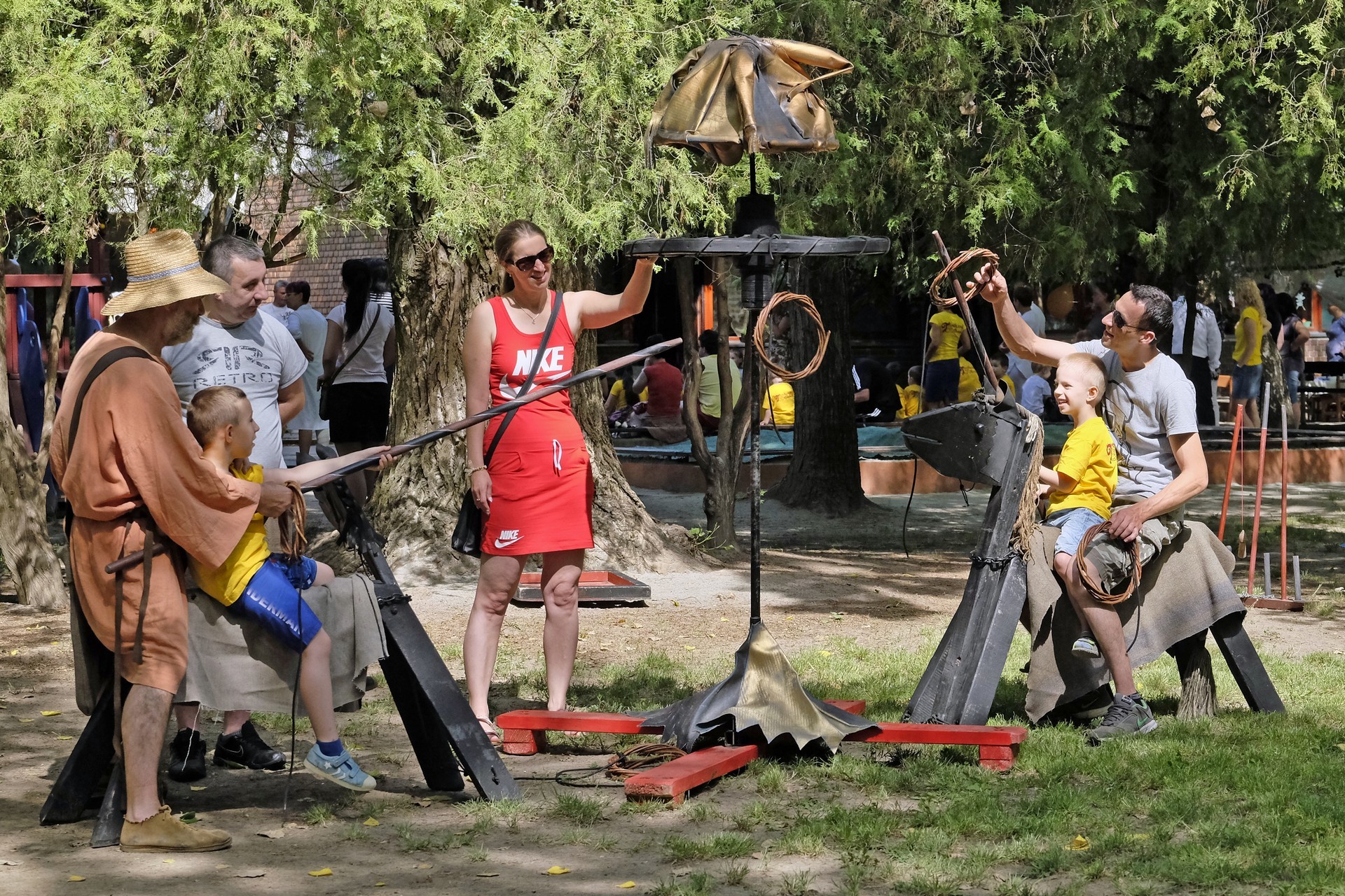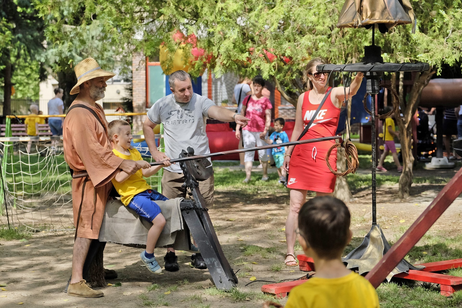 Megkérdeztük a szekszárdi vendégek vezetőjét is, mivel készültek a gyermekeknek a különleges napra. König Zsolt, a Toma és csapata formáció vezetője elárulta: középkori játékokkal érkeztek, melyek között célba dobás, gólyalábas ügyességi játék és madárijesztő-bokszolás is szerepelt.