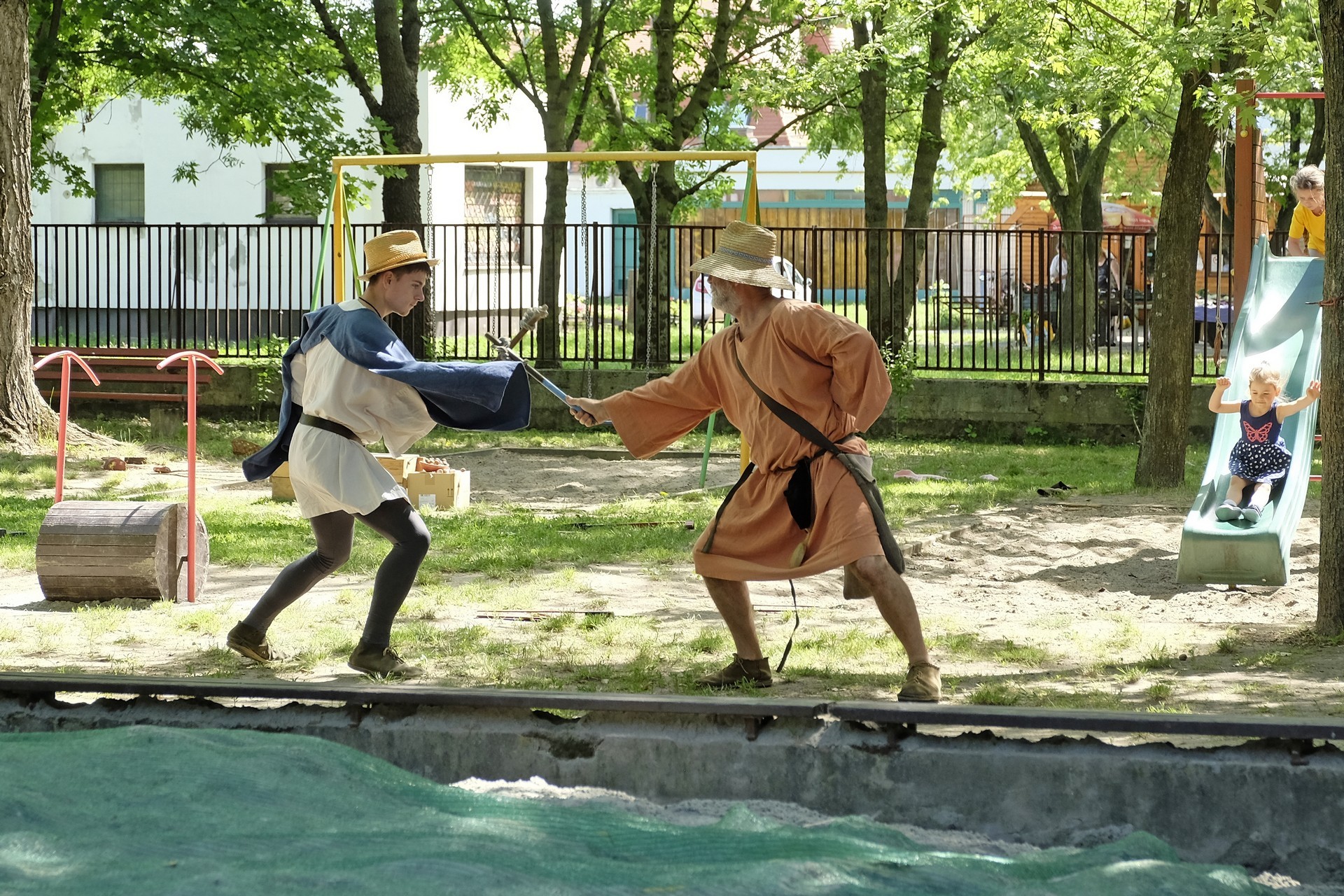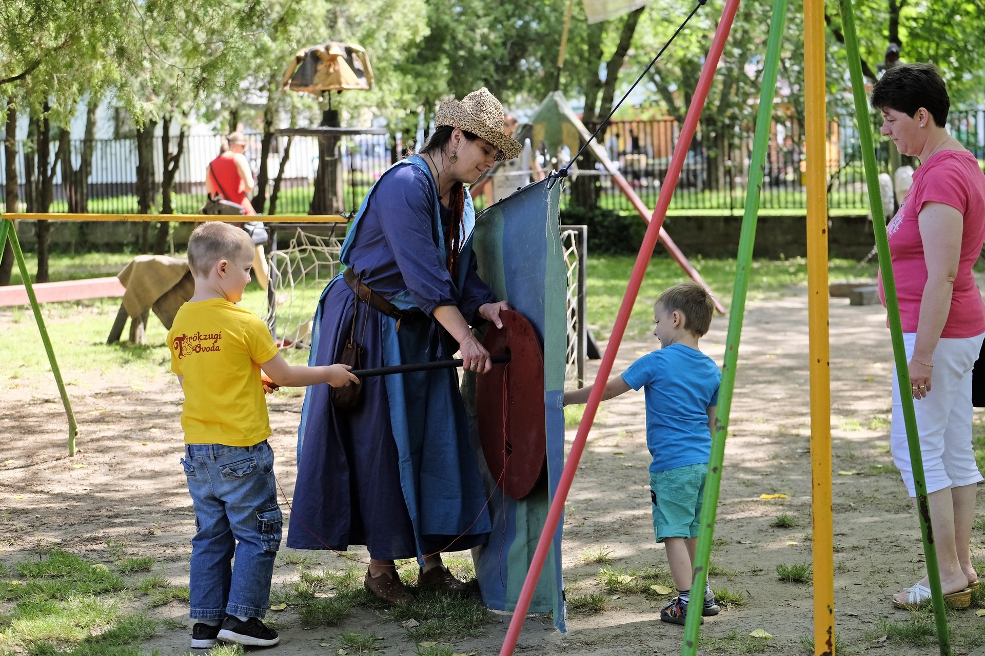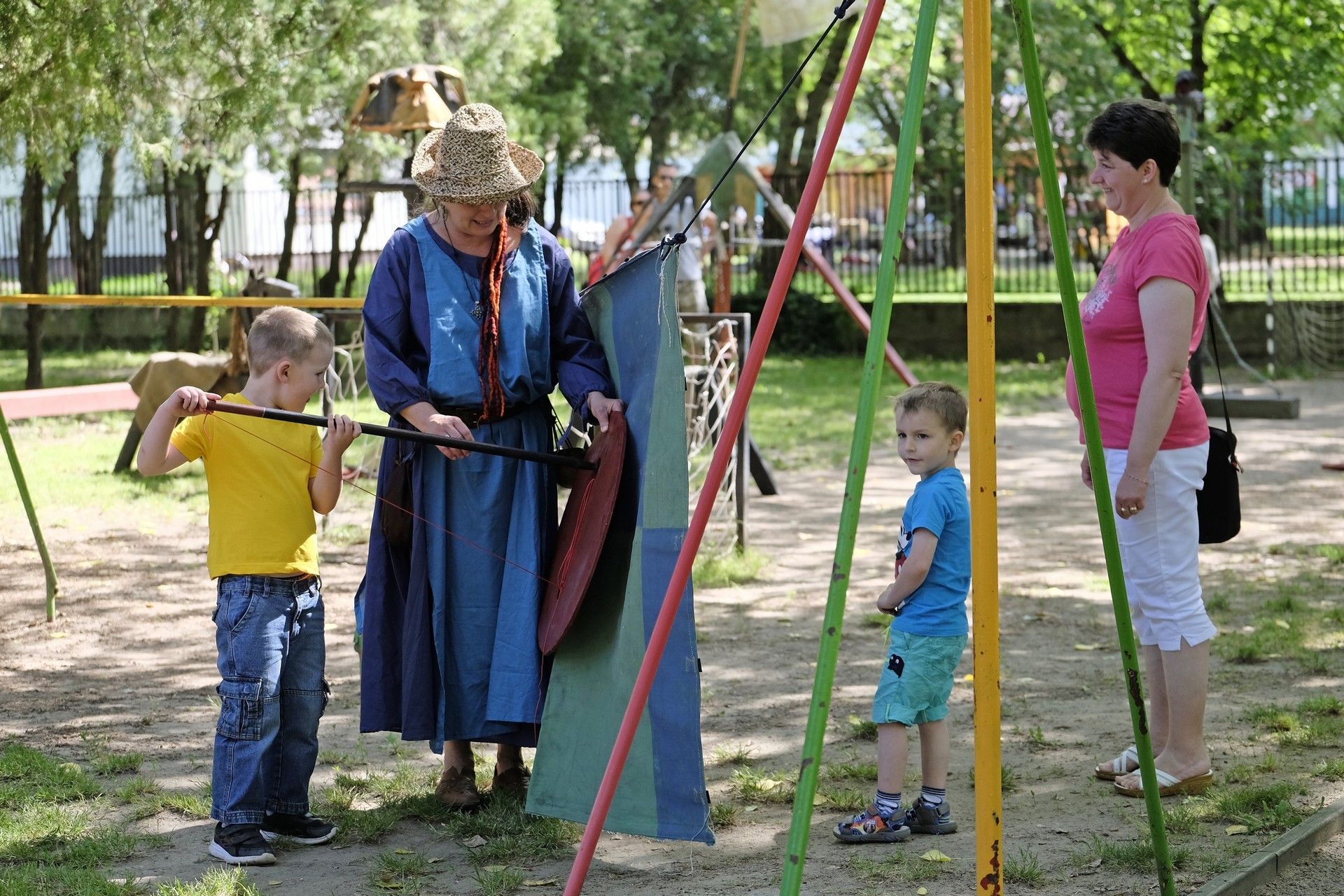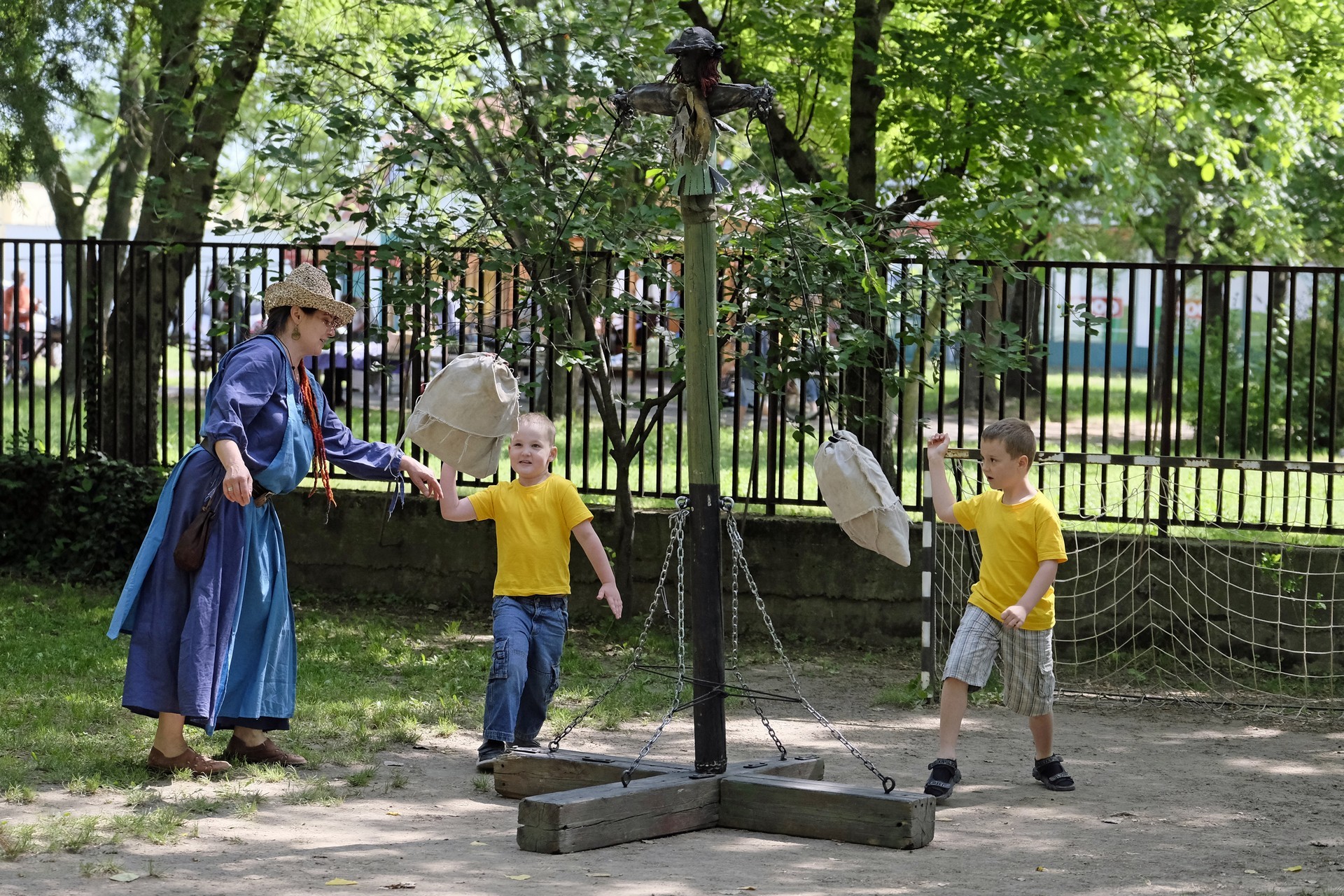 Megkérdeztük a szekszárdi vendégek vezetőjét is, mivel készültek a gyermekeknek a különleges napra. König Zsolt, a Toma és csapata formáció vezetője elárulta: középkori játékokkal érkeztek, melyek között célba dobás, gólyalábas ügyességi játék és madárijesztő-bokszolás is szerepelt.