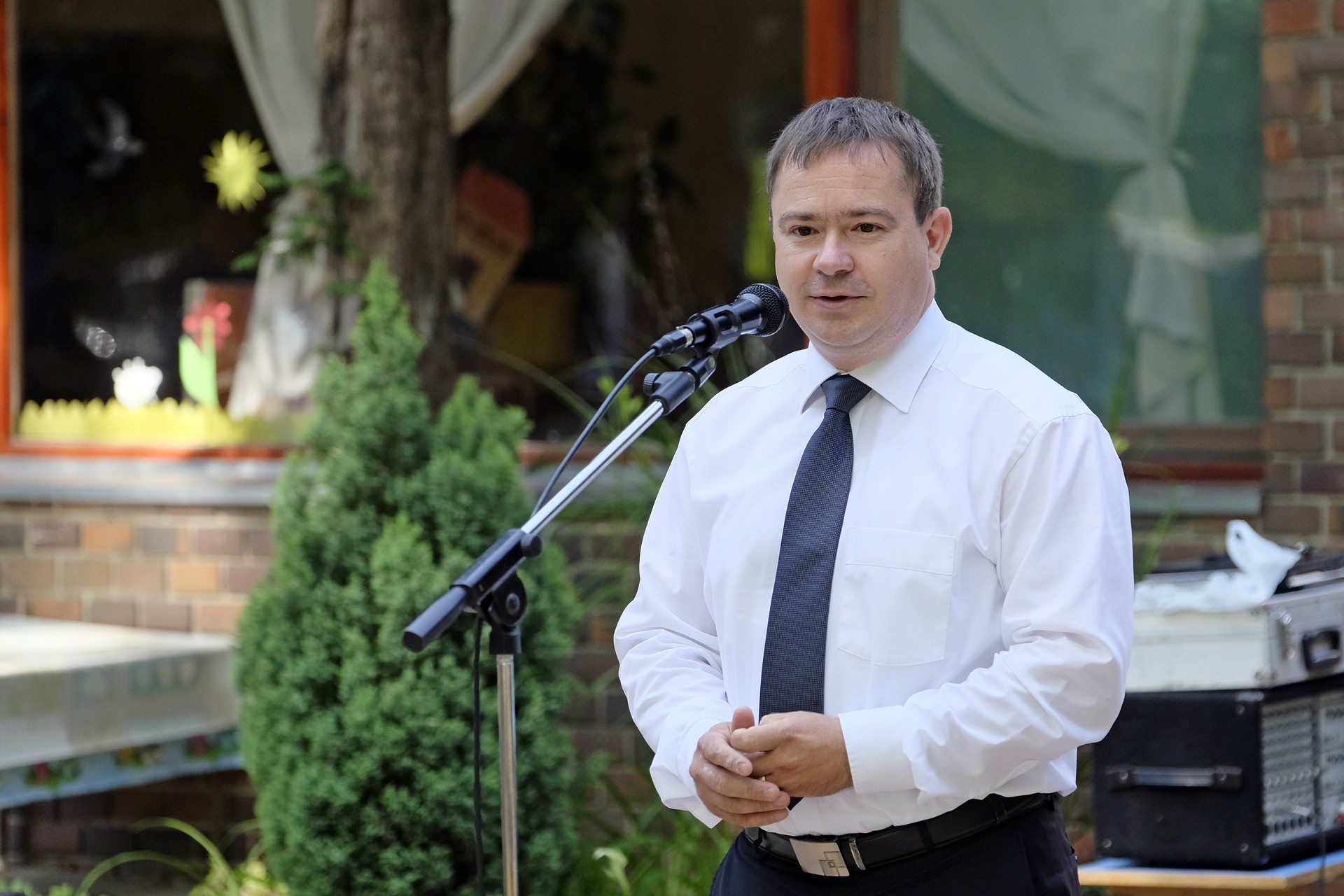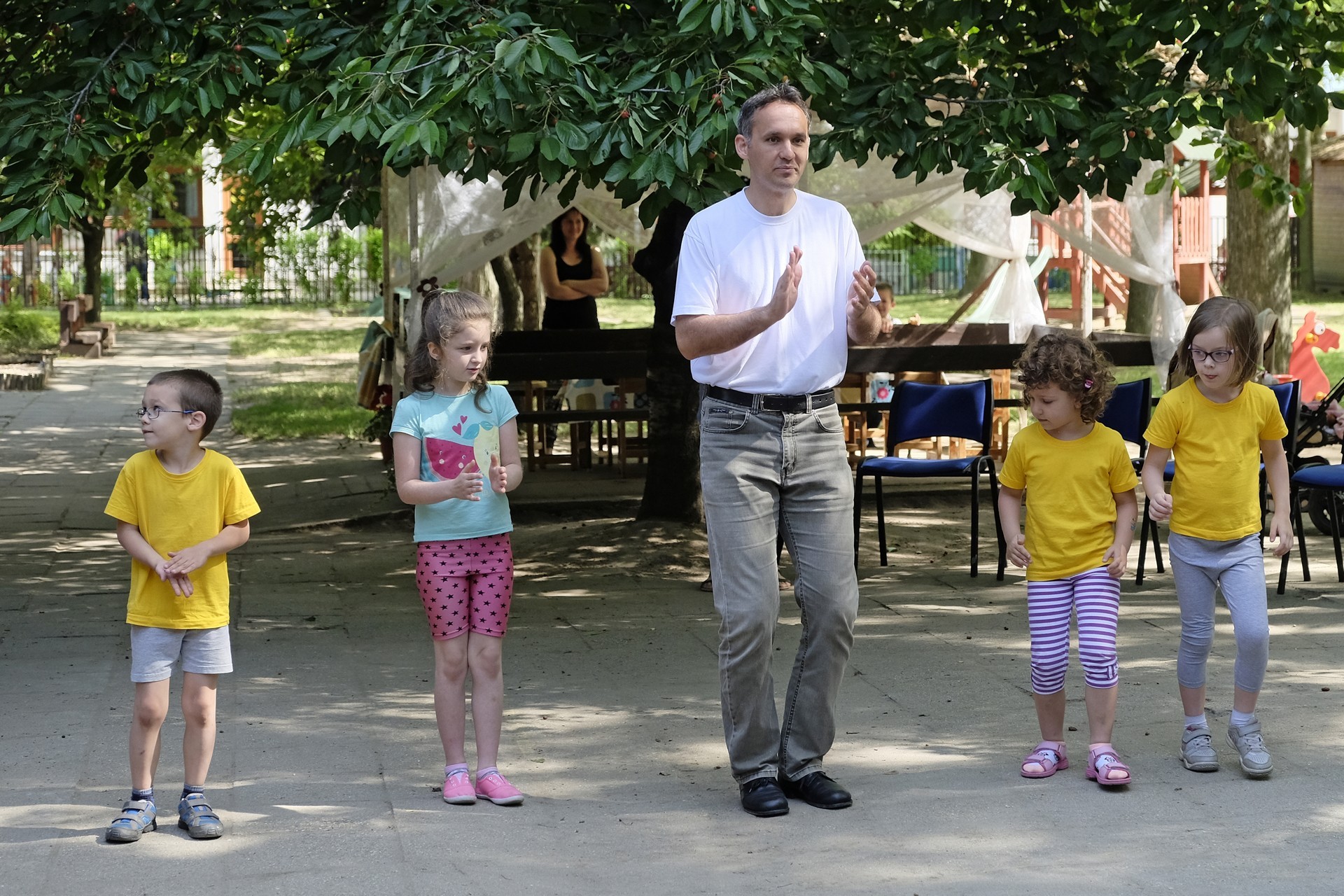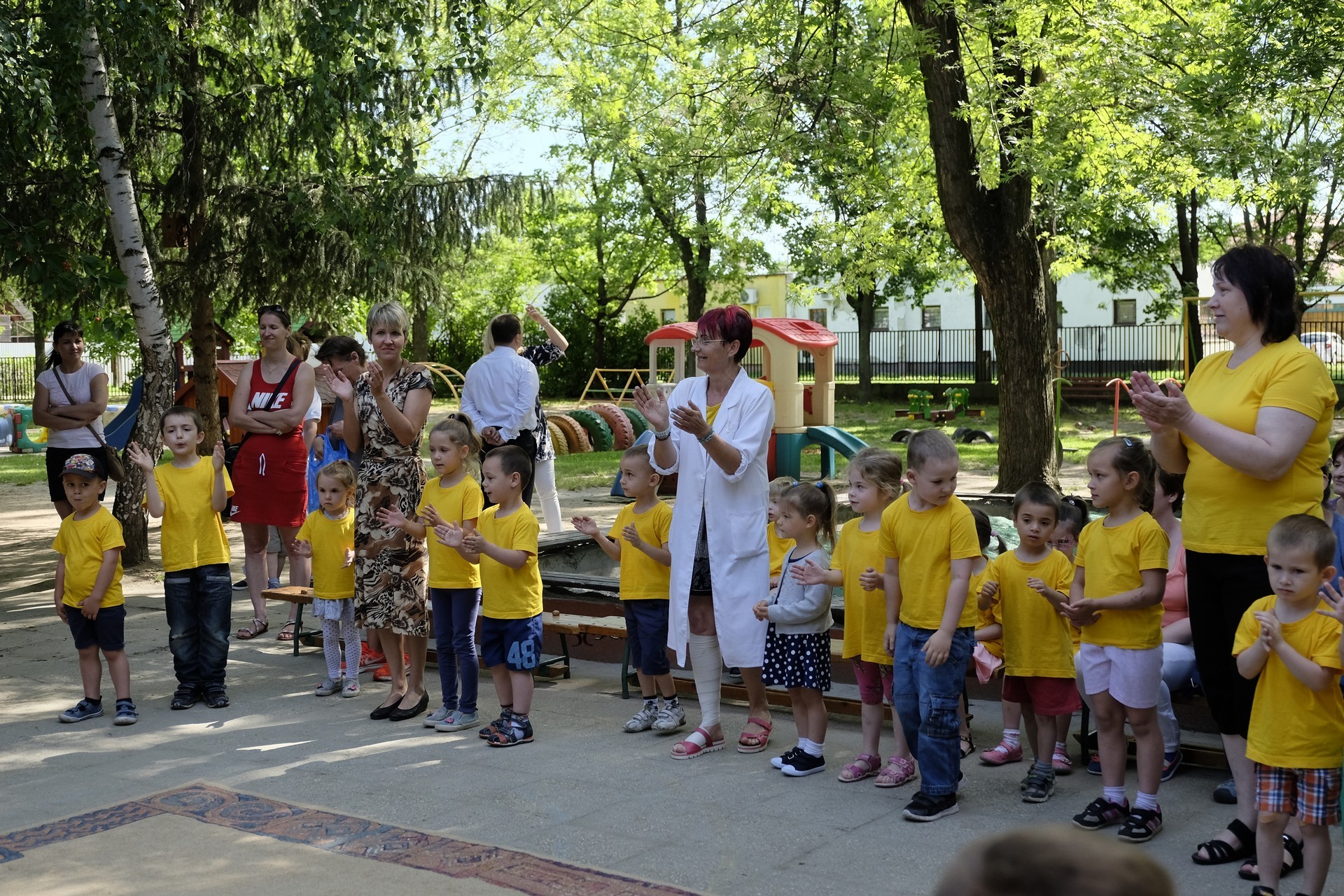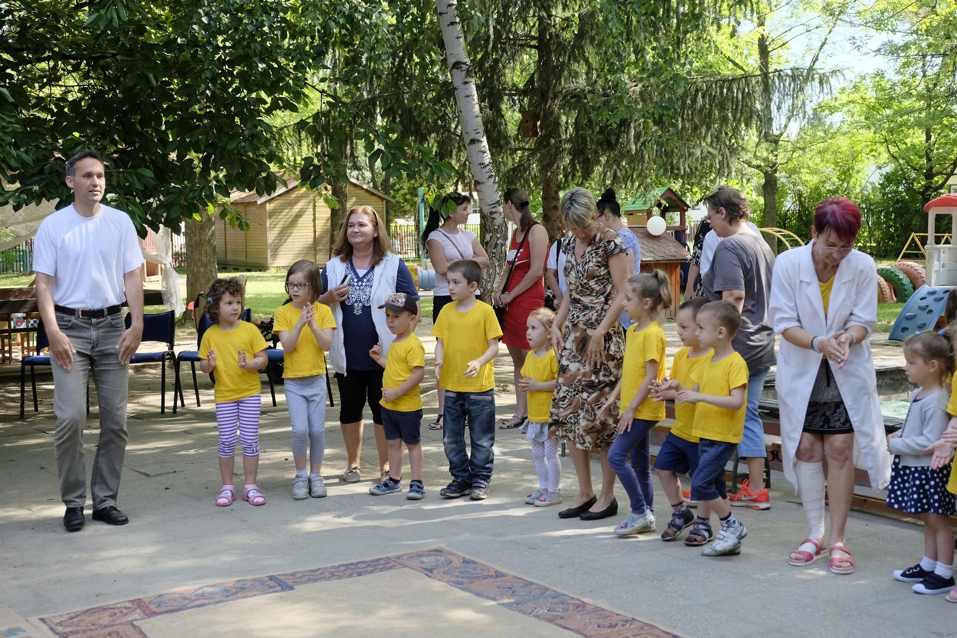 Kónya István alpolgármester is üdvözölte a kicsiket és nagyokat. Köszöntője mellé jó hírekkel is szolgált: az óvoda udvarán a következő évtől új kézilabda- és futballpályán vezethetik le fölösleges energiáikat a lurkók.