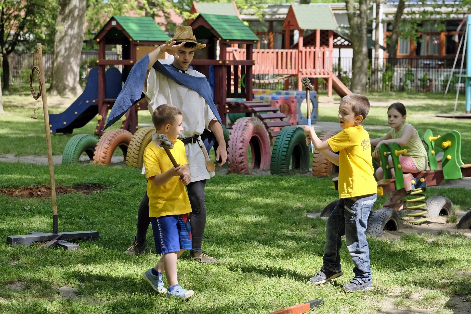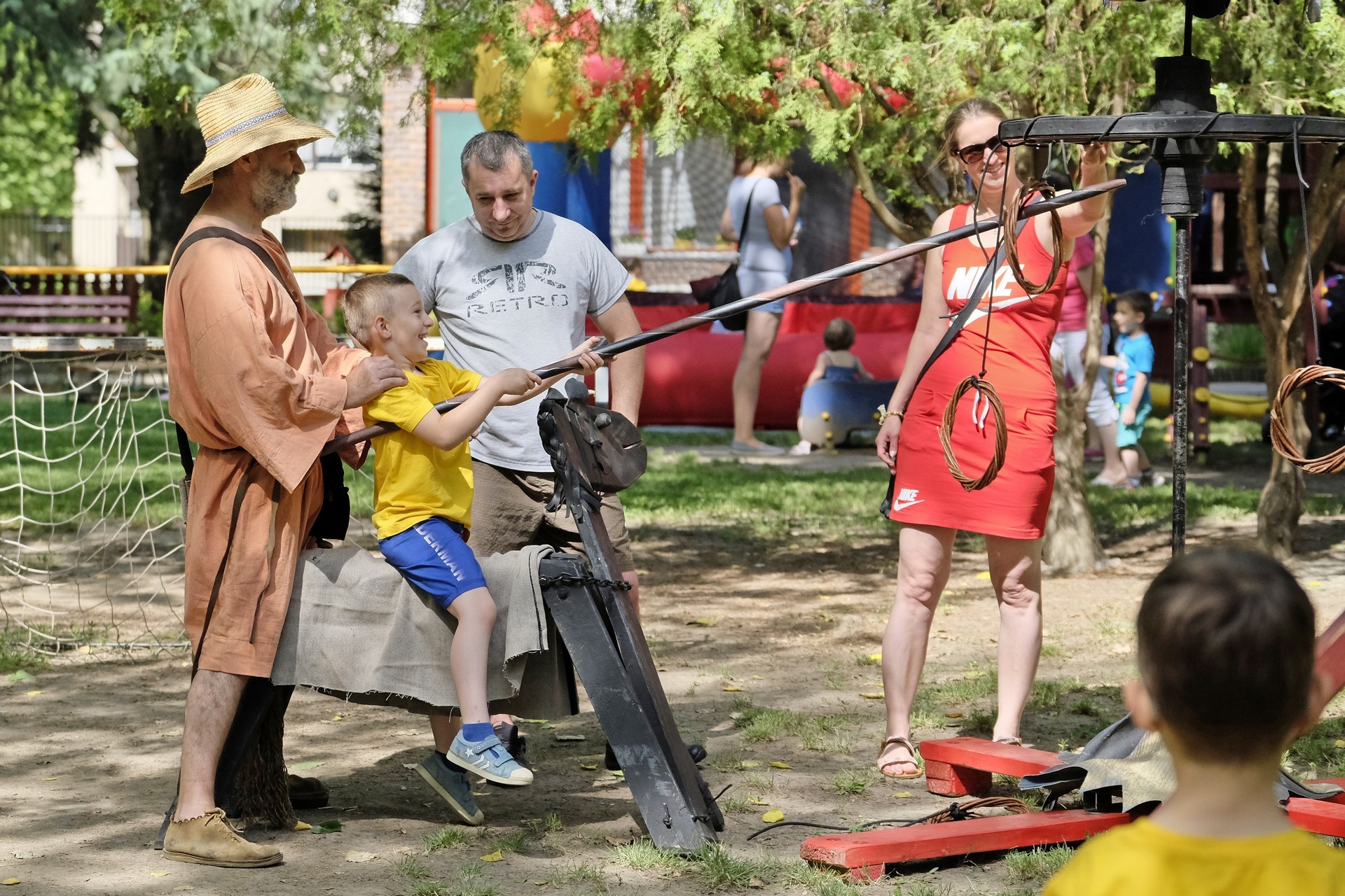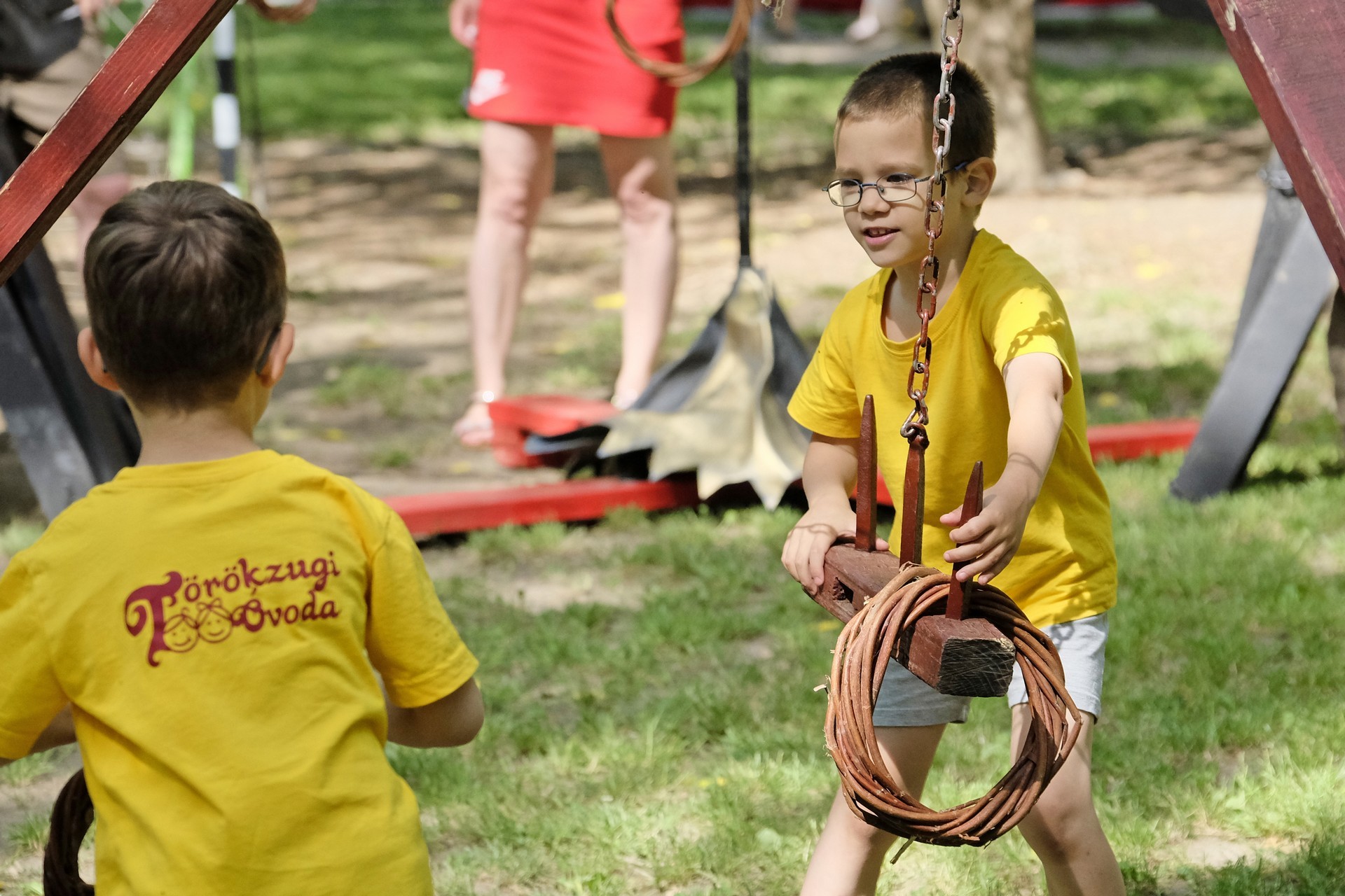 A gyerekek középkori játékokat is kipróbálhattak az óvoda udvarán