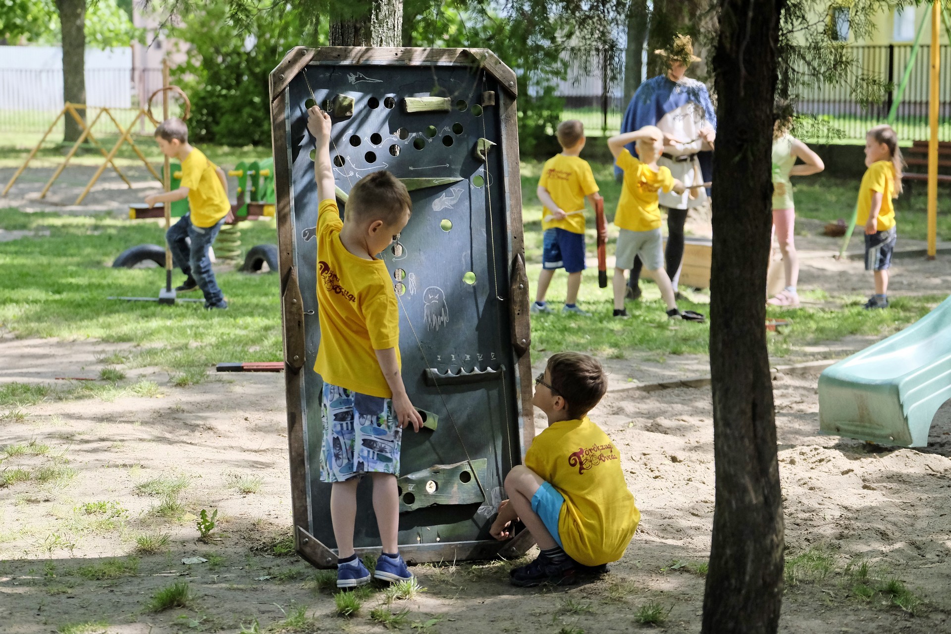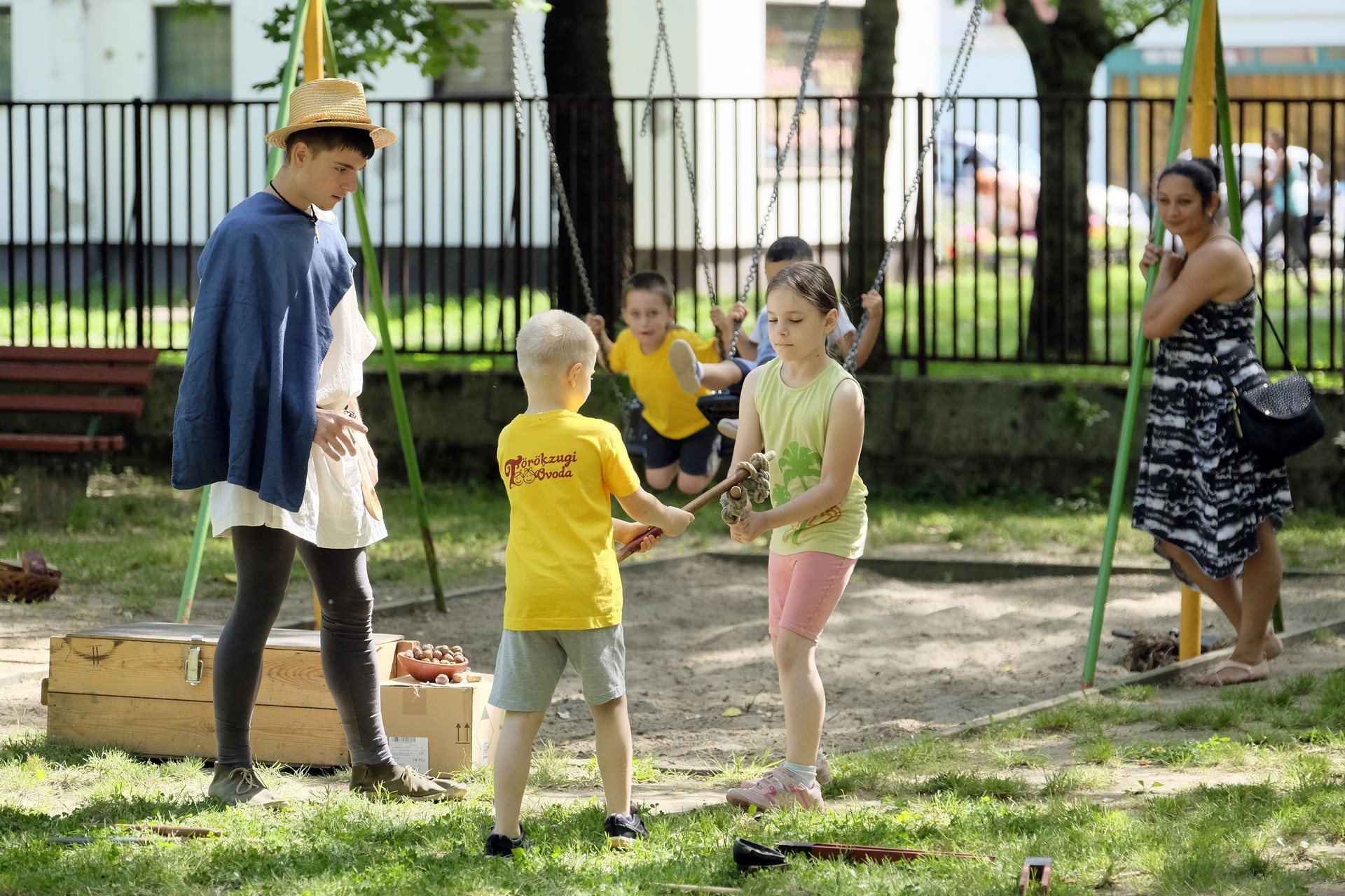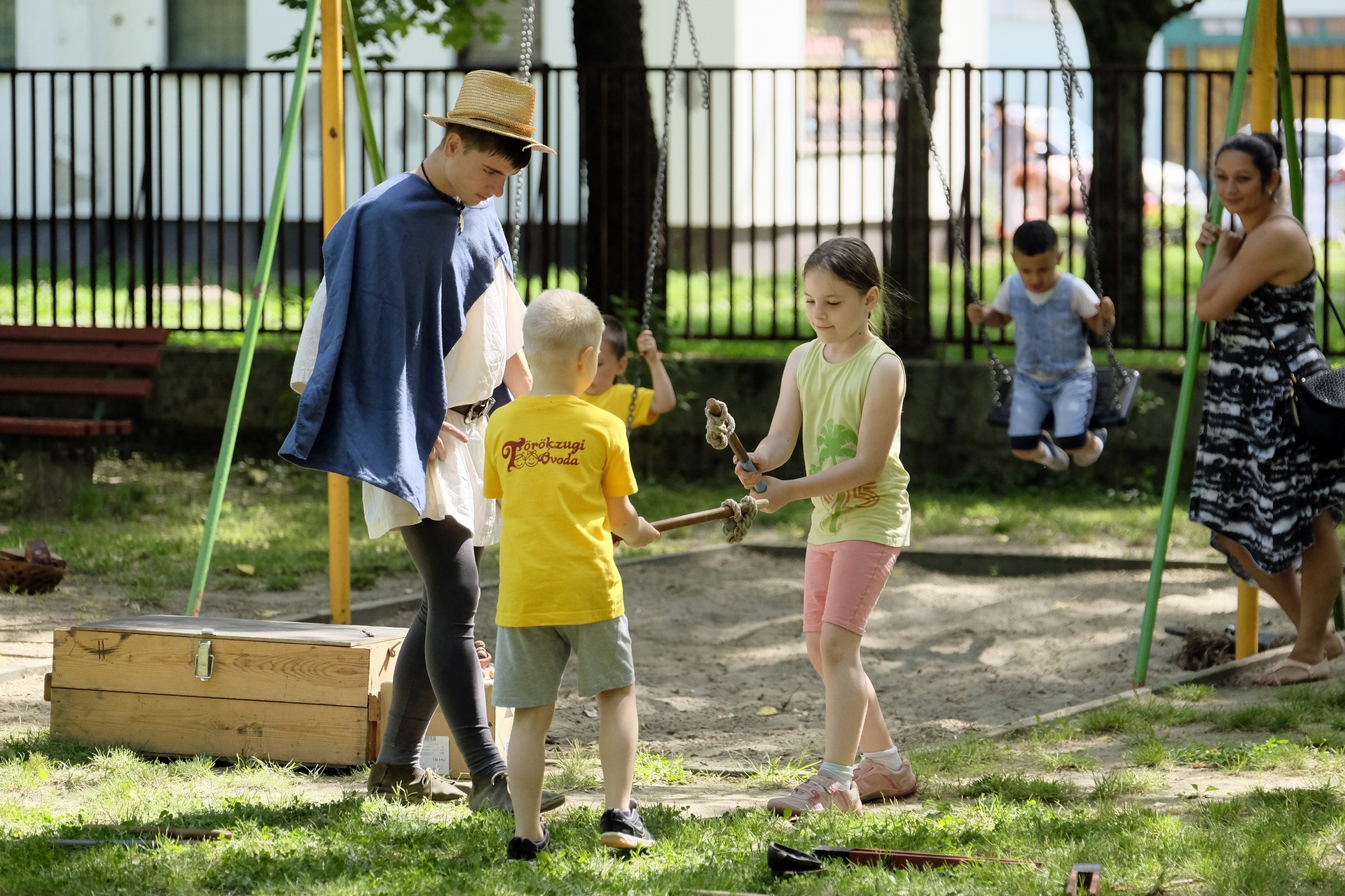 A gyerekek középkori játékokat is kipróbálhattak az óvoda udvarán