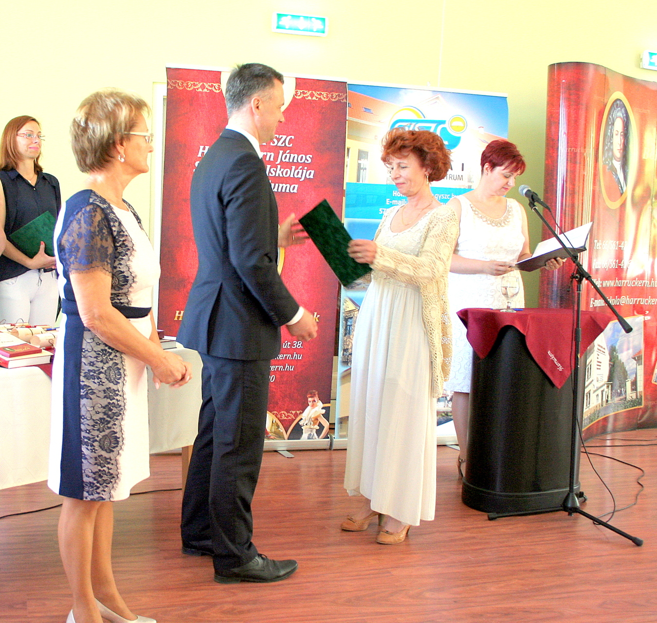 A Harruckern Emlékplakett kimagasló szakmai munka, életút elismerése, a díjazottak neve az iskola Emlékfalán is megjelenik. A plakettet Görgényi Ernő polgármester és Czeglédiné Szappanos Anita igazgató adta át.