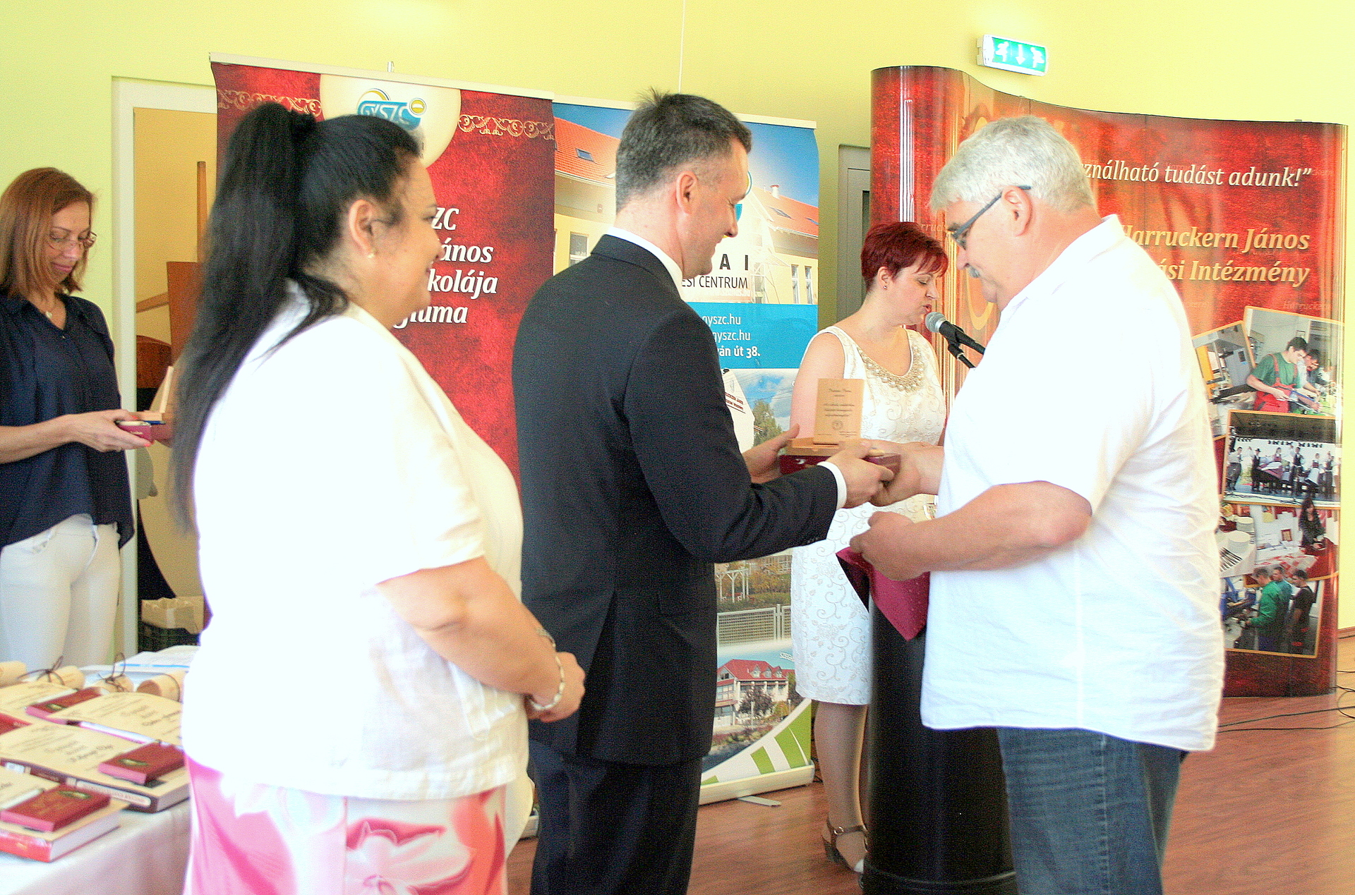 Czeglédiné Szappanos Anita, a Harruckern János szakképző iskola és kollégium igazgatója az esemény házigazdájaként aláhúzta, méltó díjazása ez eddigi munkájuknak, hisz a kitüntető cím többek között azt is jelenti, hogy az elkövetkezendő három évben a megyében kizárólag a Harruckern iskola szervezhet továbbképzéseket, nyílt napokat a hasonló jellegű tanintézmények alkalmazottjainak.
