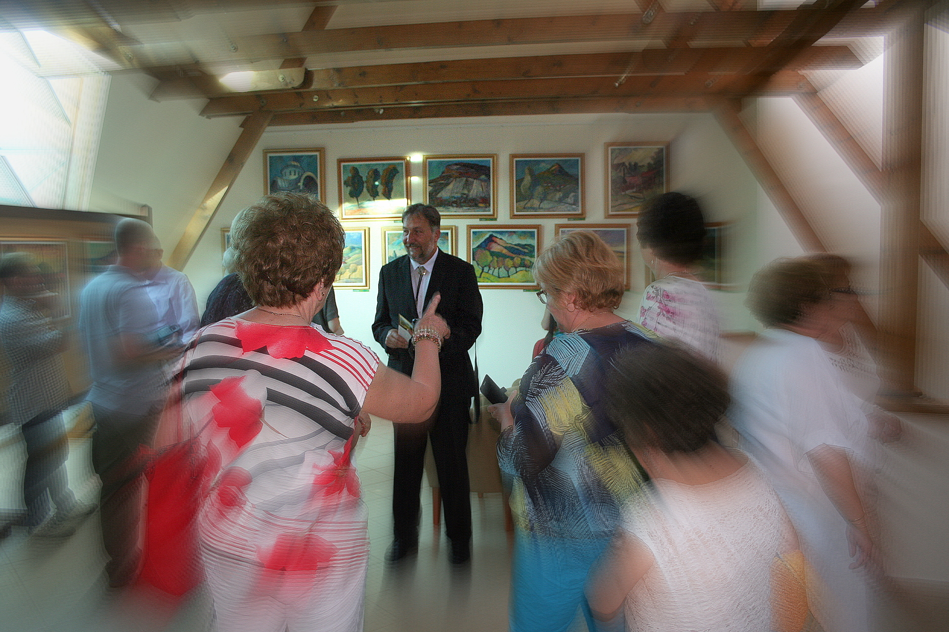 A vendégkiállító életpályájáról Szatmári Elemér református lelkész beszélt. Elmondta, hogy a művésznek ez már a negyedik idei kiállítása, hisz Budapest, Kolozsvár és Nyíregyháza után érkezett meg Gyulára, ám ezt megelőzően képei szinte a teljes Magyarországot és Erdélyt bebarangolták, sőt, Brüsszelbe is eljutottak.