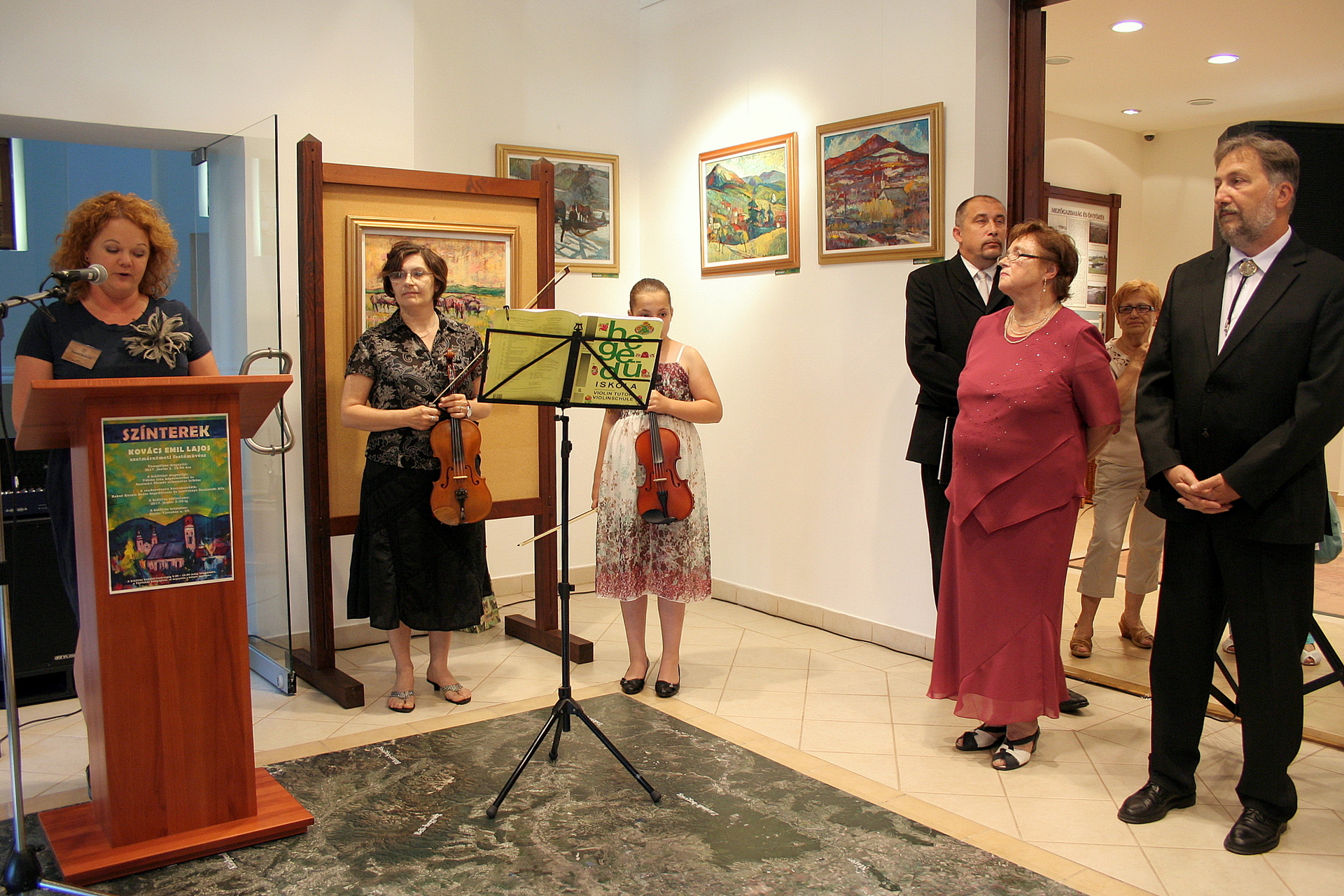 A megnyitón Kaczkó Zita házigazdaként köszöntötte az egybegyűlteket, különösképpen a Partiumból érkezett művészt, akit röviden bemutatott, majd a ház hagyományaihoz híven a muzsikáé lett a főszerep. Bakné Kocsis Beáta hegedűtanár és tanítványa, Susánszki Alíz Teleman Menüettjével és Mozart hegedűre írt Allegrettójával teremtette meg a tárlatnyitó derűs hangulatát.