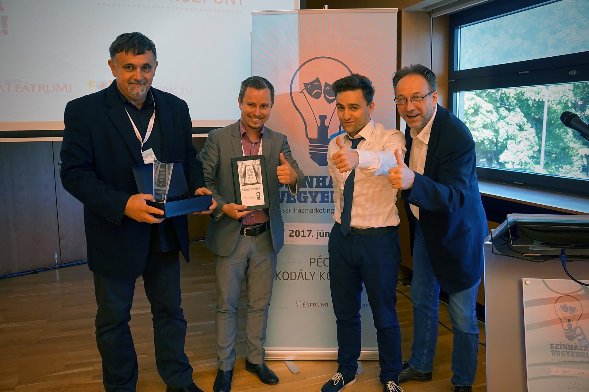 – Összesen 121 pályázat érkezett, 43 színházból, és 6 kategóriából kettőt megnyertünk. Rangos elismerés ez, hiszen szakmai díjról van szó, a pályázó színházak marketingesei maguk közül választották ki a legjobbakat. A Művész Kávéházunk gyönyörű, a nézőtéri székeink is kiválóak, de ezúttal elsősorban ezek prezentálásáért kaptuk a díjakat – mondta Ragány Misa, a Jókai Színház marketing- és sajtóreferense.