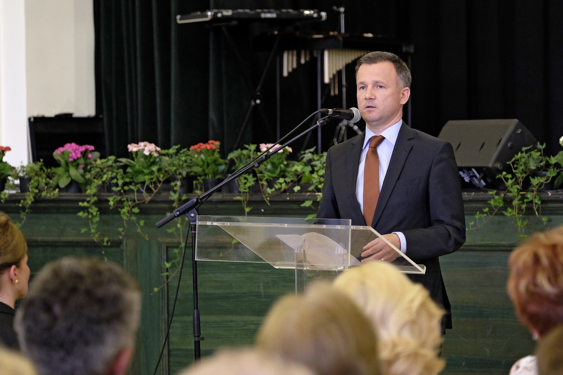 – A nyitott szemekben ott a tudás átadásának szenvedélye és a végtelen szeretet. S csak a nyitott szemek látják meg a világ teljességét a gyermekben, a tanítványban. Az iskola mögül, az udvar alján mindig kel az újhold, mégha vézna, furcsa és halvány, mint az arcél, de újra s újra kerekedik, a teljességig. Mert az ember teljes lényét átható hivatás a tanítás – méltatta kollégáit a tankerület vezetője, majd köszönetet mondott minden jelen lévő pedagógusnak áldozatos munkájáért.